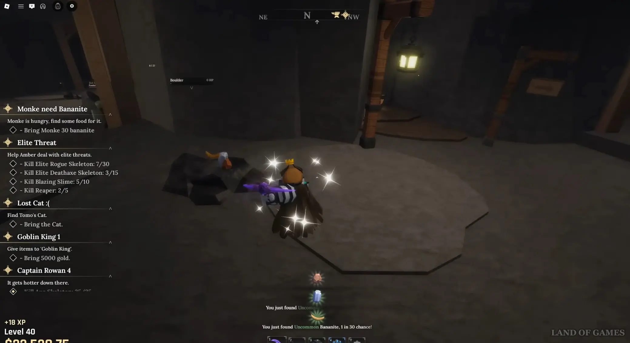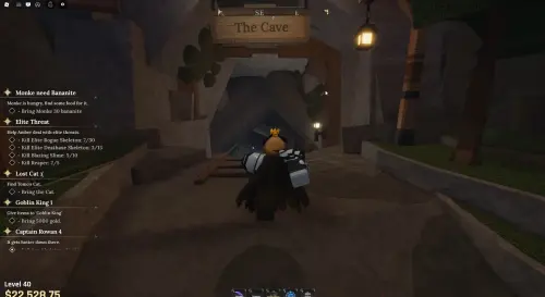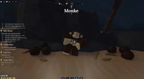 Далее начните фармить бананитовую руду. Собрав 30 штук, вновь используйте портал и возвратитесь к обезьянке в Забытом королевстве, а затем передайте ей бананиты. Если вы отдадите именно 30 единиц, то в качестве награды получите 10 000 монет и аж 5 500 очков опыта, что довольно много.