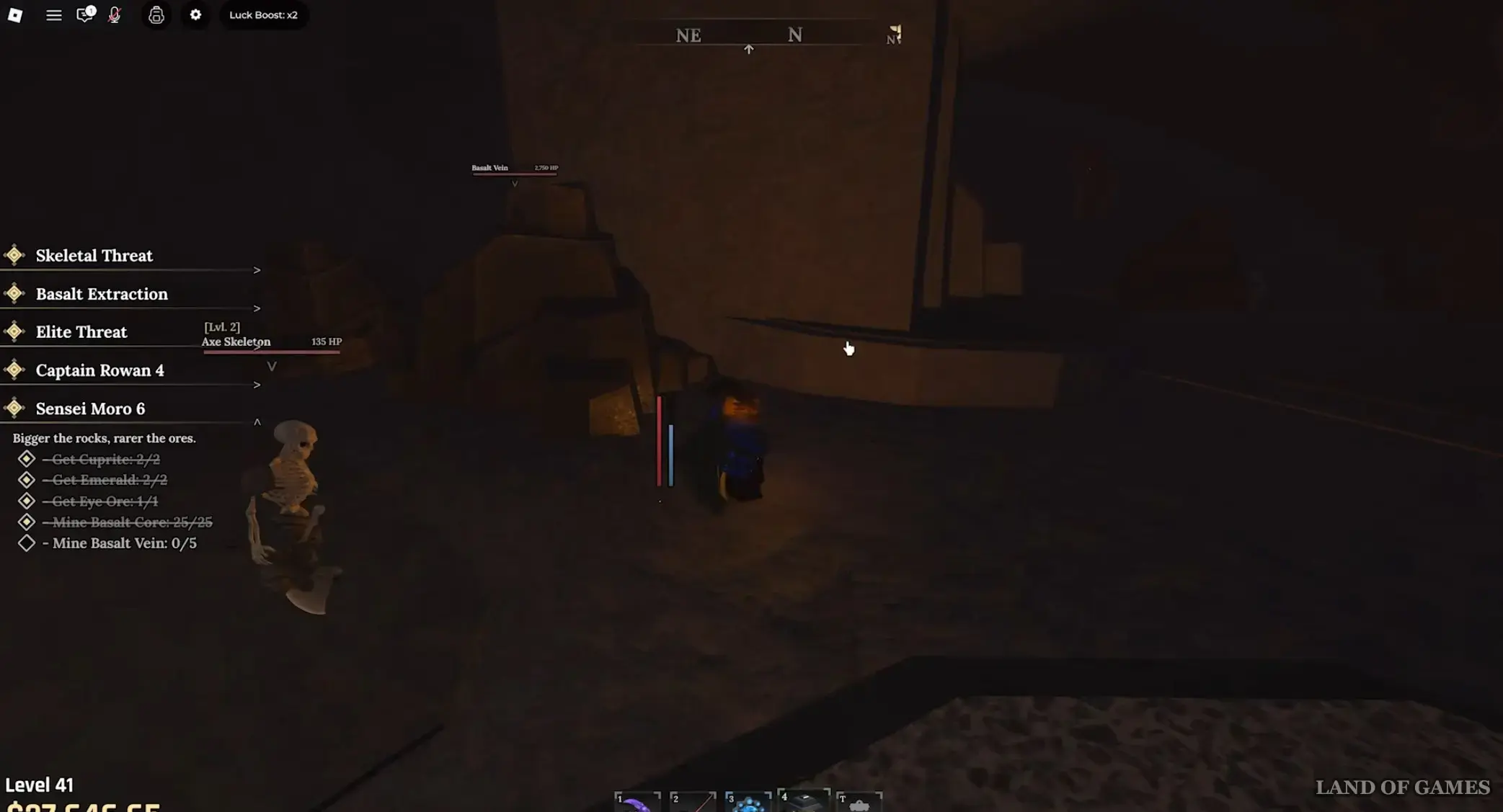 Самая сложная миссия у Моро, так как для ее выполнения вам предстоит добыть наиболее редкие руды в игре: 3 файрита (Fireite), 2 магмаита (2 Magmaite), 1 демонит (Demonite) и 1 даркрайт (Darkryte). Плюс, придется разломать 125 Базальтовых ядер, 75 Базальтовых жил и 50 Вулканических камней.