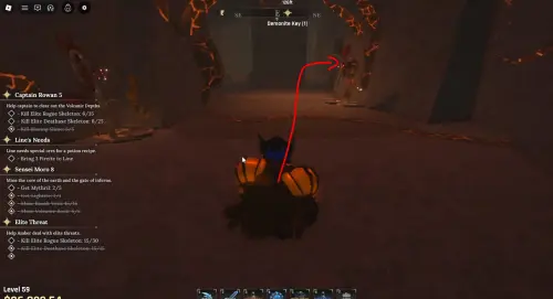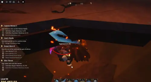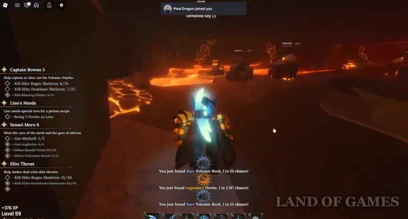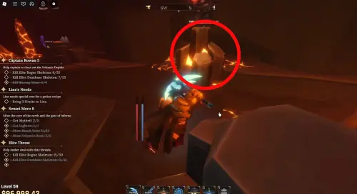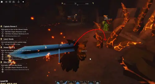 Вы почти сразу же увидите справа магмовые отростки, выступающие из-под земли, а рядом с ними будет яма, куда вам необходимо будет спрыгнуть (если проход заблокирован двумя Базальтовыми жилами, то сначала разрушьте их; понадобится, как минимум, Мифриловая кирка для этого). Спуститесь еще ниже, и вы окажетесь в новой области, где повсюду течет лава. Именно тут вы обнаружите вулканические камни, которые вам нужно будет разломать. Однако будьте осторожны, так как здесь обитают одни из самых опасных противников в игре – Жнецы (Reapers).