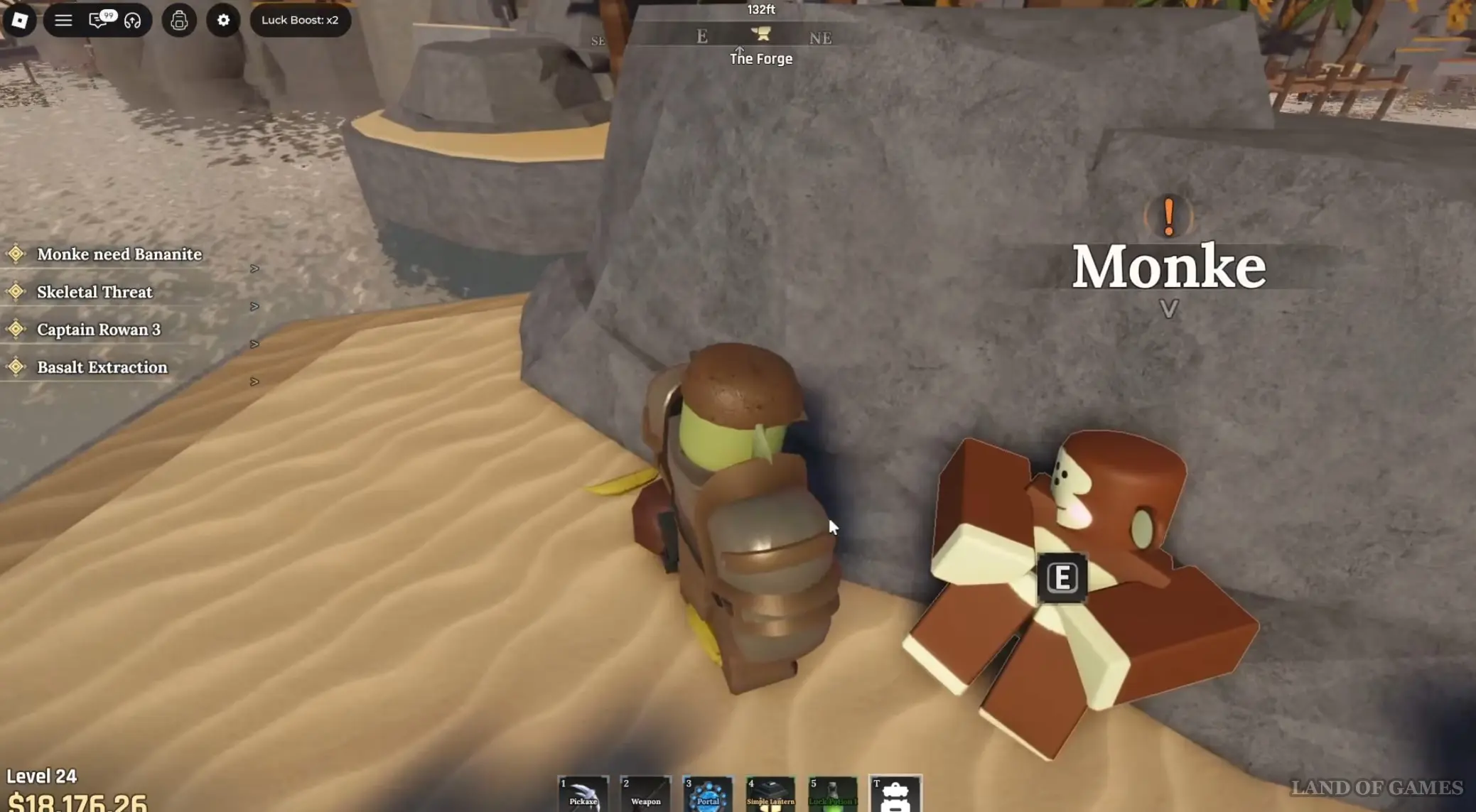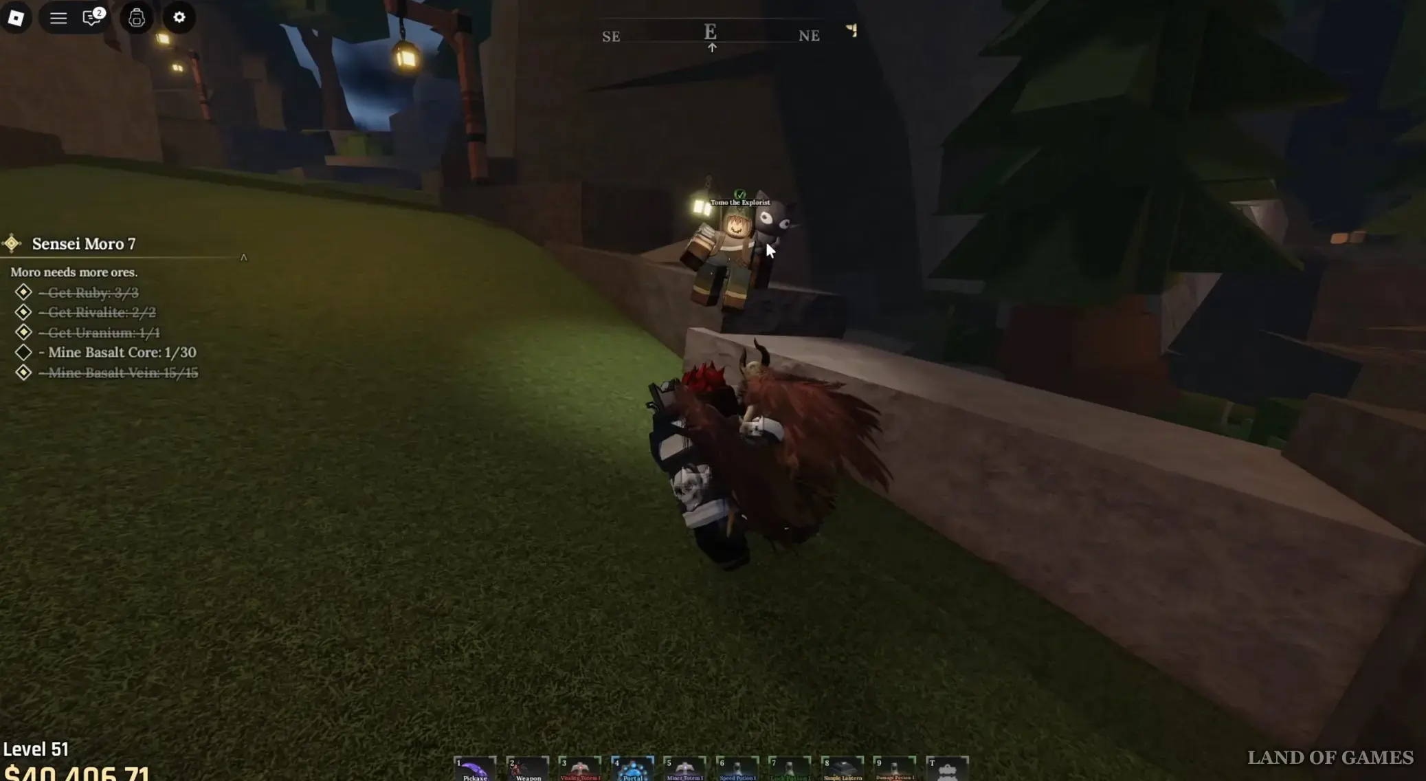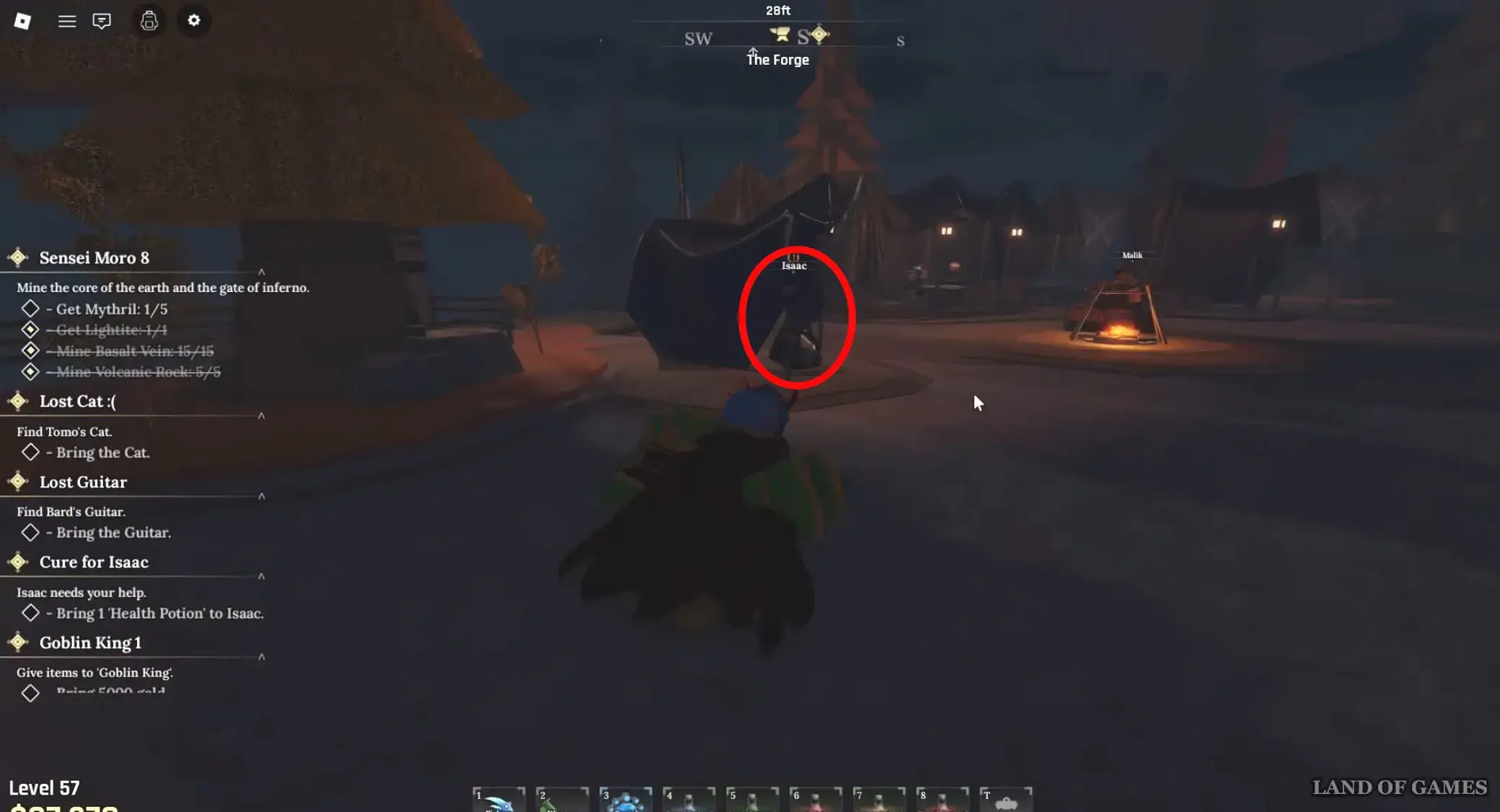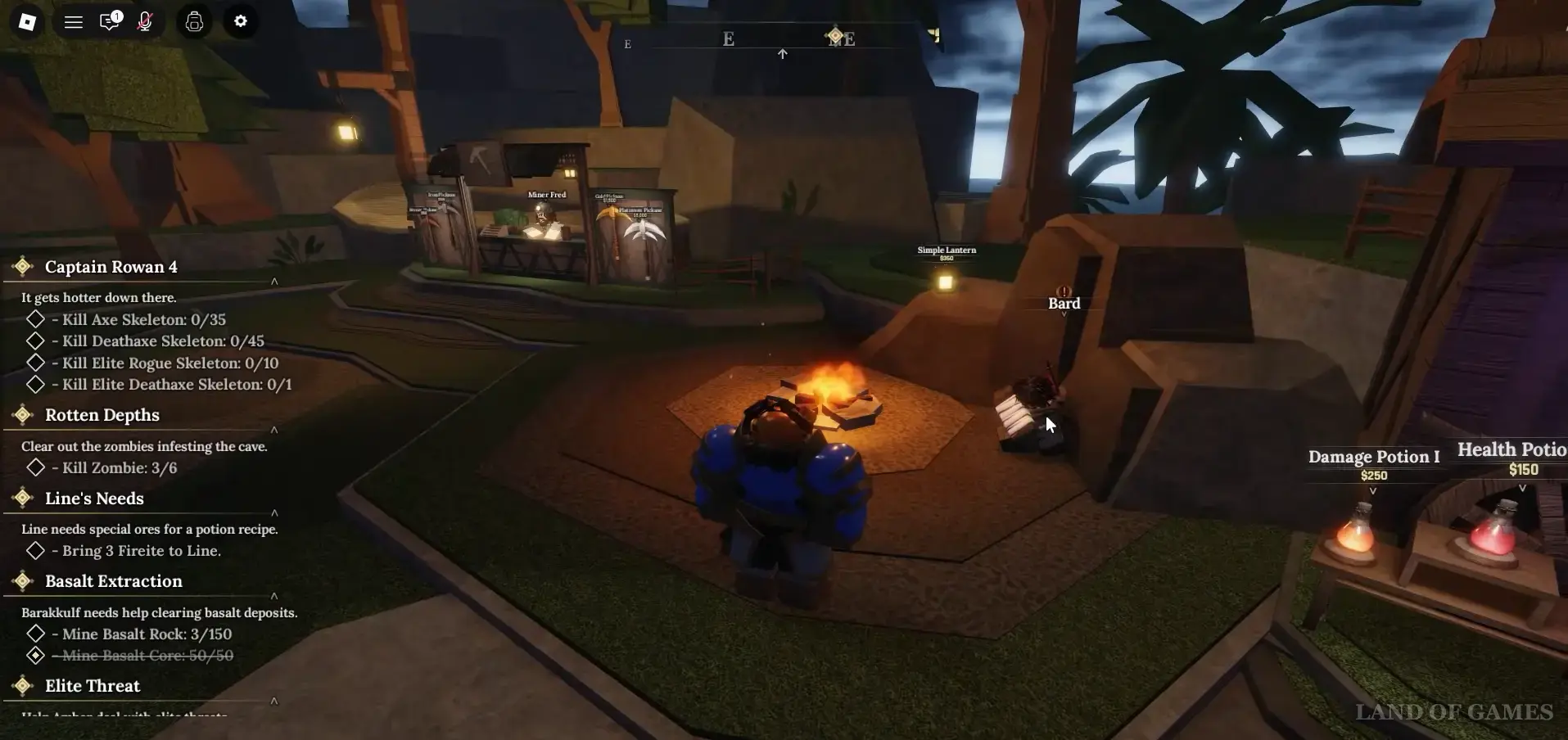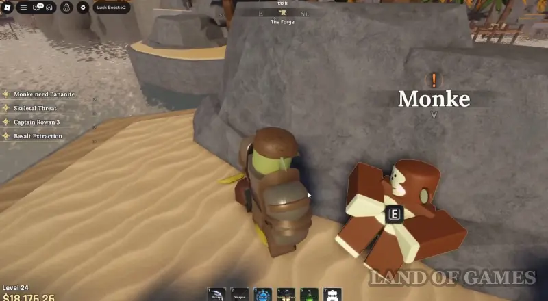 Речь идет о кузнеце, который кует заготовки на наковальне позади Сенсея Моро в Забытом Королевстве. Поговорите с ним и спросите, не нужна ли ему помощь, выбрав следующий ответ: «Need any help?». Согласитесь помочь ему, после чего вам придется заняться майнингом базальтовых камней и ядер, находящихся в местной Разрушенной пещере (Ruined Cave). Отметим, что эти квесты повторяемые.