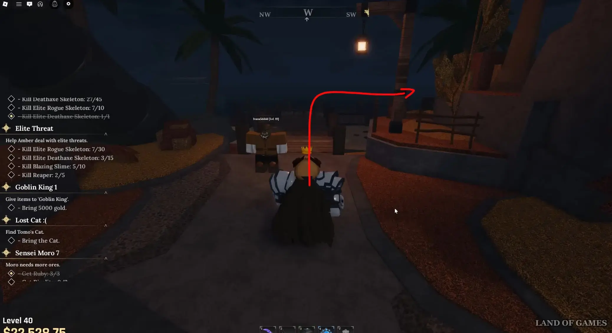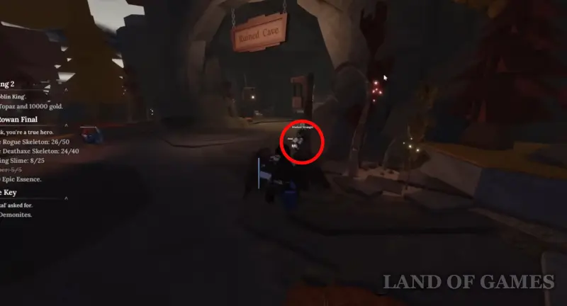 Переместитесь в Забытое Королевство, а потом бегите к кузнице в центре города, но, не доходя до нее, сверните налево. Продолжайте бежать вперед, пока не заметите справа двух орков, которые охраняют проход в некий лагерь. Пройдите через них внутрь, и вы обнаружите на троне необходимого вам персонажа – поболтайте с ним для старта миссии. В основном вам предстоит приносить ему деньги и редкую руду.