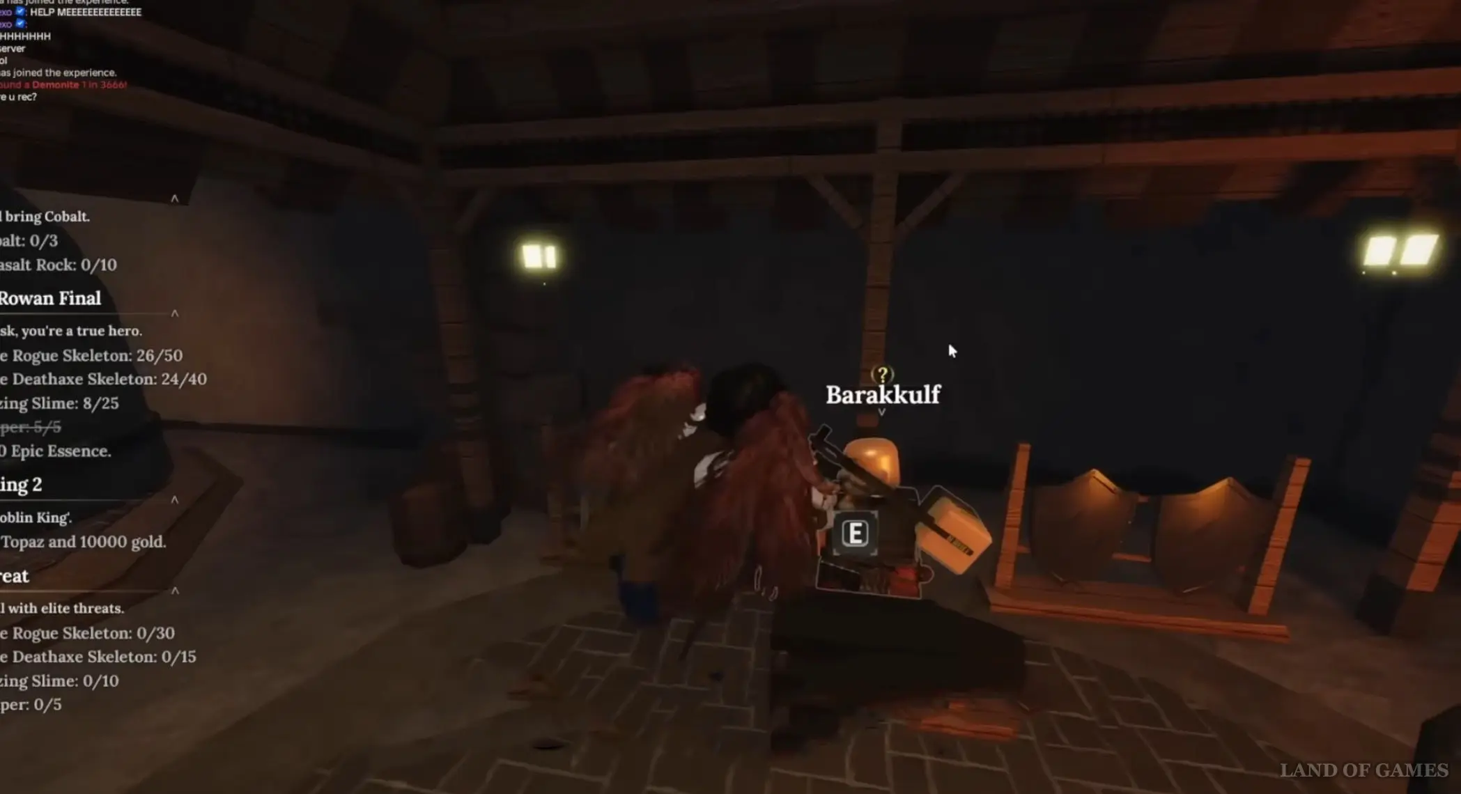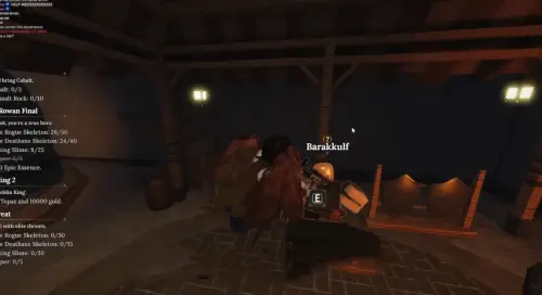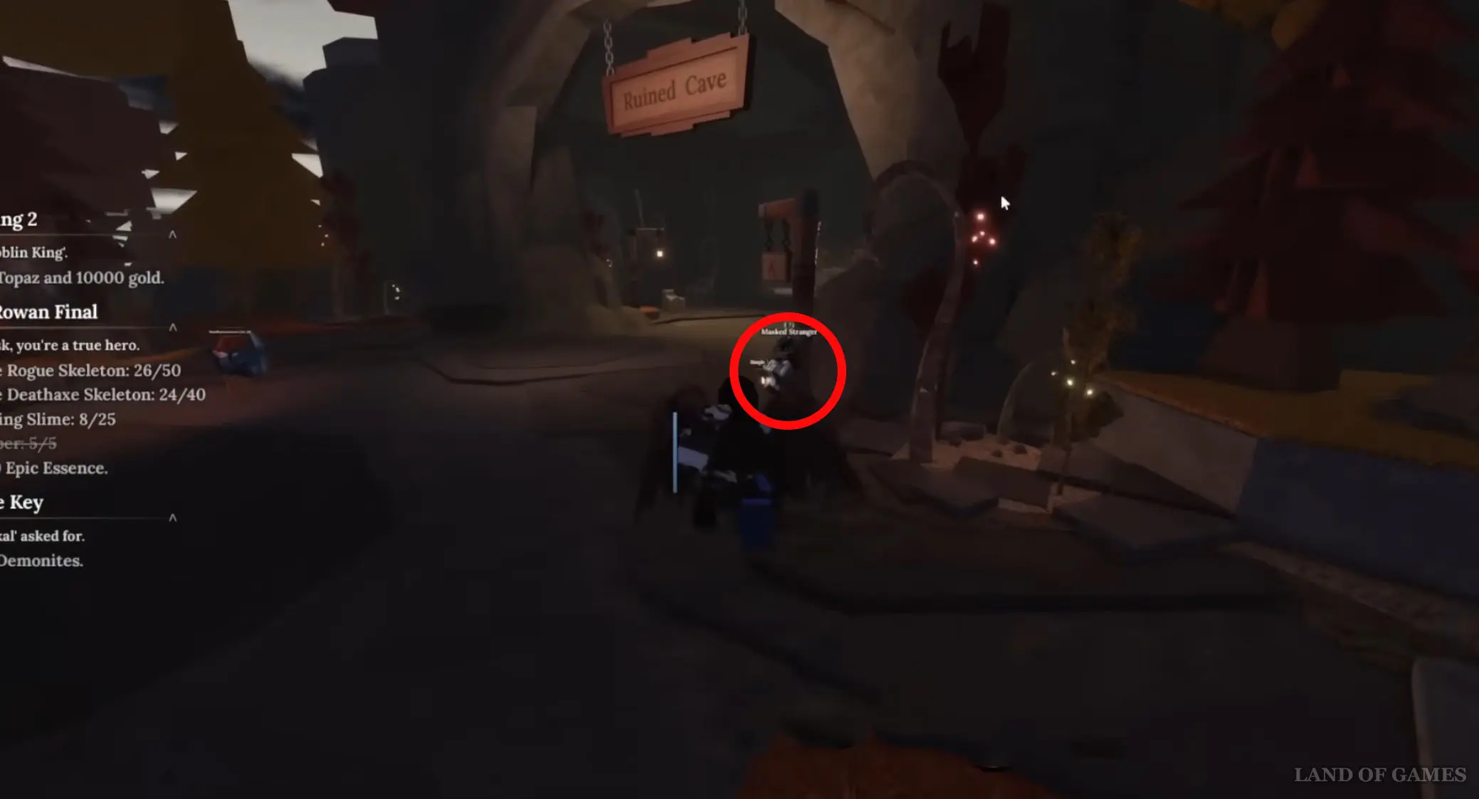 Его можно найти прямо рядом с входом в Разрушенную пещеру в Забытом Королевстве. Он стоит, прислонившись к столбу. Поговорите с ним и согласитесь выполнить его просьбу. Сначала он попросит вас убить 50 скелетов-разбойников, а потом 30 скелетов с топорами, 15 скелетов с топорами смерти и 5 бомберов. Расположение этих врагов мы показали в статье про Капитана Роуана. Советуем вам выполнять эти задания одновременно.