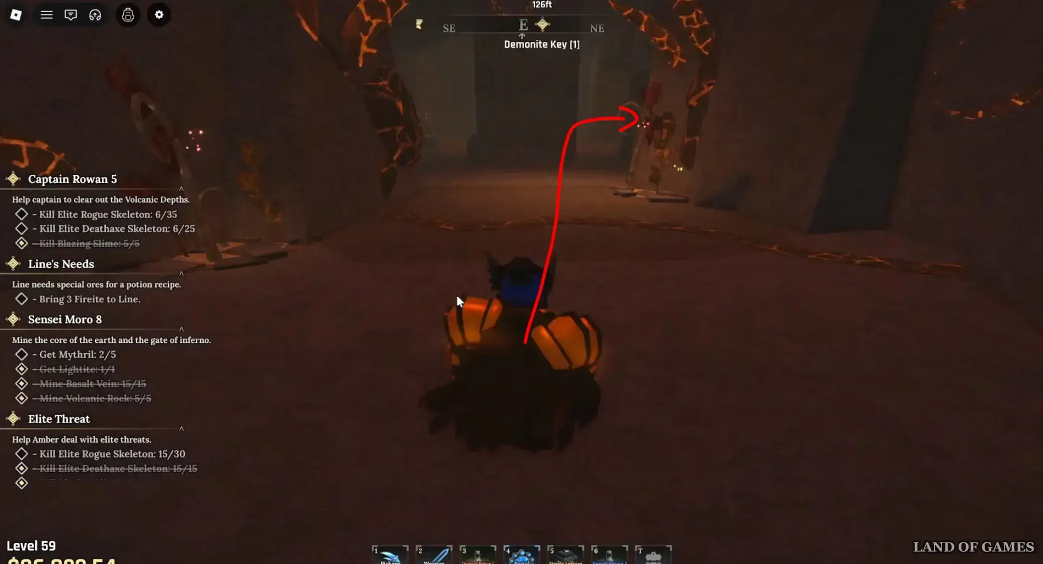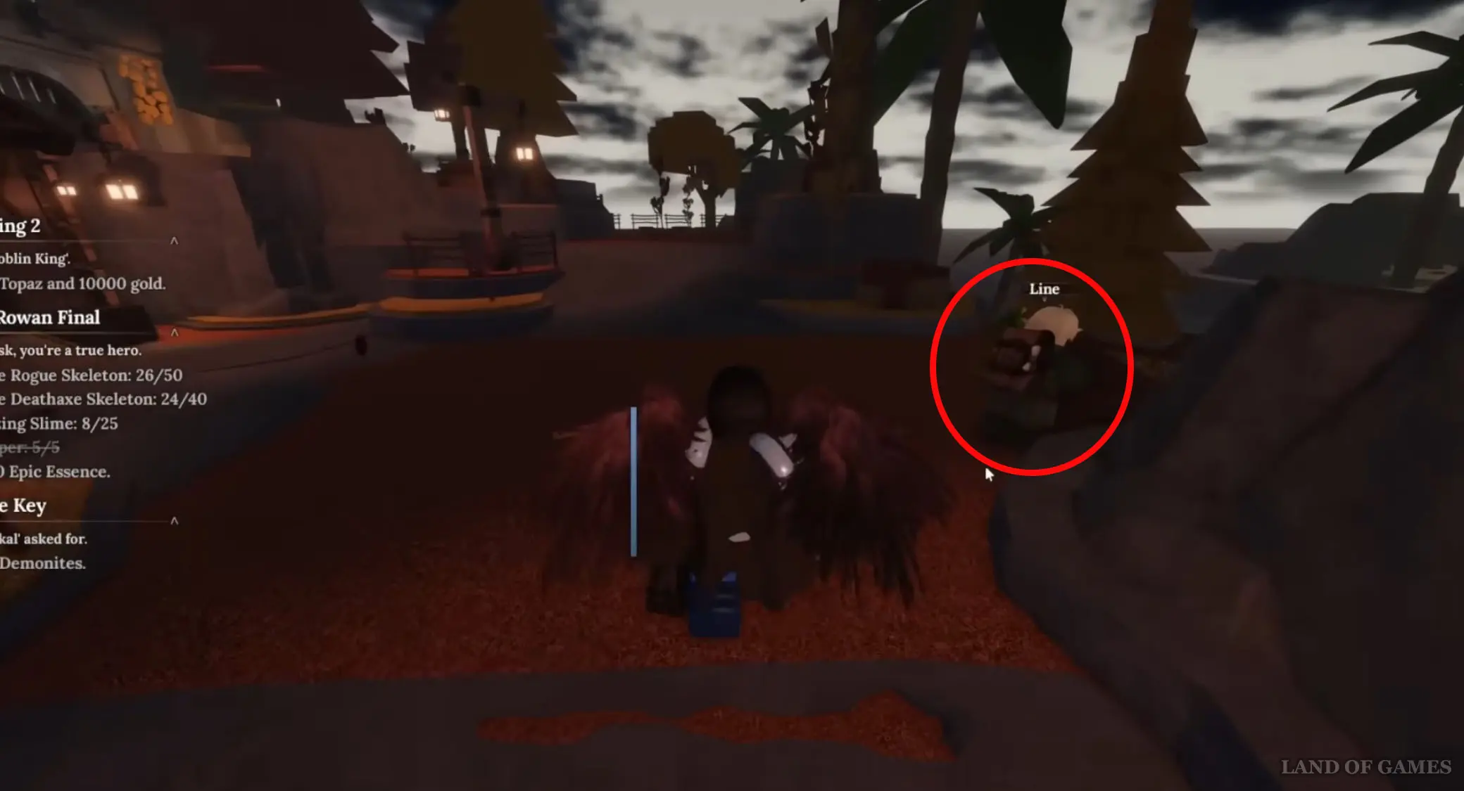 Переместитесь в Забытое Королевство, а затем пройдите немного вперед, поверните направо и двигайтесь дальше, минуя лавку Жадного Сея (Greedy Cey). Буквально через пару секунд вы обнаружите справа от себя Лайна – поболтайте с ним и согласитесь принести ему 3 файрита (Fireite). Речь идет о легендарной руне, которая выпадает только из Вулканических камней (Volcanic Rock) с шансом 1 к 2187. О том, где их следует искать, мы рассказали в статье про Сенсея Моро.
