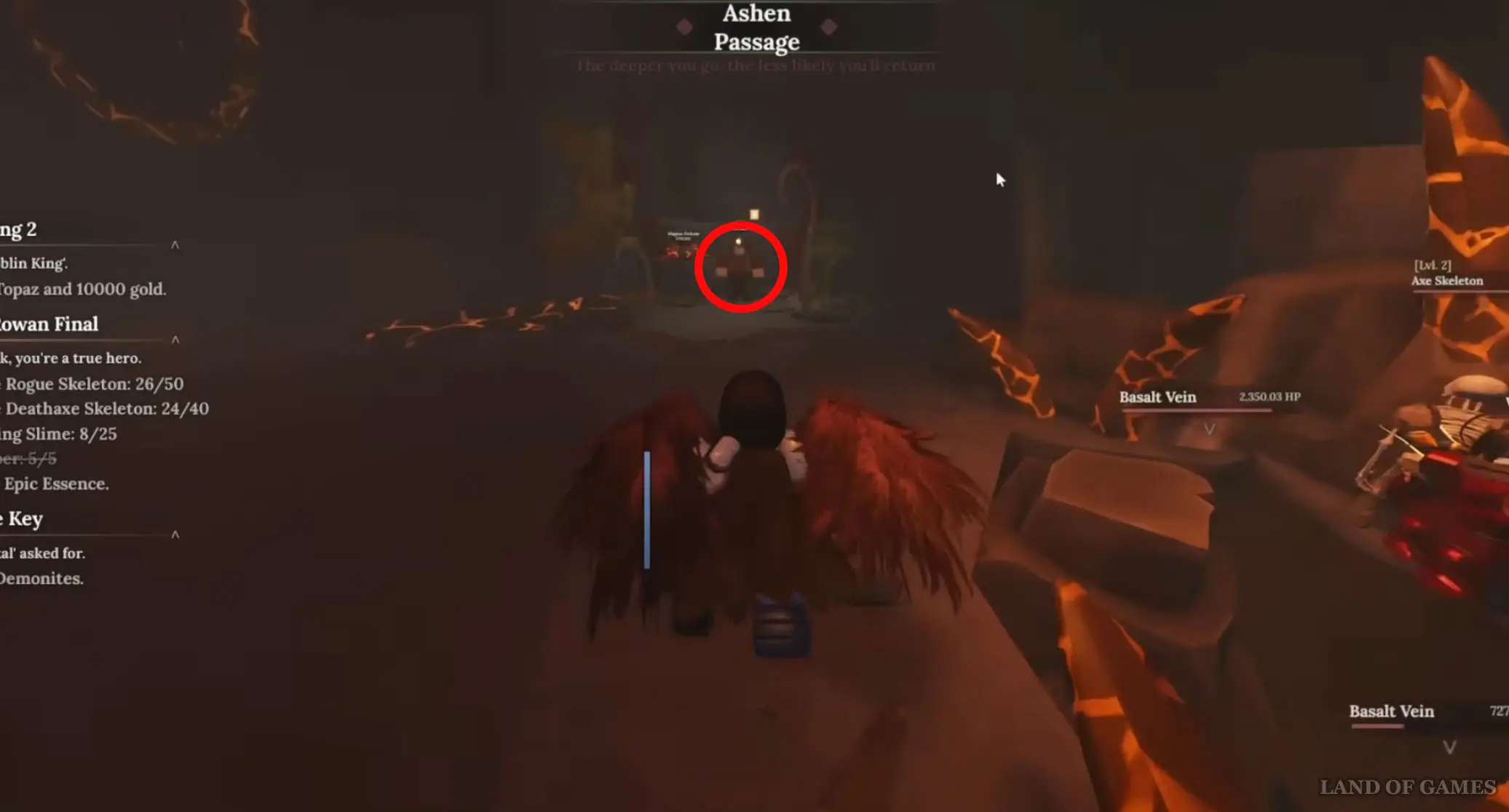 Спуститесь в Вулканические глубины (Volcanic Depths) в Разрушенной пещере, а затем сразу же поверните направо и начните идти вперед до самого конца пещеры, пока вы не наткнетесь на запертую стальную дверь. При этом слева от нее будет проход в другой тоннель – войдите в него и бегите дальше, и вскоре вы обнаружите демона по имени Скал.