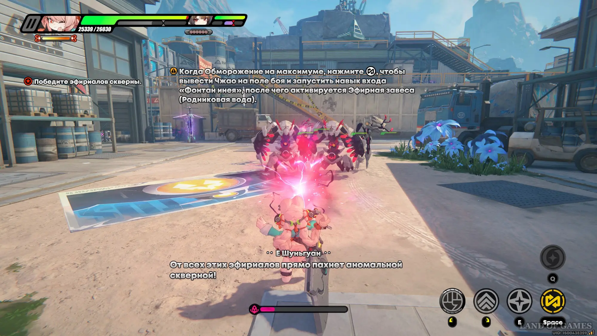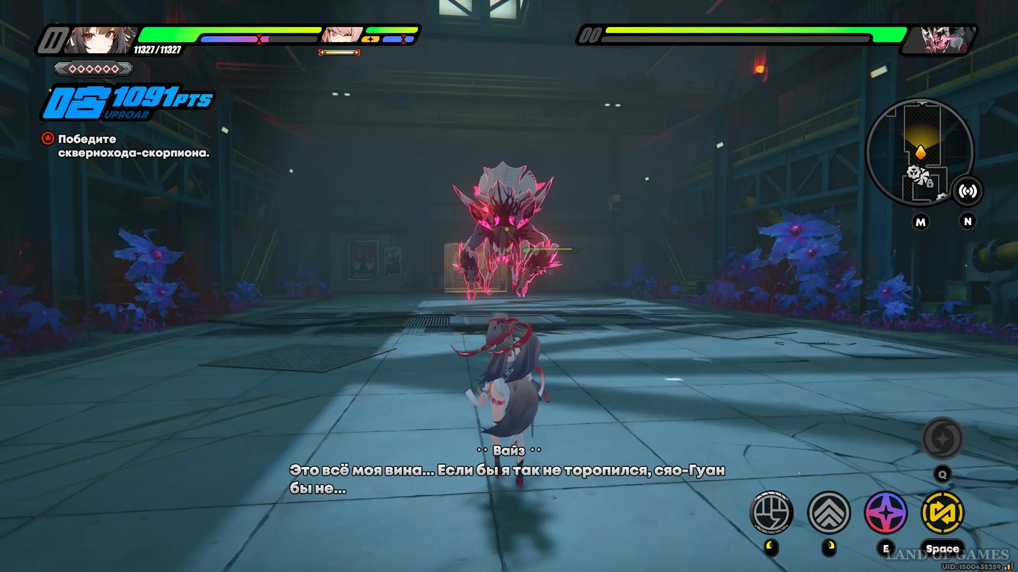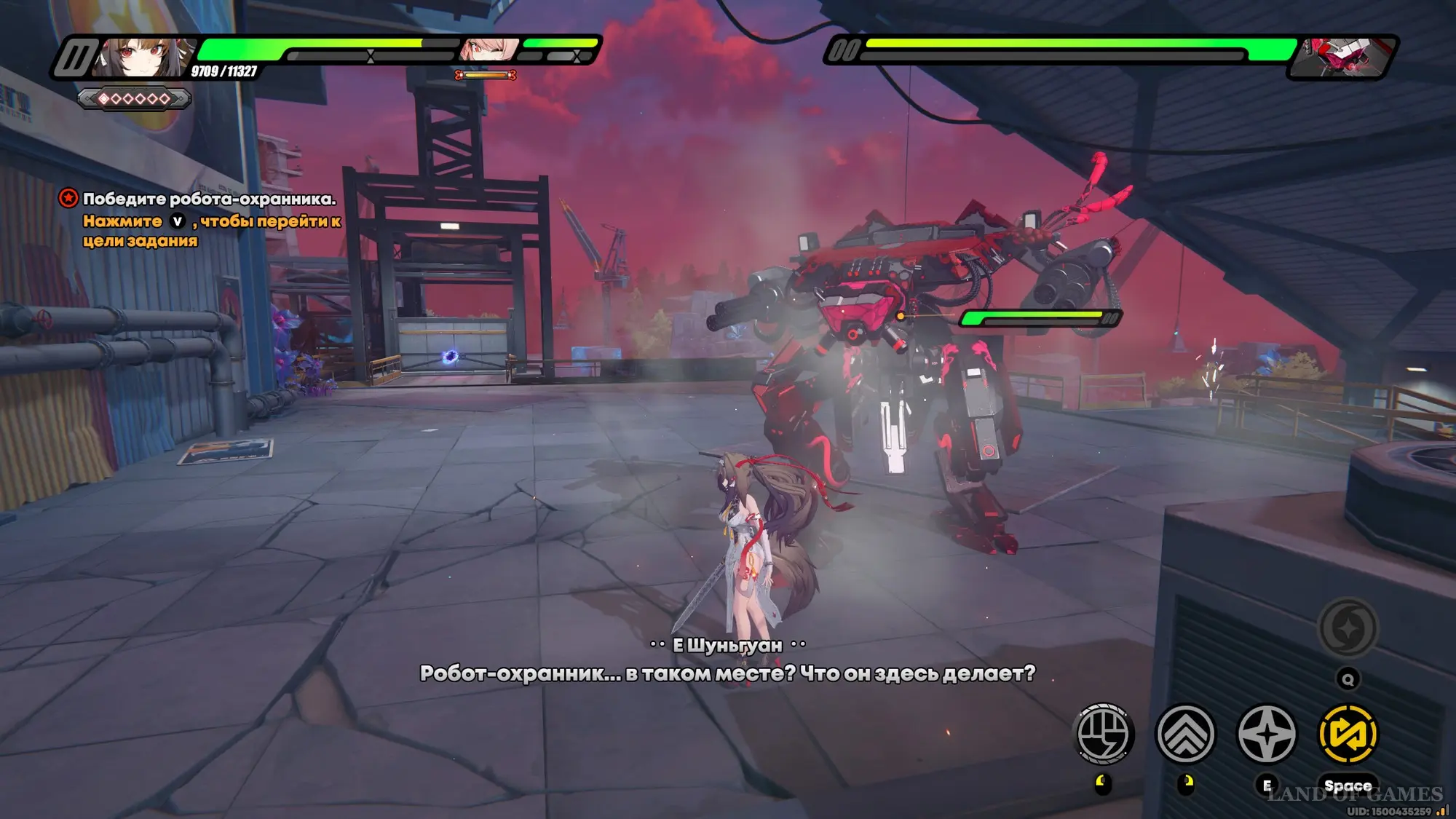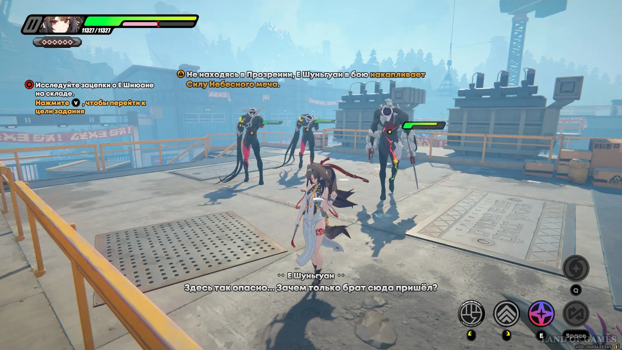 На следующий день поболтайте с Фуфу, Чжао и сяо-Гуан, а потом снова встретьтесь с крольчихой рядом с канатной дорогой. Далее начнется боевое испытание, в рамках которого вы попадете в новую локацию – Старая фабрика в порту (Каверна). Глянув очередной ролик, вы получите под управление Е Шуньгуан. Советуем вам ознакомиться с нашим гайдом, чтобы узнать, как ею играть. Если коротко – то вы должны собирать заряды Небесного меча с помощью базовых атак, а затем переходить в ее усиленный режим (зажать кнопку базовой атаки) и продолжать атаковать врагов мощными ударами, используя базовые или особые удары.