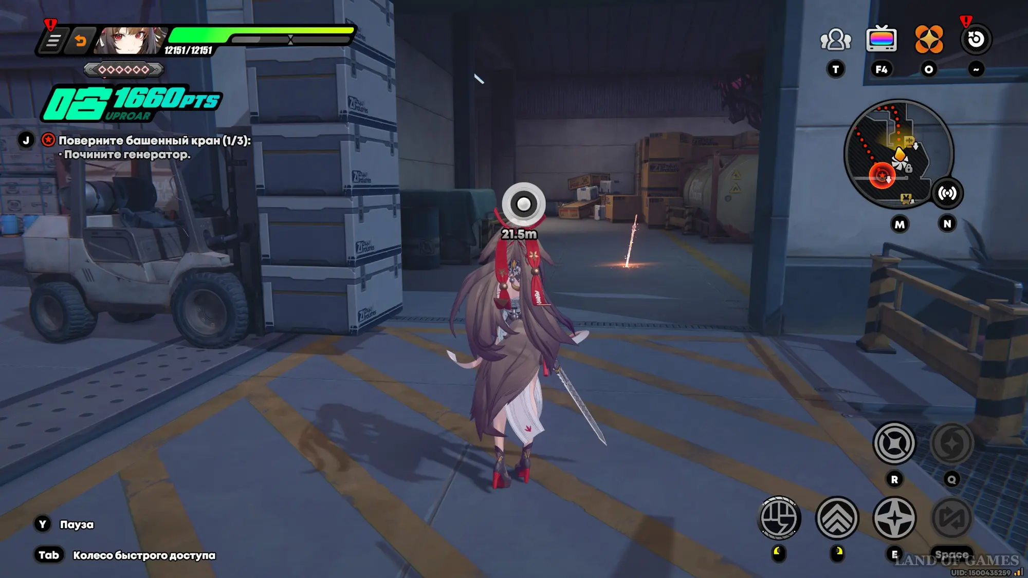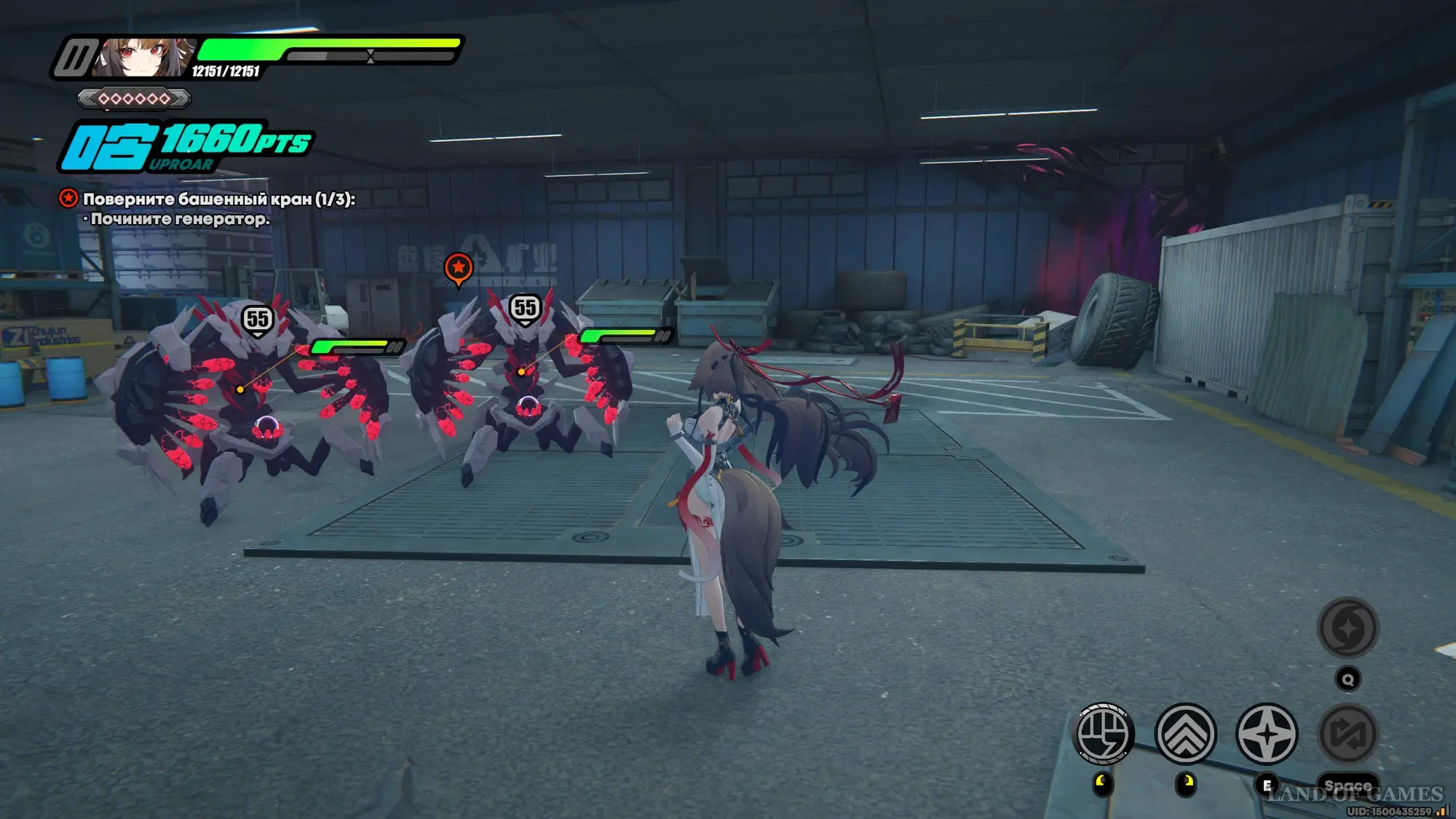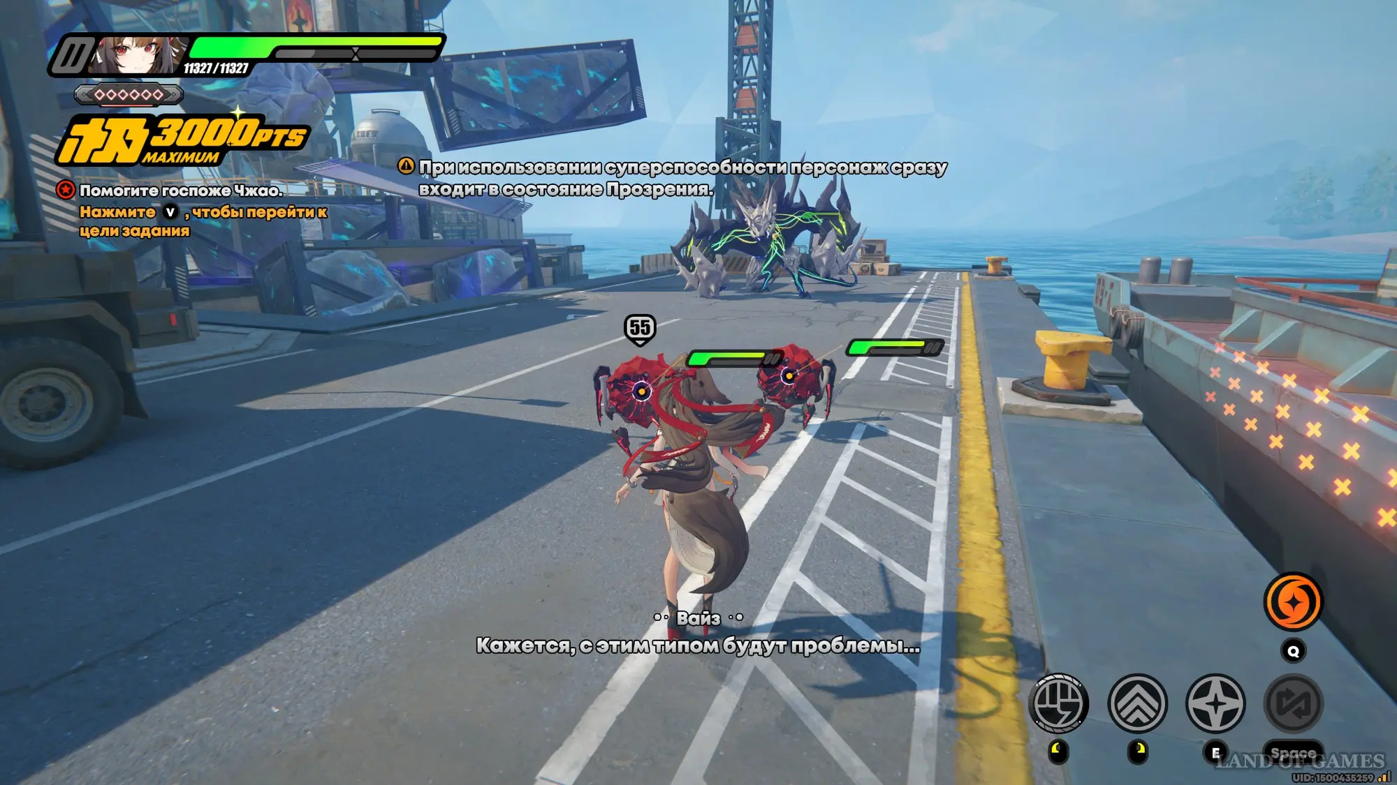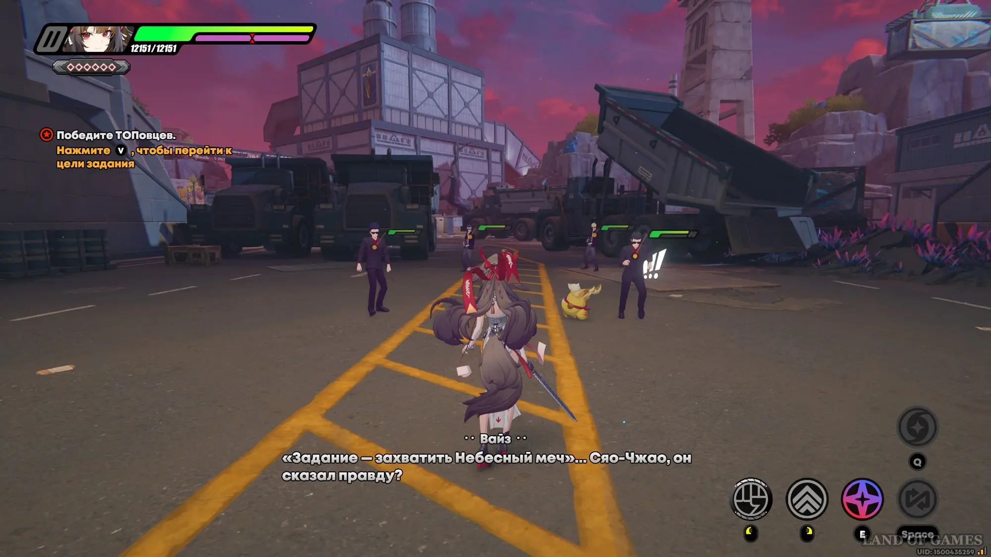 На следующий день поболтайте с Фуфу, Чжао и сяо-Гуан, а потом снова встретьтесь с крольчихой рядом с канатной дорогой. Далее начнется боевое испытание, в рамках которого вы попадете в новую локацию – Старая фабрика в порту (Каверна). Глянув очередной ролик, вы получите под управление Е Шуньгуан. Советуем вам ознакомиться с нашим гайдом, чтобы узнать, как ею играть. Если коротко – то вы должны собирать заряды Небесного меча с помощью базовых атак, а затем переходить в ее усиленный режим (зажать кнопку базовой атаки) и продолжать атаковать врагов мощными ударами, используя базовые или особые удары.
