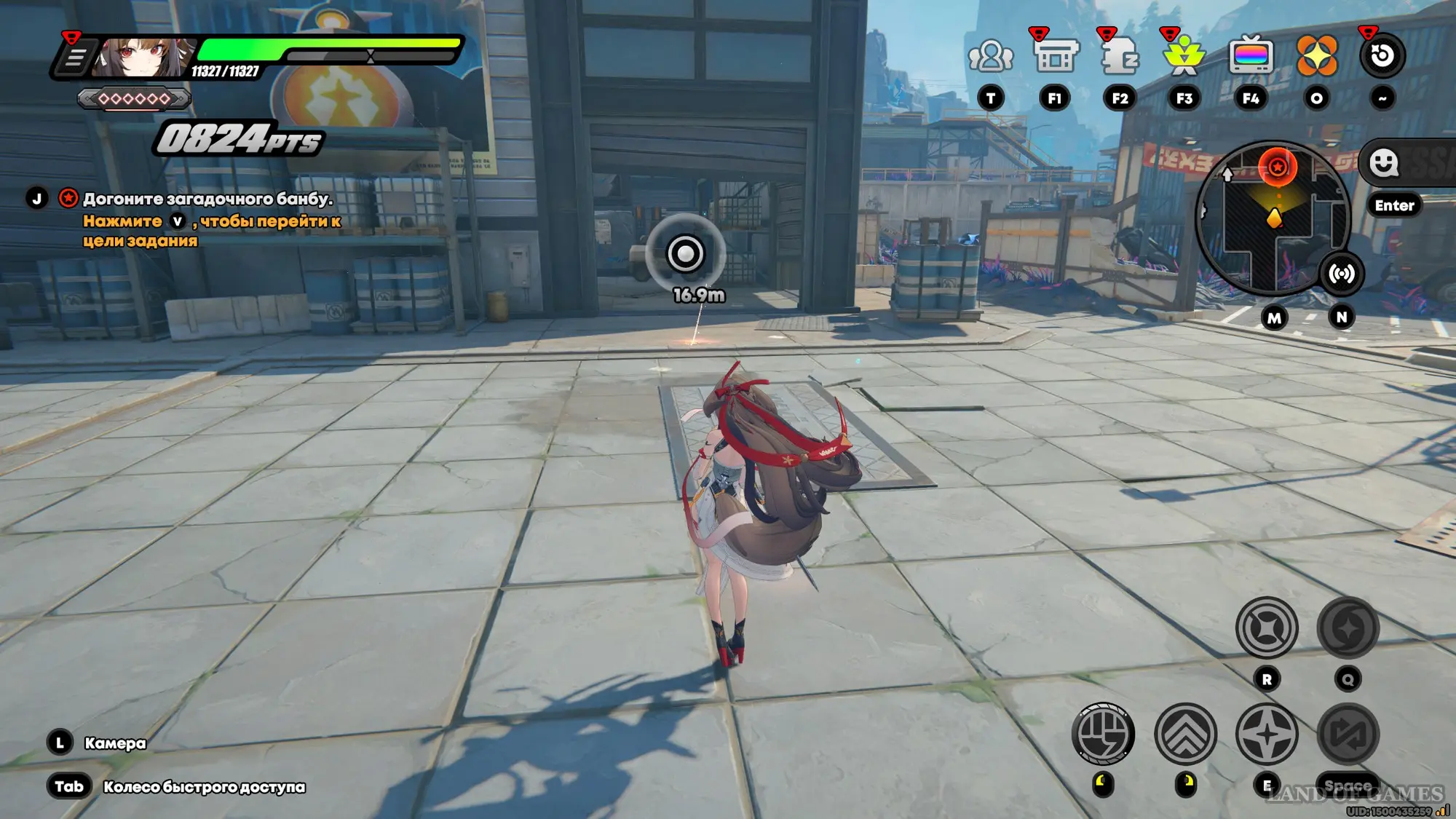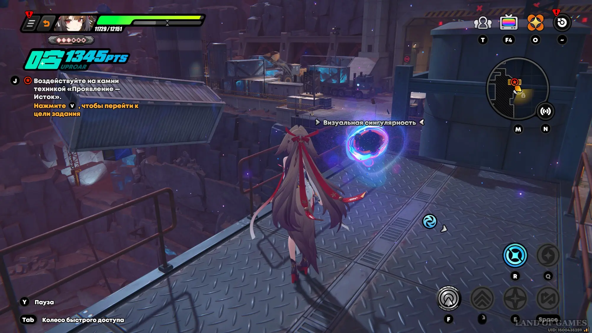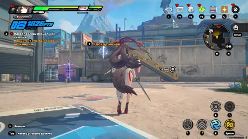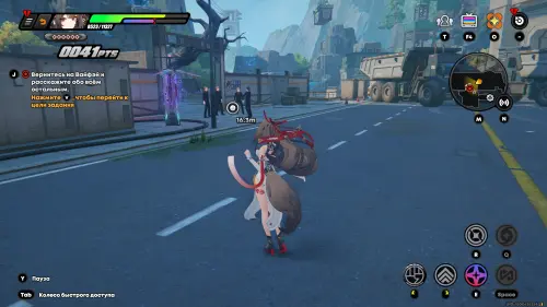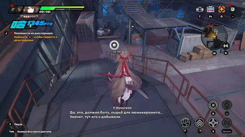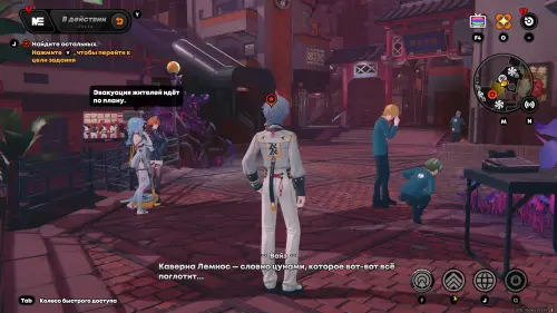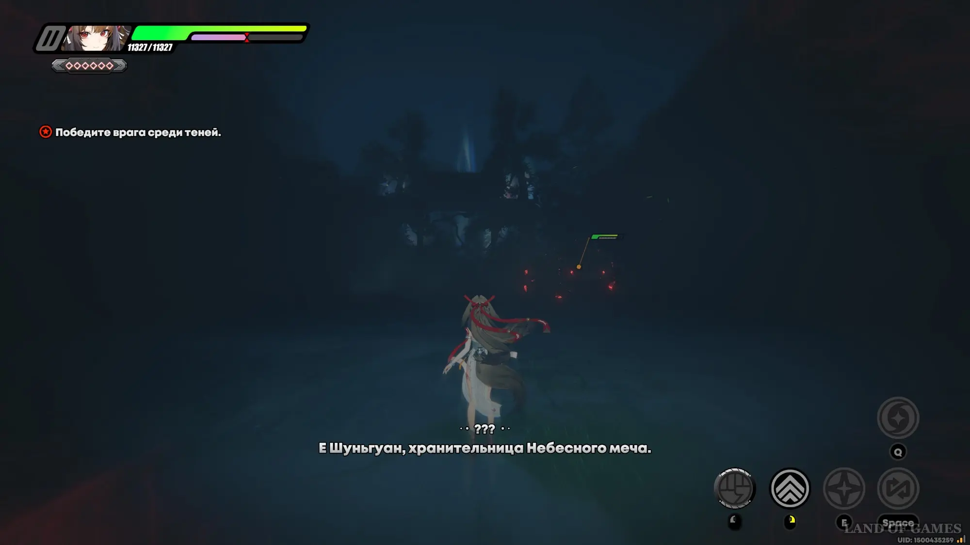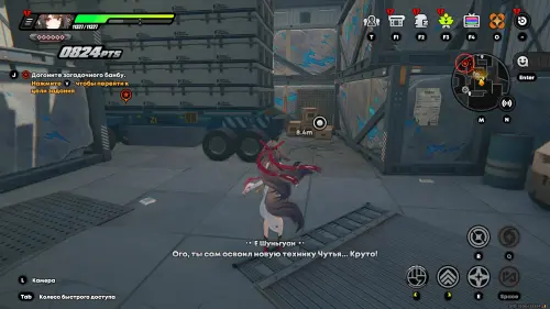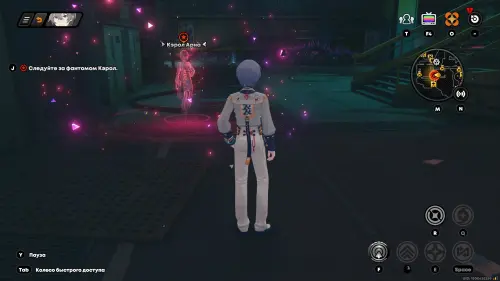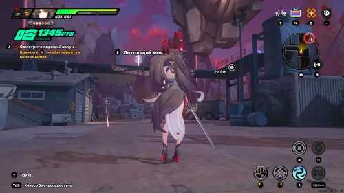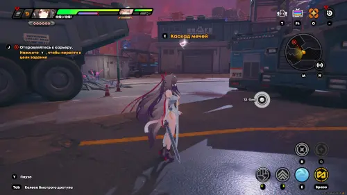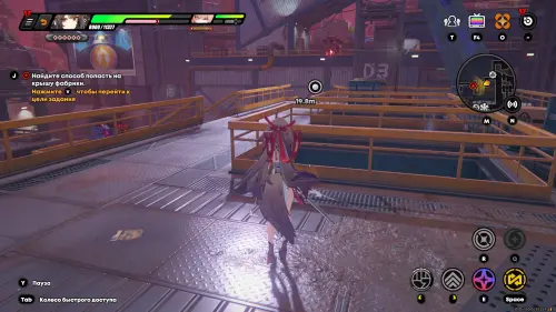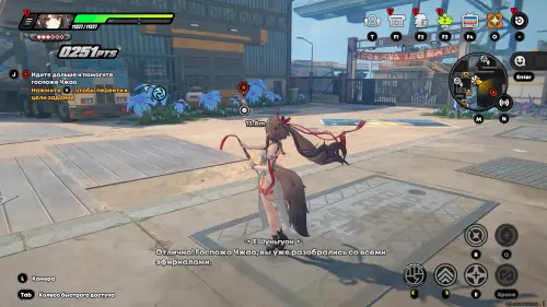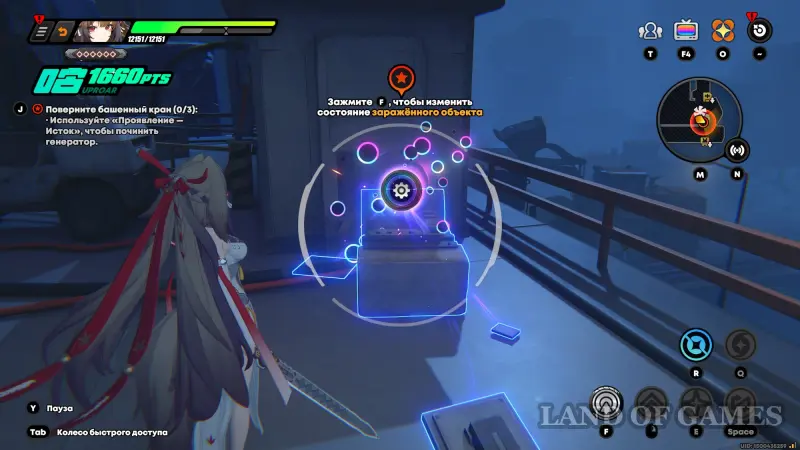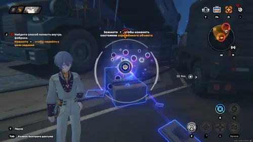 Начните двигаться к квестовому маркеру (кстати, если вы зажмете кнопку уклонения, то сможете летать на ножнах меча), сражаясь по пути с монстрами. Затем догоните загадочного банбу, войдя в здание. Гляньте ролик, а потом воспользуйтесь техникой «Проявление – Исток», нажав сначала клавишу «R», а потом, наведя на круг с шестеренкой и зажав клавишу «F», дабы изменить состояние зараженного объекта. Тем самым вы разблокируете себе путь вперед и сможете догнать банбу.