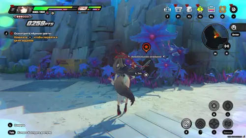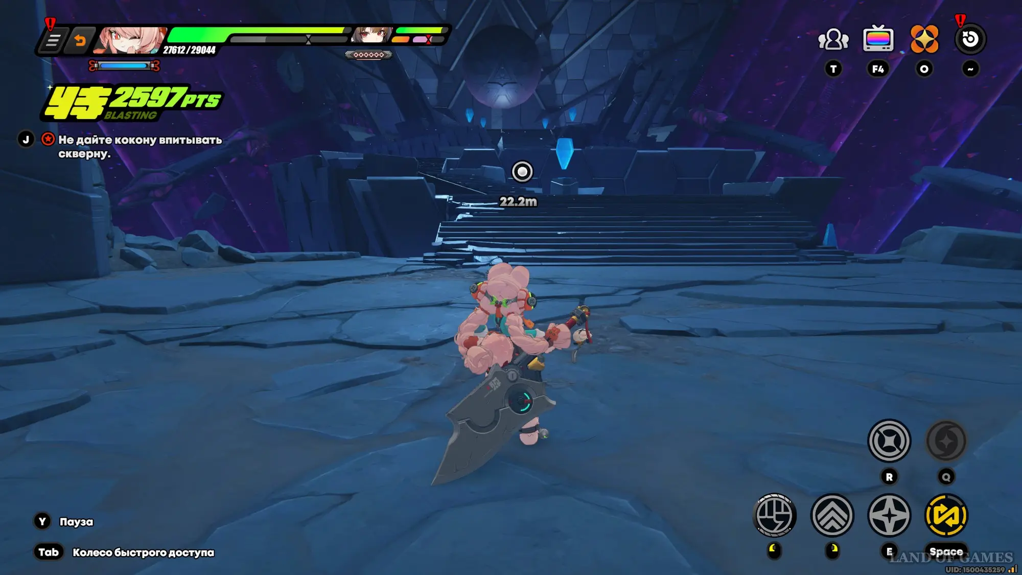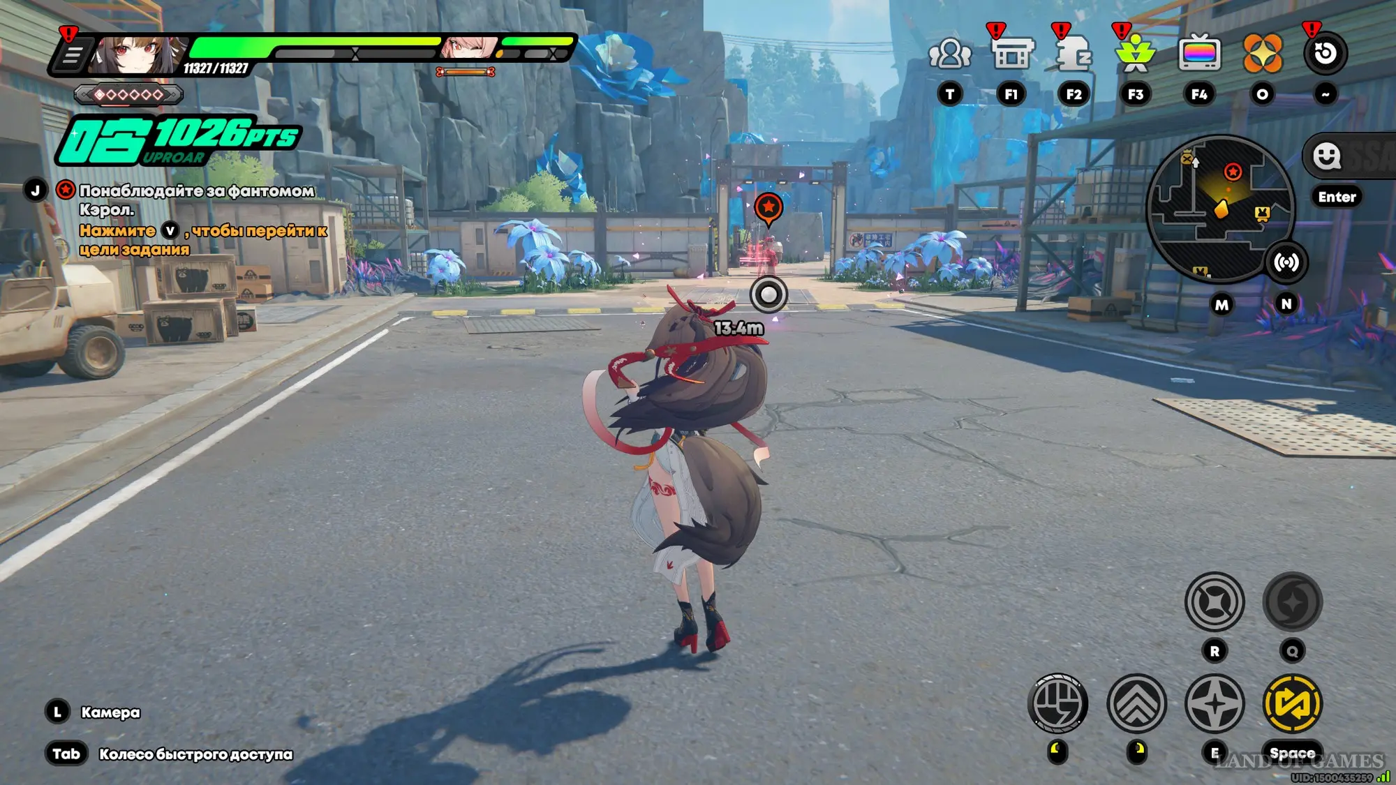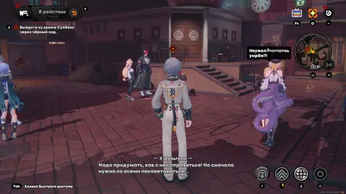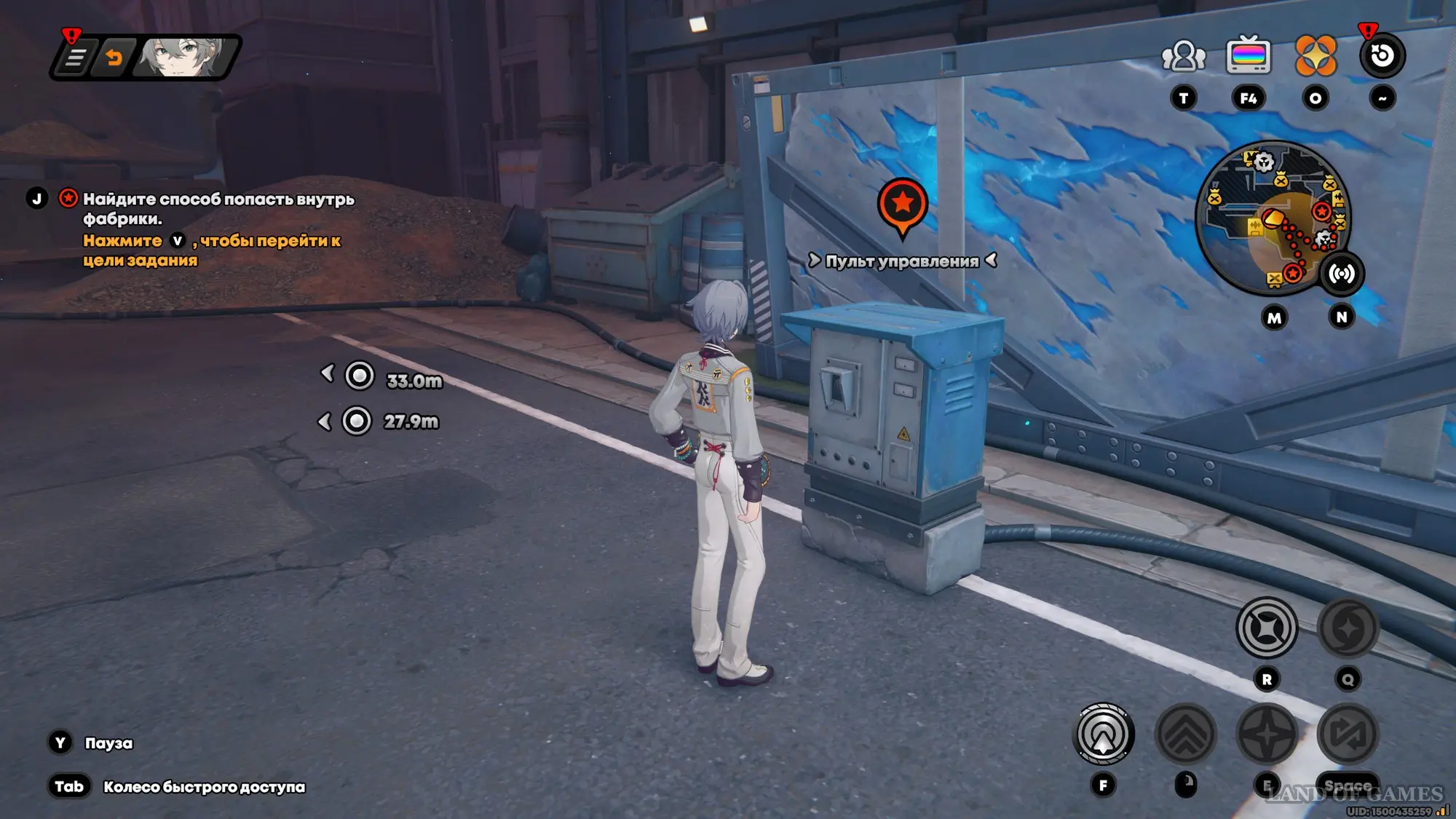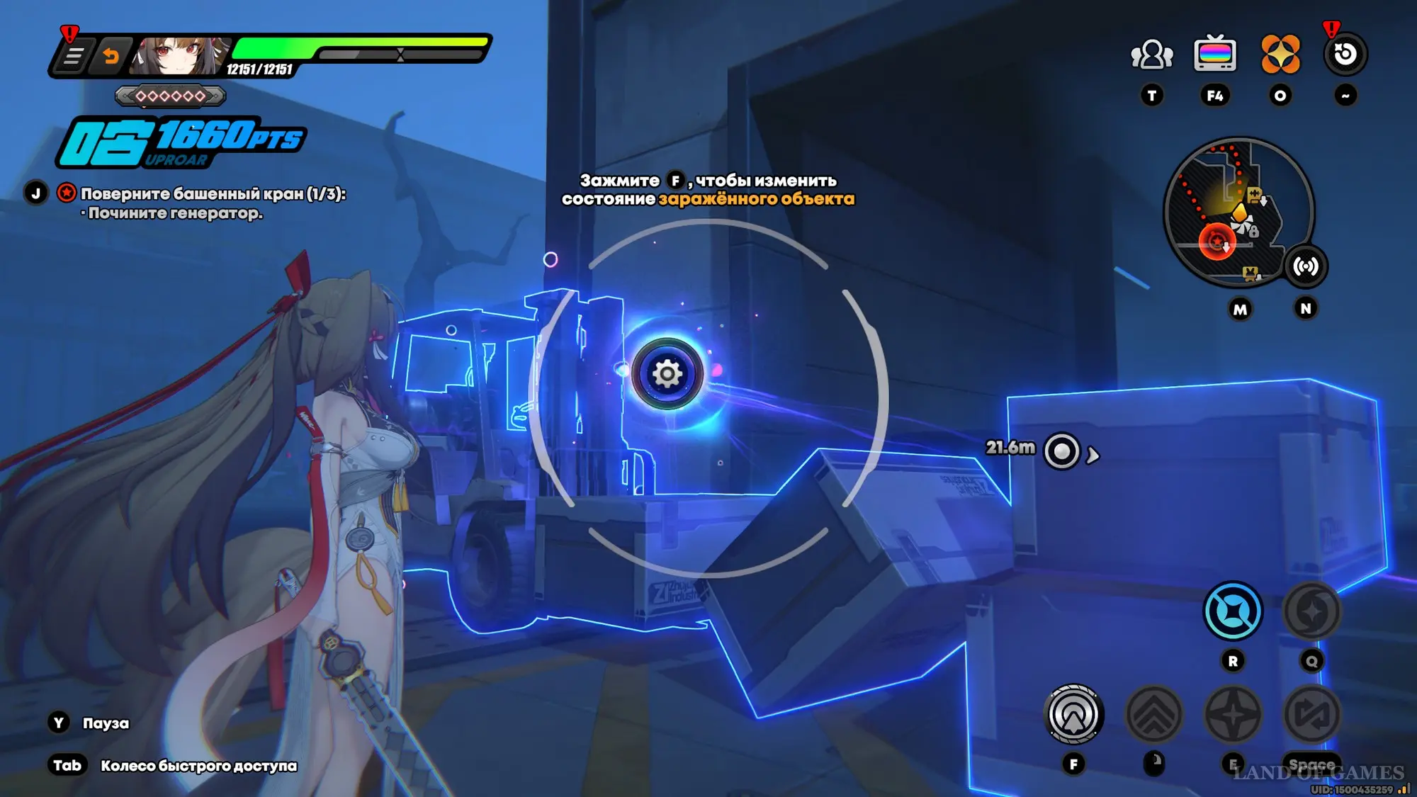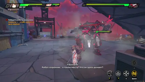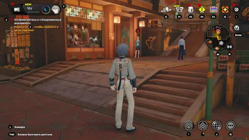 Начните двигаться к квестовому маркеру (кстати, если вы зажмете кнопку уклонения, то сможете летать на ножнах меча), сражаясь по пути с монстрами. Затем догоните загадочного банбу, войдя в здание. Гляньте ролик, а потом воспользуйтесь техникой «Проявление – Исток», нажав сначала клавишу «R», а потом, наведя на круг с шестеренкой и зажав клавишу «F», дабы изменить состояние зараженного объекта. Тем самым вы разблокируете себе путь вперед и сможете догнать банбу.