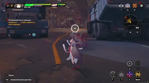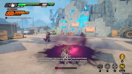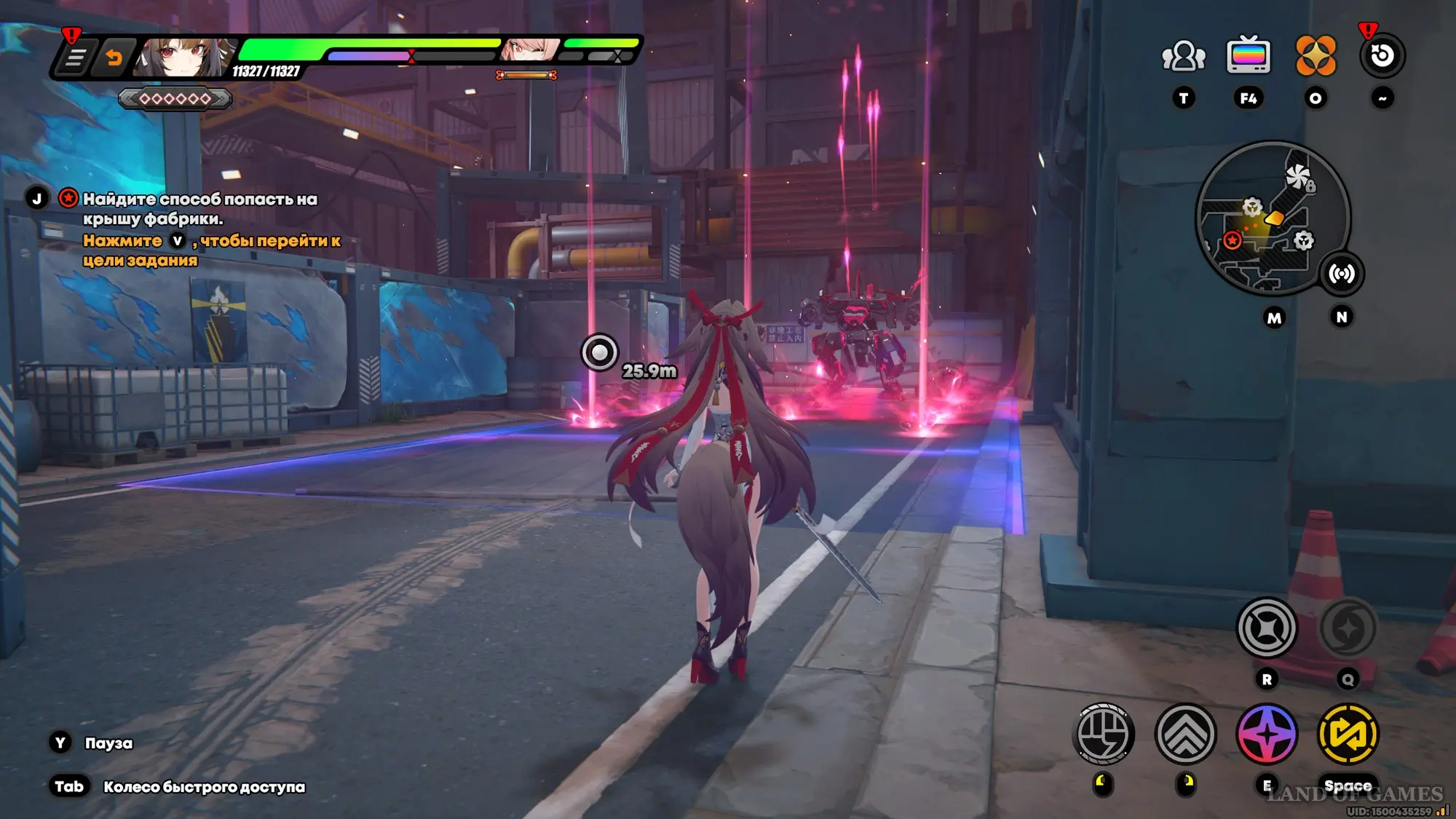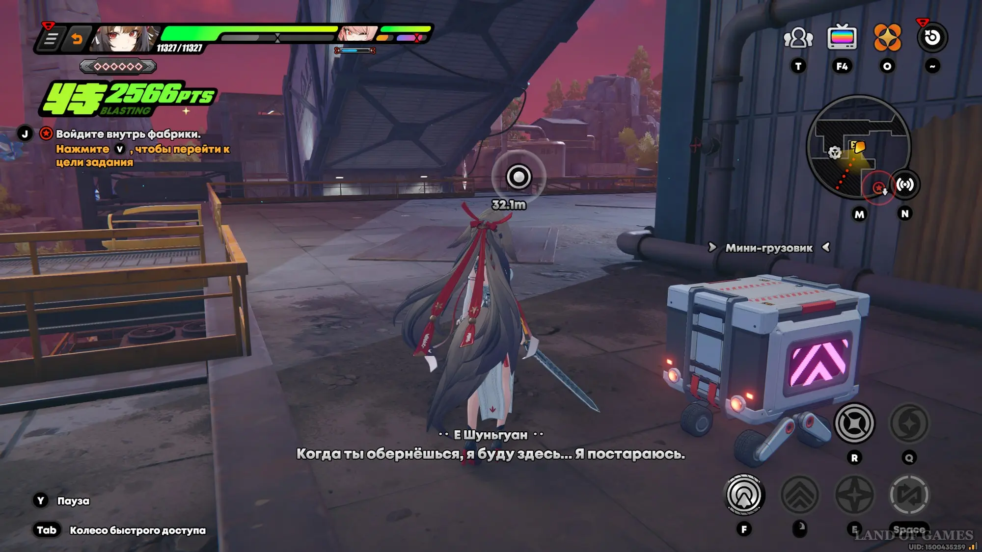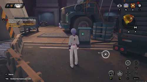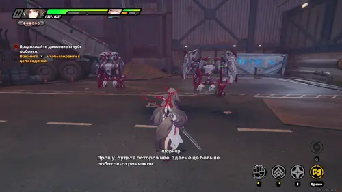 Потом расправьтесь с мини-боссом роботом, используя способности Чжао и Е Шуньгуан. Уничтожив противника, можете сначала взаимодействовать с Визуальной сингулярностью справа, дабы раскрыть карту локации, прежде чем очистить черные цветы скверны слева. Просмотрите новый ролик, а потом откройте мини-грузовик и пройдите к фабрике, следуя за указателями и расправляясь с врагами.