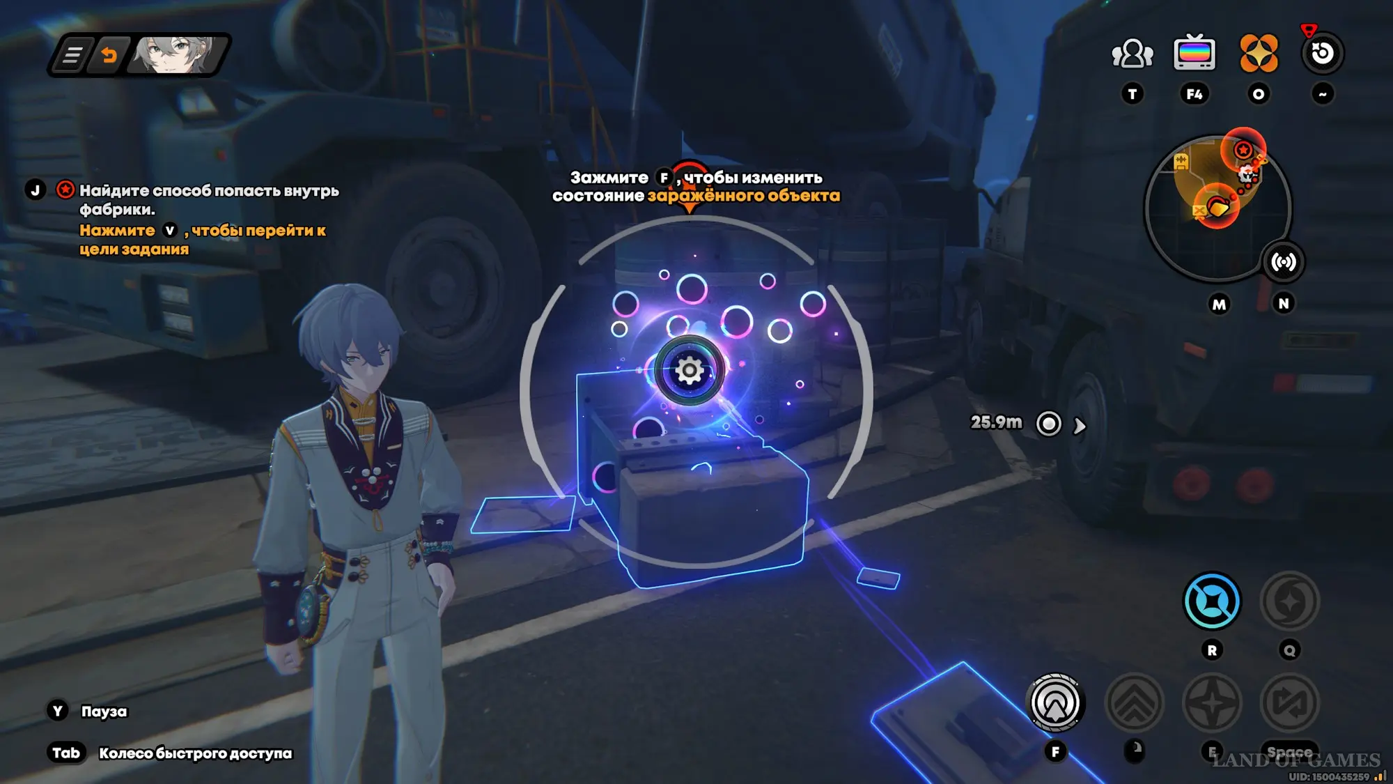 Далее обойдите два грузовика чуть южнее, и вы обнаружите тут сломанный пульт управления, который вам нужно будет починить с помощью своей способности «Проявление – Исток».