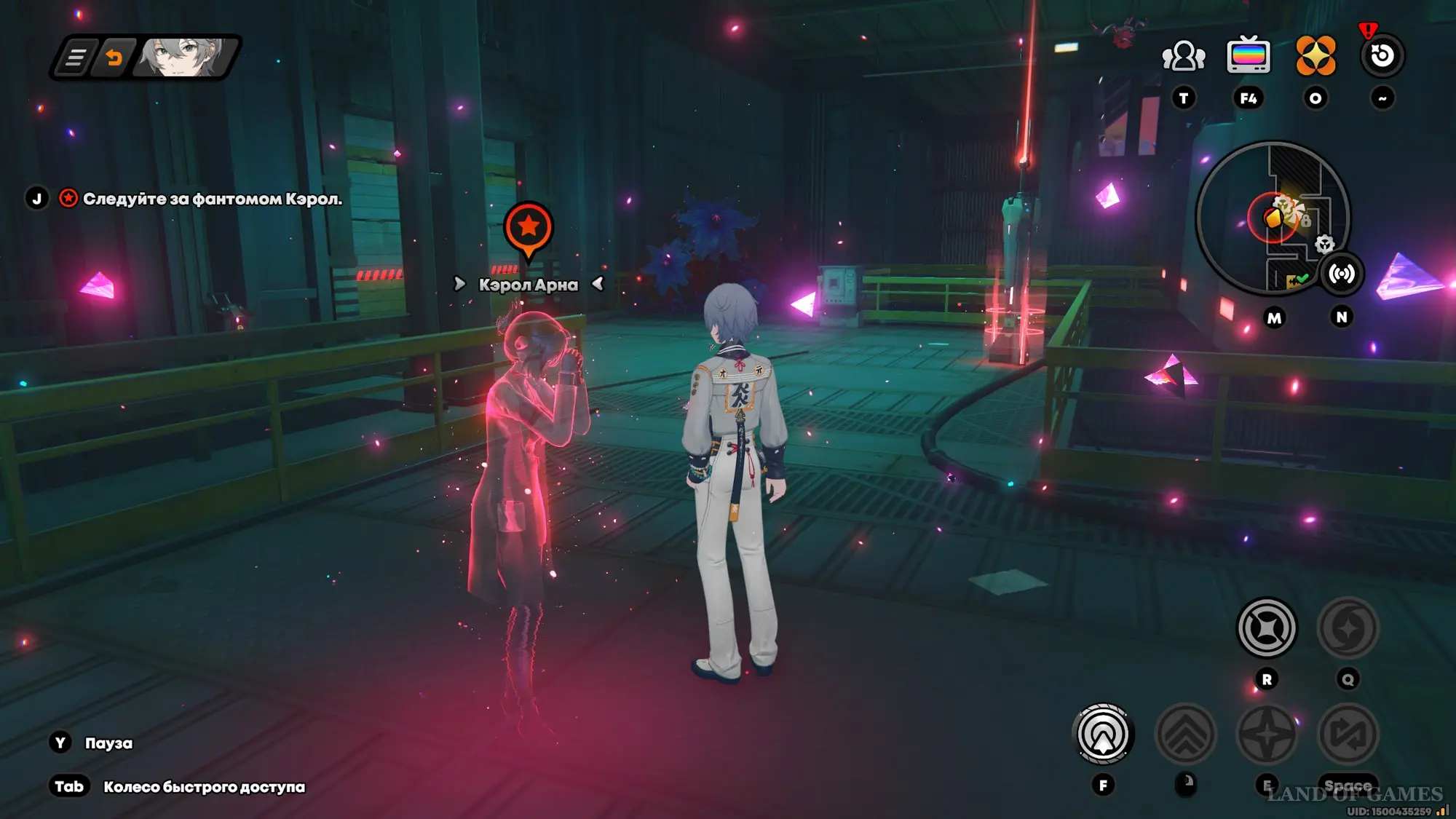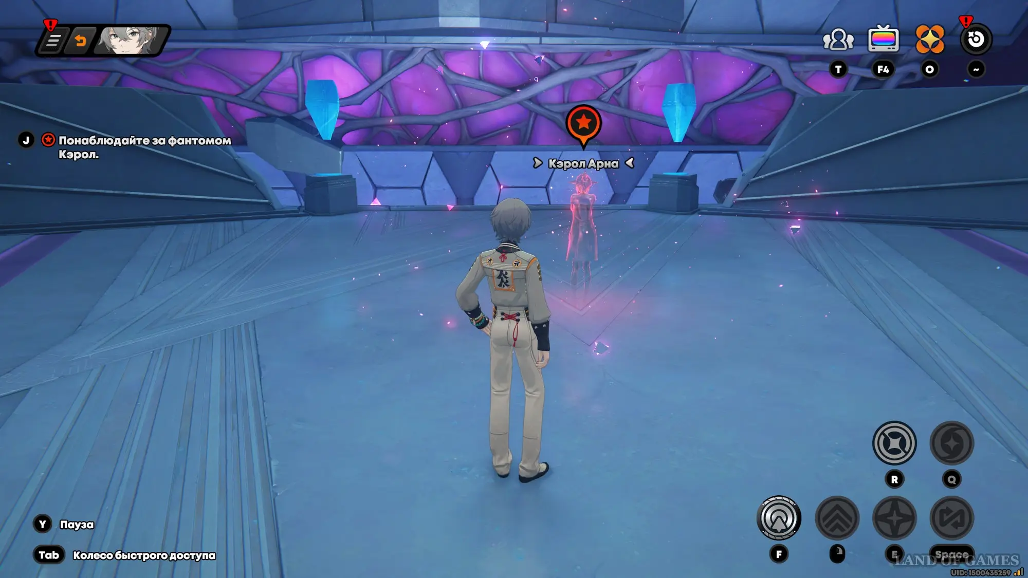 Начнется новый бой с эфириалами, и к вашей команде наконец-то присоединится Чжао. Она является саппортом, у которой нужно накапливать «Обморожение» для активации Эфирной завесы и выдачи бонусов союзникам. Подробнее об этом мы рассказали в ее гайде. Разобравшись с врагами, поднимитесь наверх, используя Каскад мечей. Поднявшись, взаимодействуйте с фантомом Кэрол.