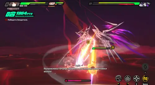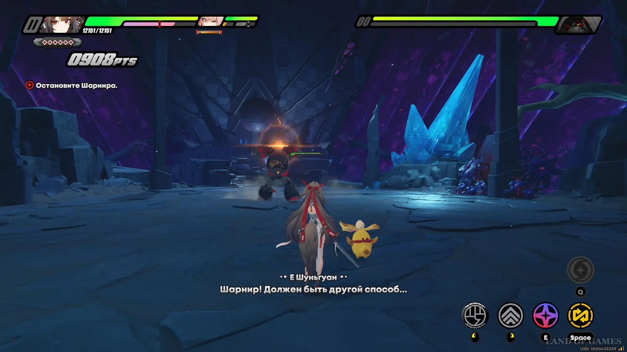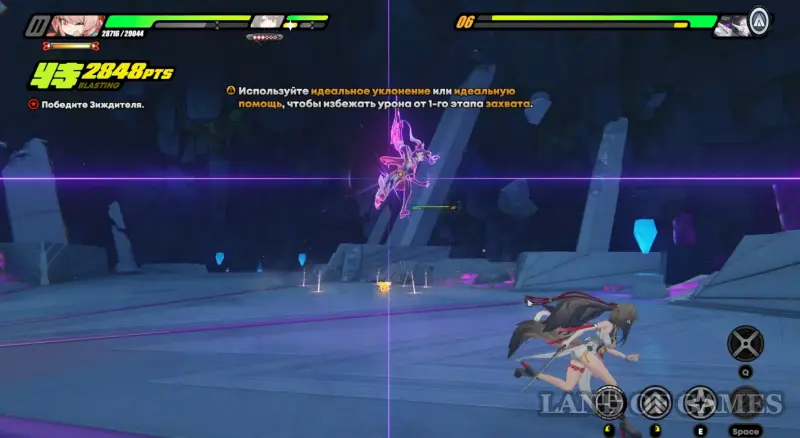 В первой фазе сражения вам необходимо будет сначала парировать или уклониться от фиолетовых атак босса. Для этого просто следуйте инструкции на экране, вовремя нажимая клавишу «Пробел». Когда противник окажется оглушенным на время, тут же переключайтесь на Е Шуньгуан и атакуйте его всеми своими силами, чтобы нанести ему максимальный урон.