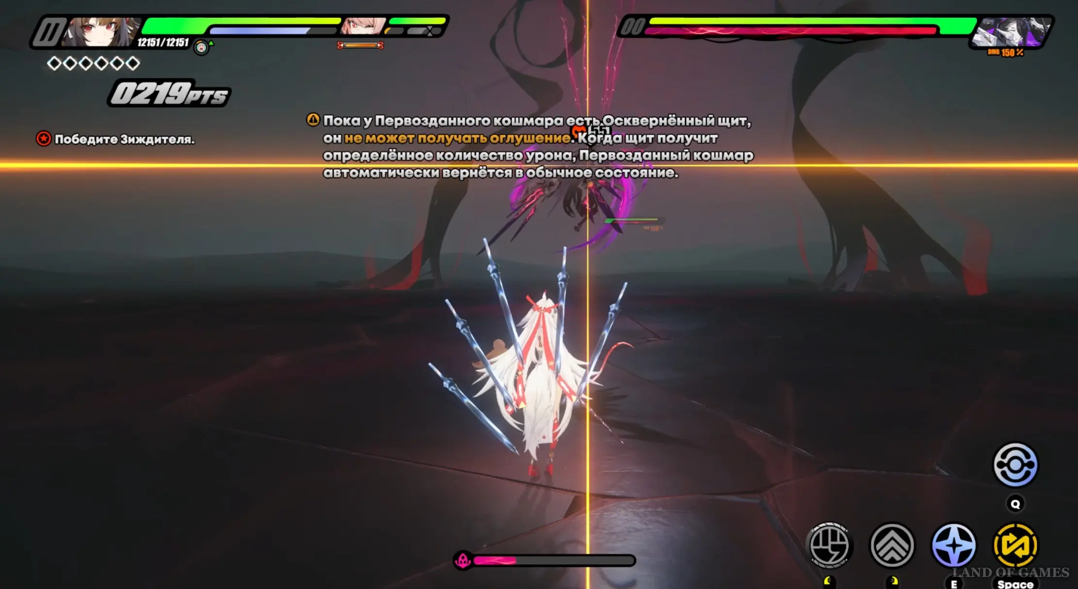 Не забывайте иногда переключаться на Чжао для активации и обновления ее баффов, а также использования усиленной особой атакой, которая лечит союзников. Во второй фазе враг получит оскверненный щит, поэтому вам не удастся его оглушить, пока вы не снимите барьер. Впрочем, Е Шуньгуан в своей усиленной форме сможет наносить Зиждителю огромный урон даже при наличии этого щита.