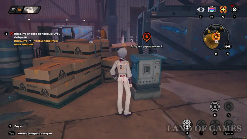 Теперь пройдите позади подъемника и уберите разбросанные по земле коробки с помощью своей техники. Здесь вы обнаружите последний пульт управления, который тоже нужно активировать, просто нажав на него. Просмотрите очередной ролик.