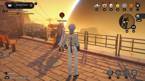 Поболтайте с Шарниром и выслушайте его историю про Рассвет. После разговора наведите камеру на метку «Летающего меча» и нажмите кнопку особой атаки (Е), чтобы мгновенно переместиться к ней. Сделайте так несколько раз, чтобы добраться до визуальной сингулярности, которая позволит вам раскрыть половину карты и осмотреться.