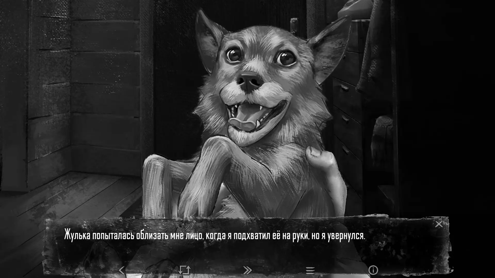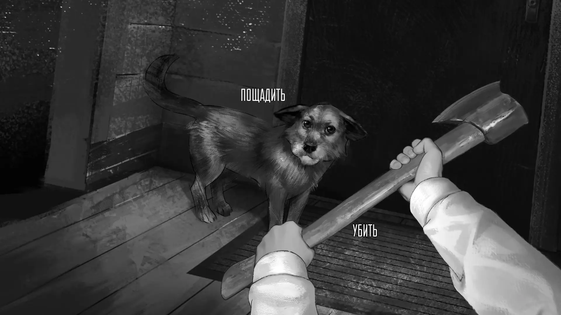 Оля убегает в свою комнату, чтобы принести что-то для Жульки. В этот момент Антон остается наедине с собакой, держа в руках топор. Здесь игроку предлагается один из самых важных выборов эпизода.