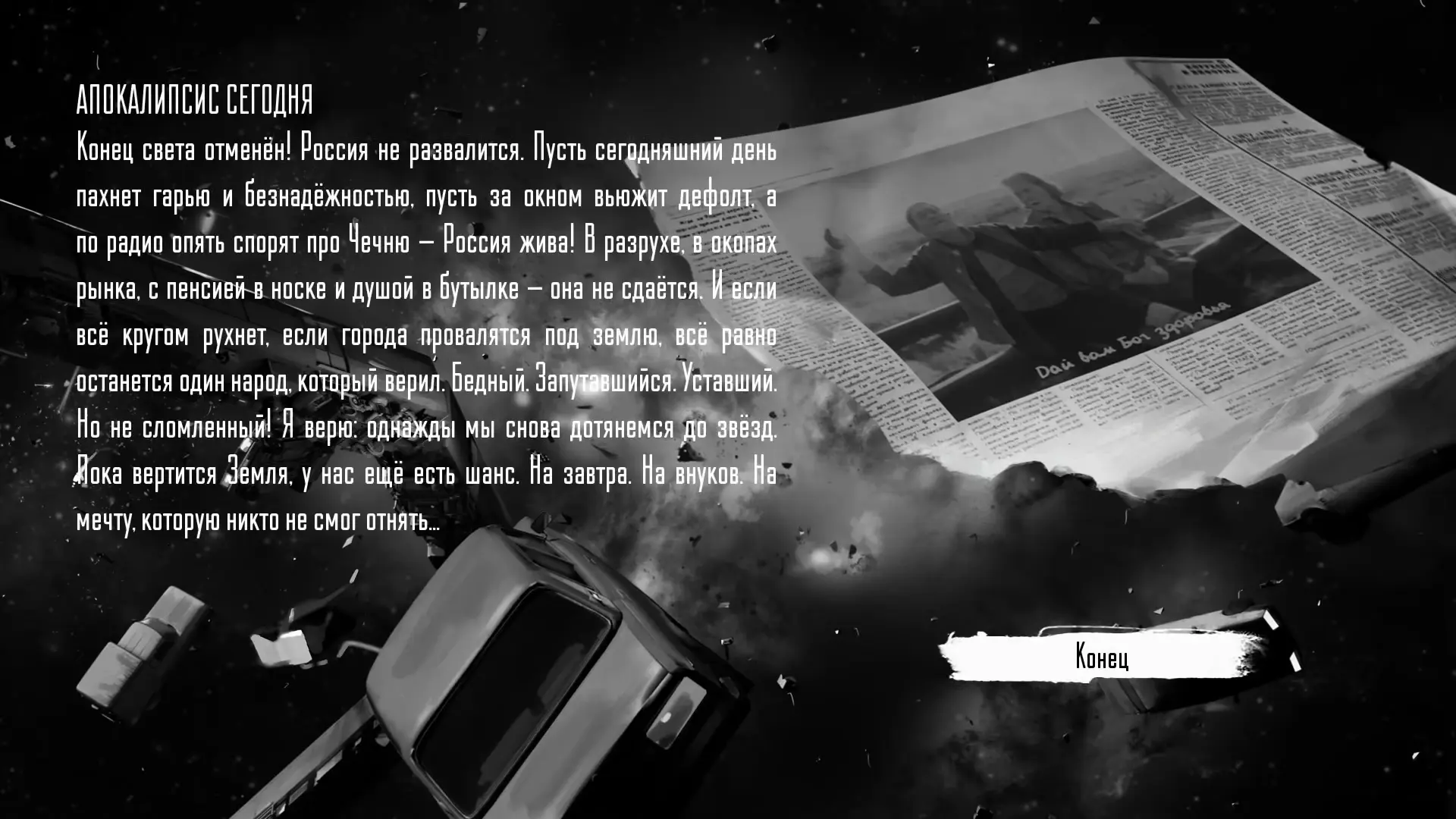 Если выбрать крест и молиться все разы, что того требует от нас игра, из него начинает сочиться тьма. Появляется непостижимое существо, начинается катастрофа, родители выживают и увозят Антона и Полину, но вскоре теряют память и попадают в аварию.