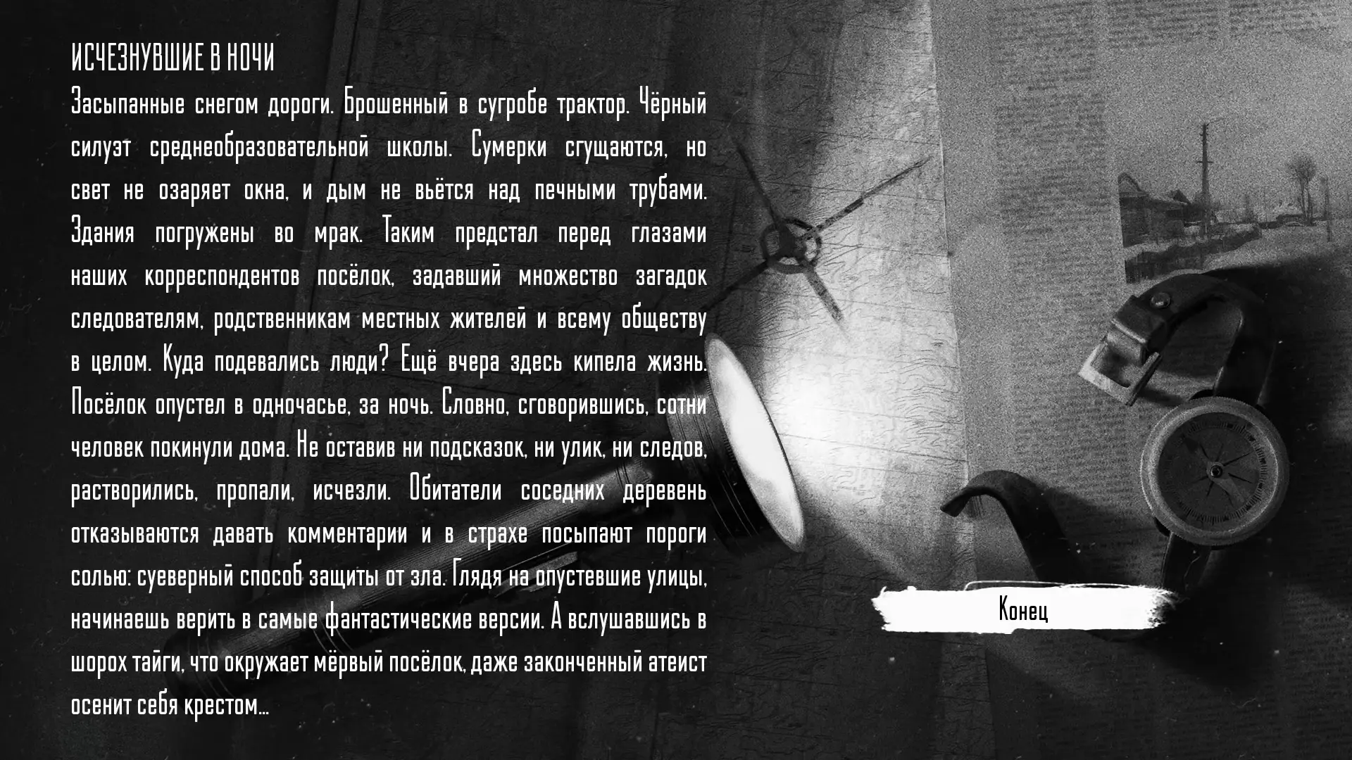 Если же Антон не впускает мать и выбирает себя в качестве угощения, звери уничтожают весь поселок. Это концовка «Исчезнувшие в ночи».