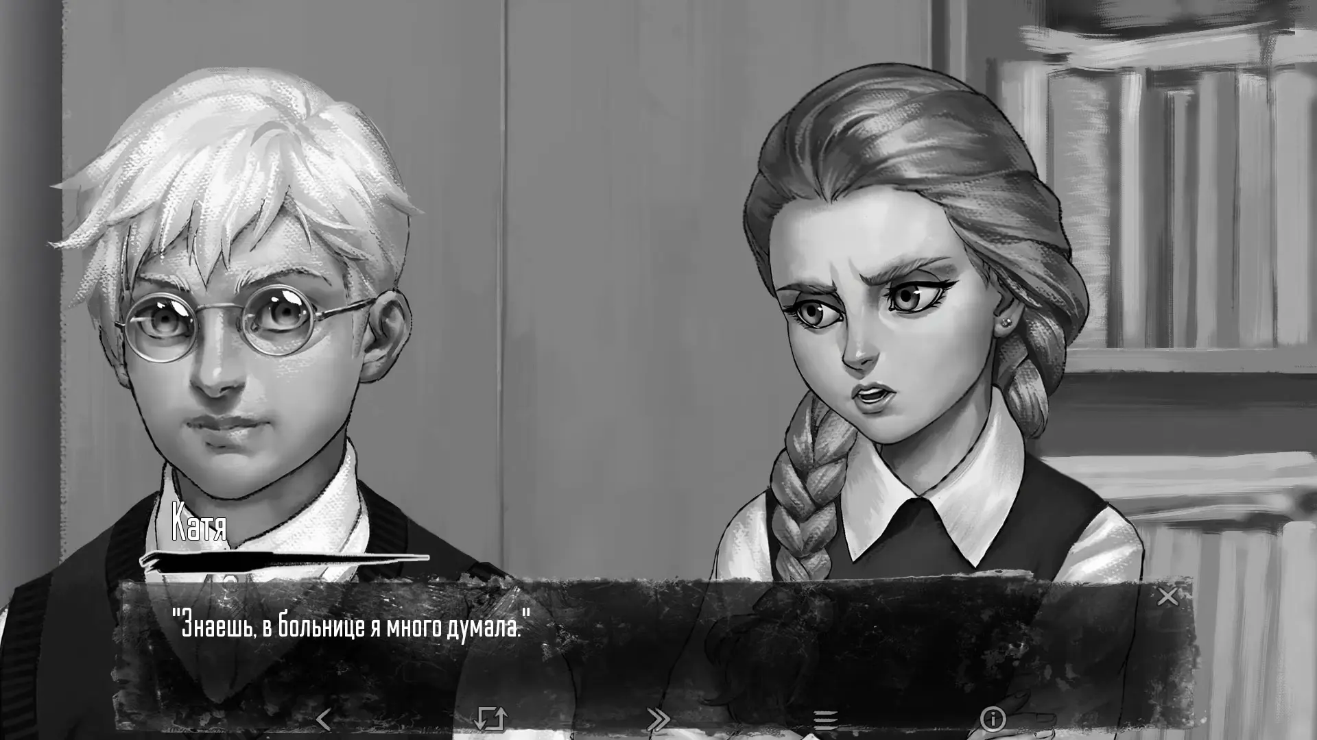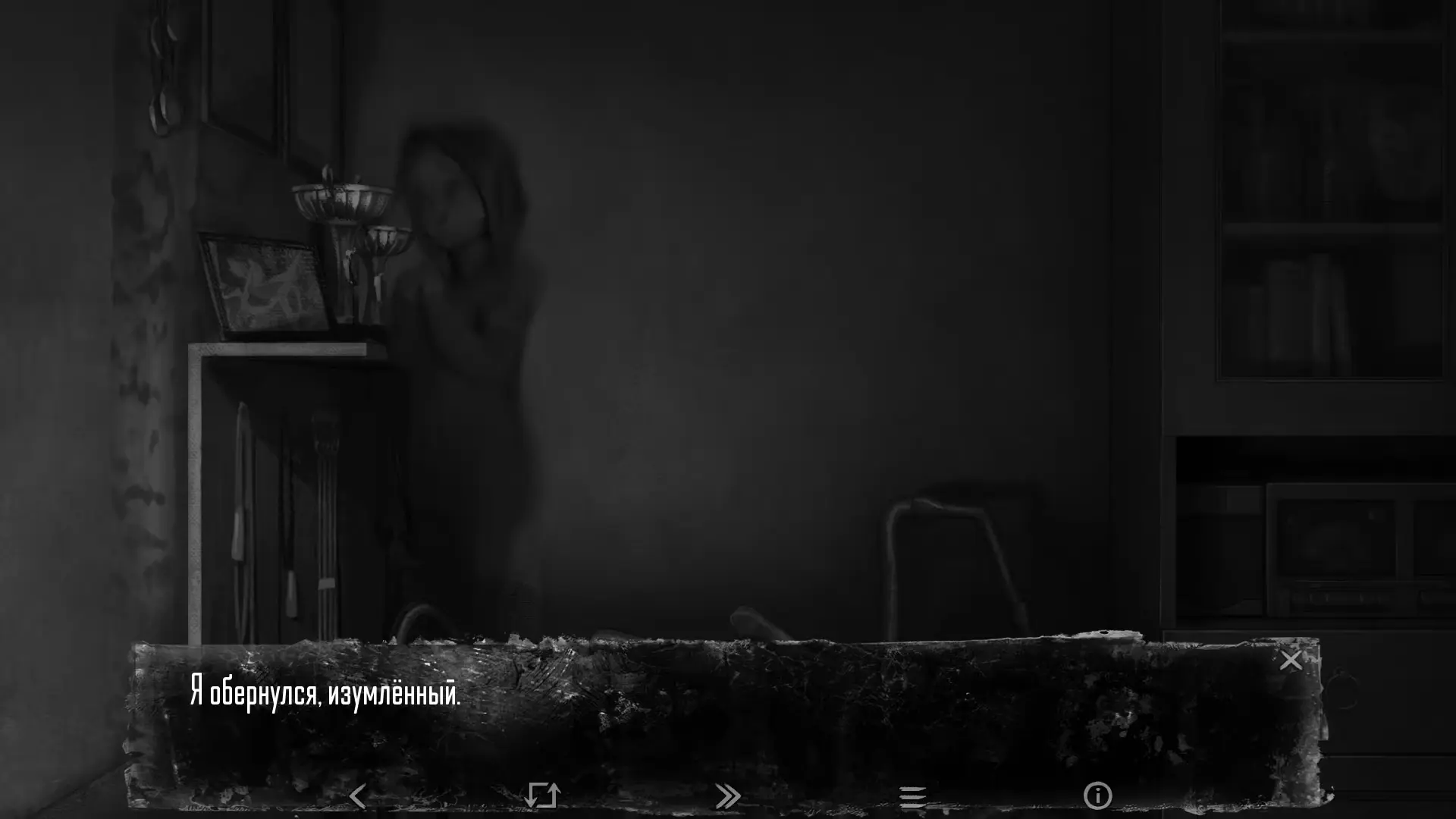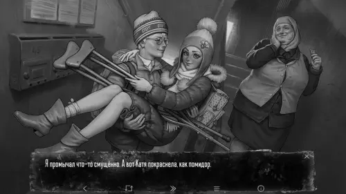 После милой сцены в подъезде мы оказываемся в квартире Кати. Здесь же можно осмотреться, чтобы получить одну из ачивок эпизода: слева трюмо, кукольный домик и аквариум, в котором можно покормить рыбок, справа – магнитофон, грамоты и фото под надписью «Осмотреть».