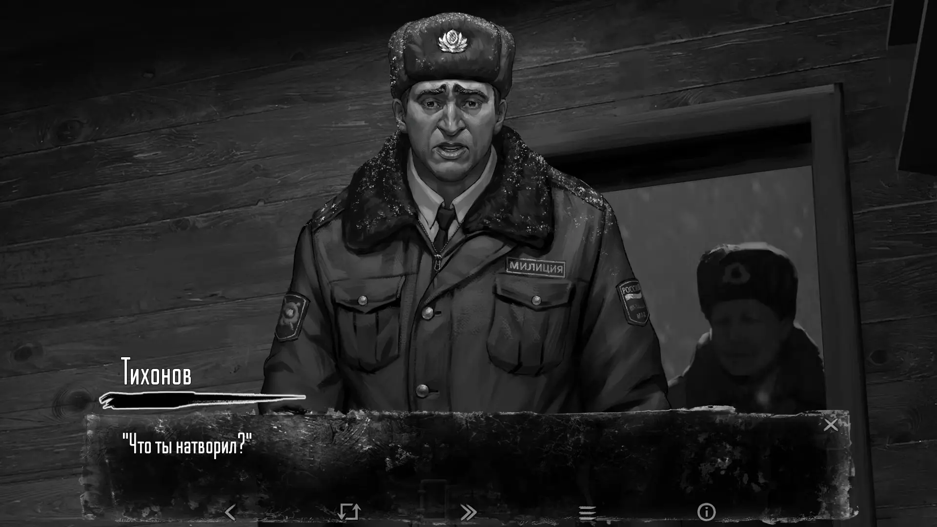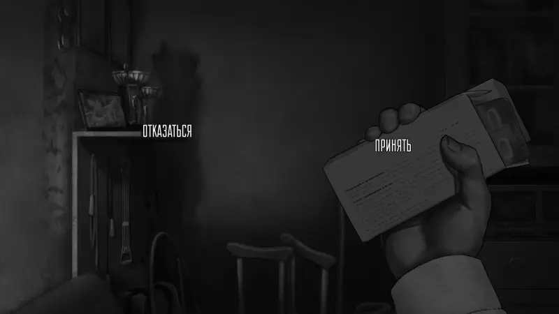 После разговоров по телефону Антон заколачивает окна и слышит стук в дверь. В глазке не видно кто пришел, враг или друг, здесь же нам предлагается выбор – впустить гостей или остаться с сестрой вдвоем.