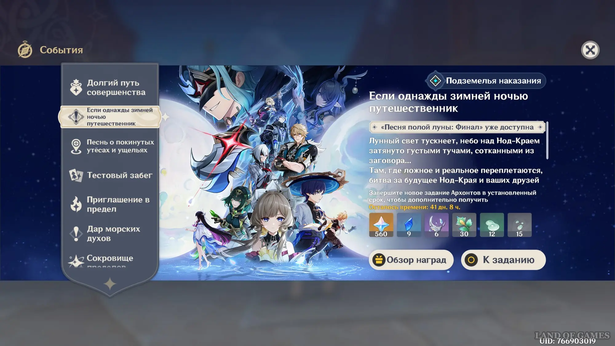 За прохождение этого квеста в качестве вознаграждения вы получите 1425 очков приключений, 62 тысячи моры, 6 книг героя и 11 волшебной руды усиления.