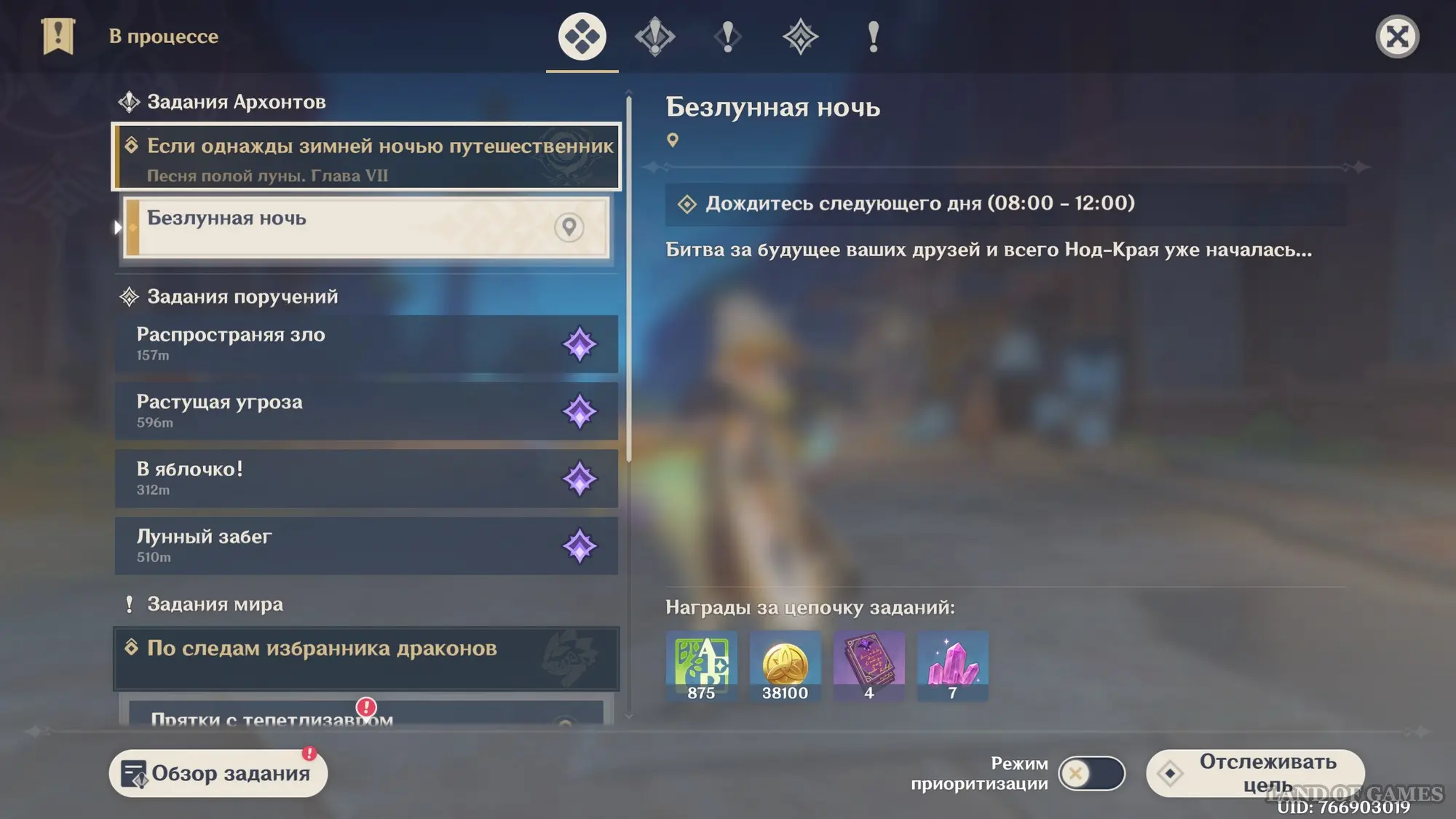 - Завершить задание Архонтов под названием «Лунный свет в утреннем тумане», являющееся предыдущей частью сюжетной арки Нод-Края.