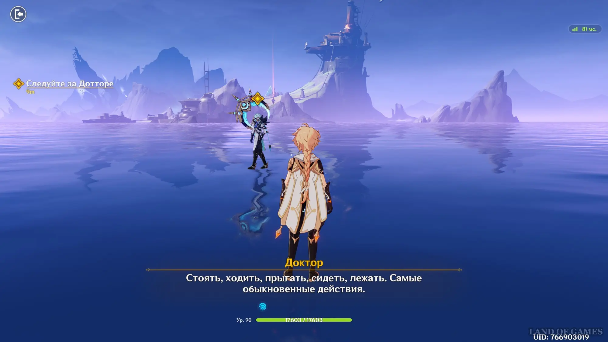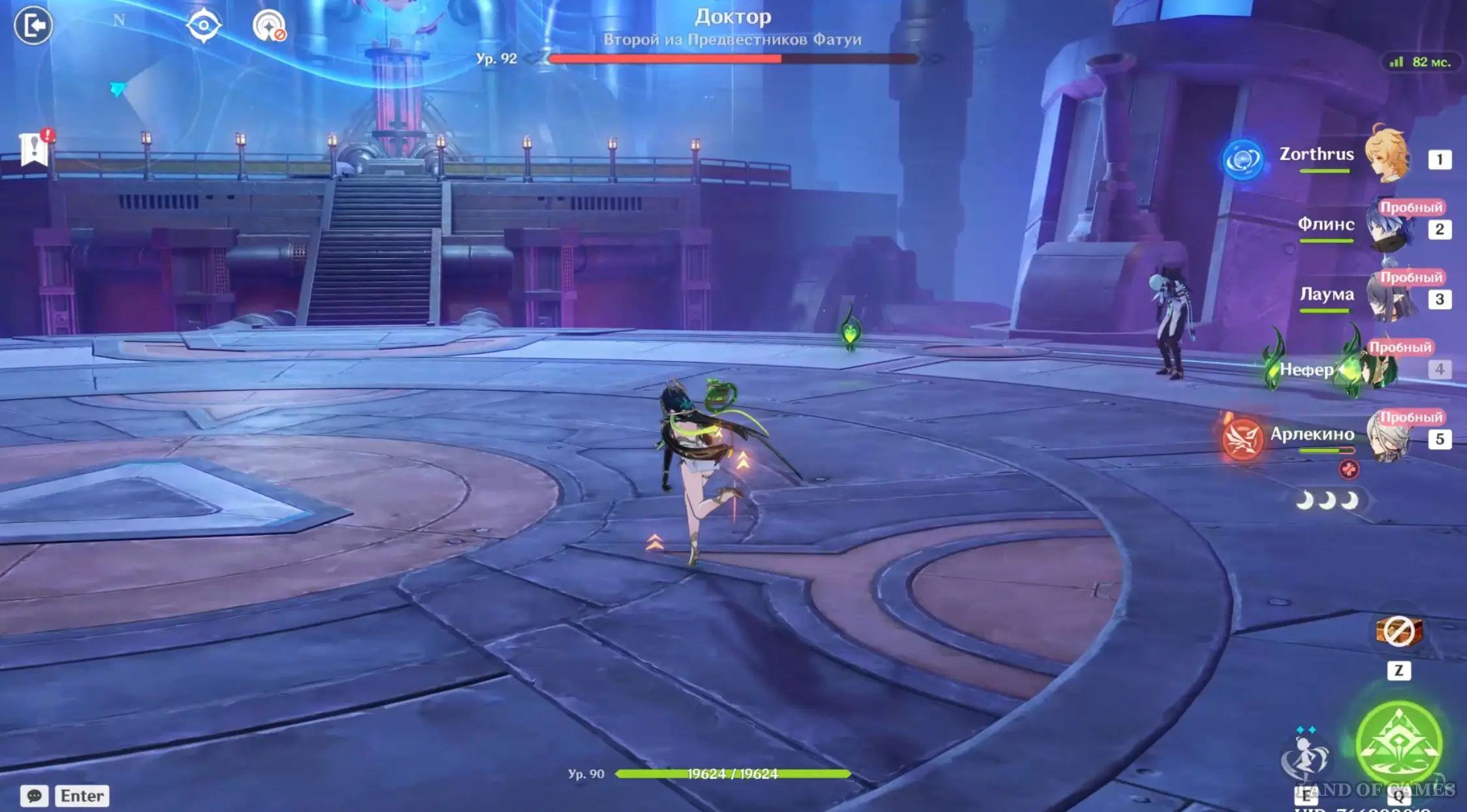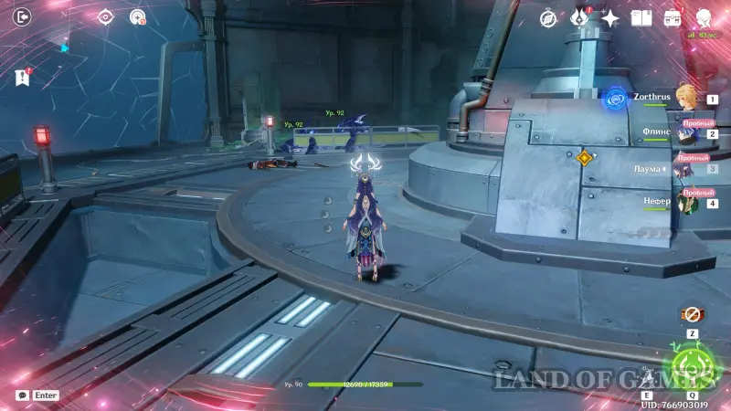 Доберитесь до центральной арены, где вы повстречаете Доктора, и после непродолжительной кат-сцены вступите с ним в схватку. Сразу после начала боя используйте навыки и взрывы стихий Путешественника и Лаумы, а затем переключитесь на Нефер или Флинса для нанесения основного урона врагу, так как они обычно играют роль мейн-ДД в отряде. Советуем вам прочитать наши гайды по этим персонажам, чтобы примерно знать об их ротации в бою.