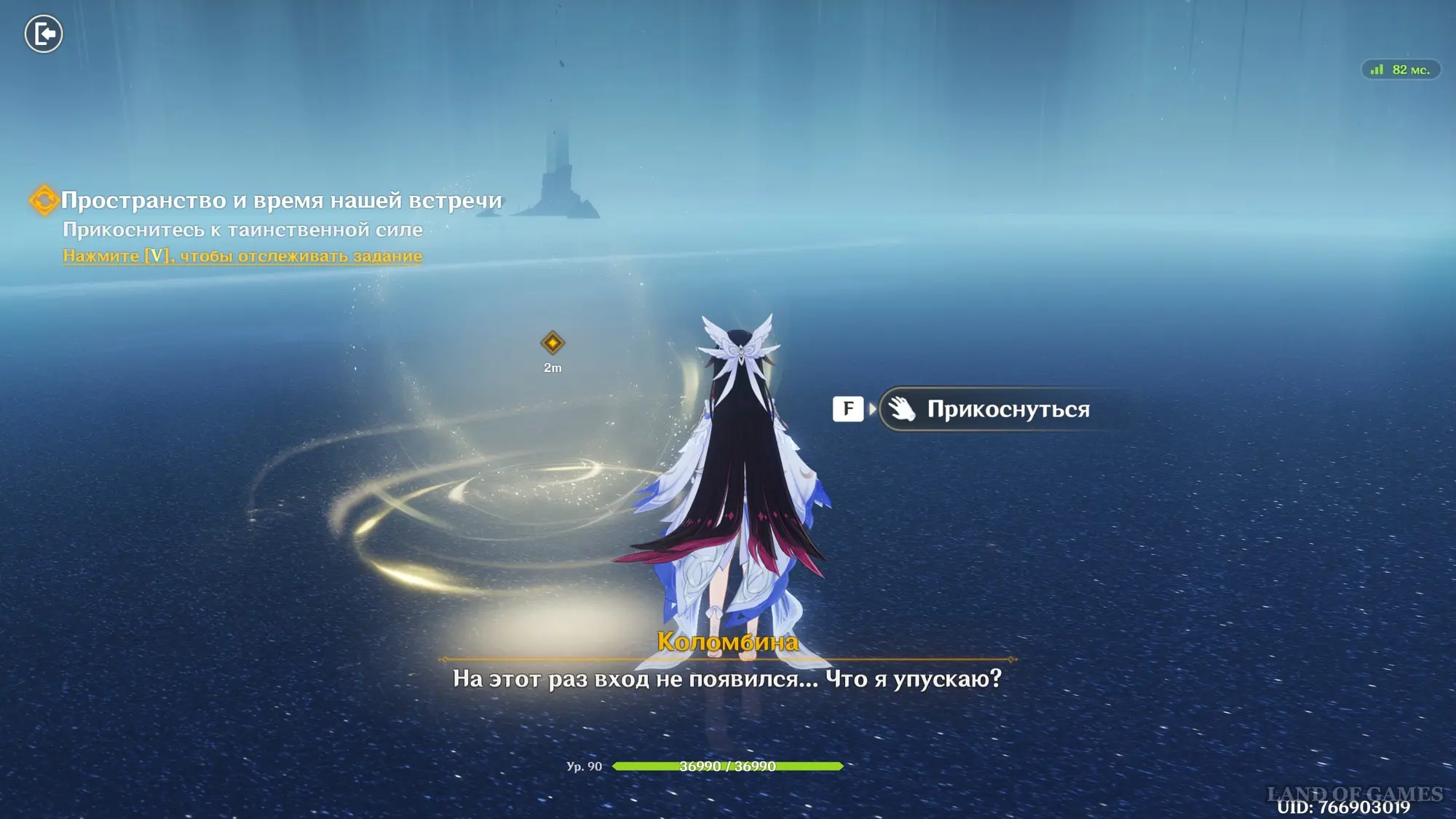 Вам вновь необходимо будет прицеливаться в золотые фрагменты и отпускать кнопку, чтобы собирать их, но на этот раз нужно также следить за фиолетовыми частичками и стараться не касаться их, иначе всю мини-игру придется начинать заново (на гифке ниже показан весь процесс). Пройдя испытание, войдите в мир внутри зеркала, и посмотрите, как Коломбина создает Луоннотар.