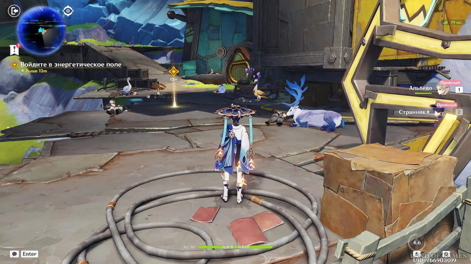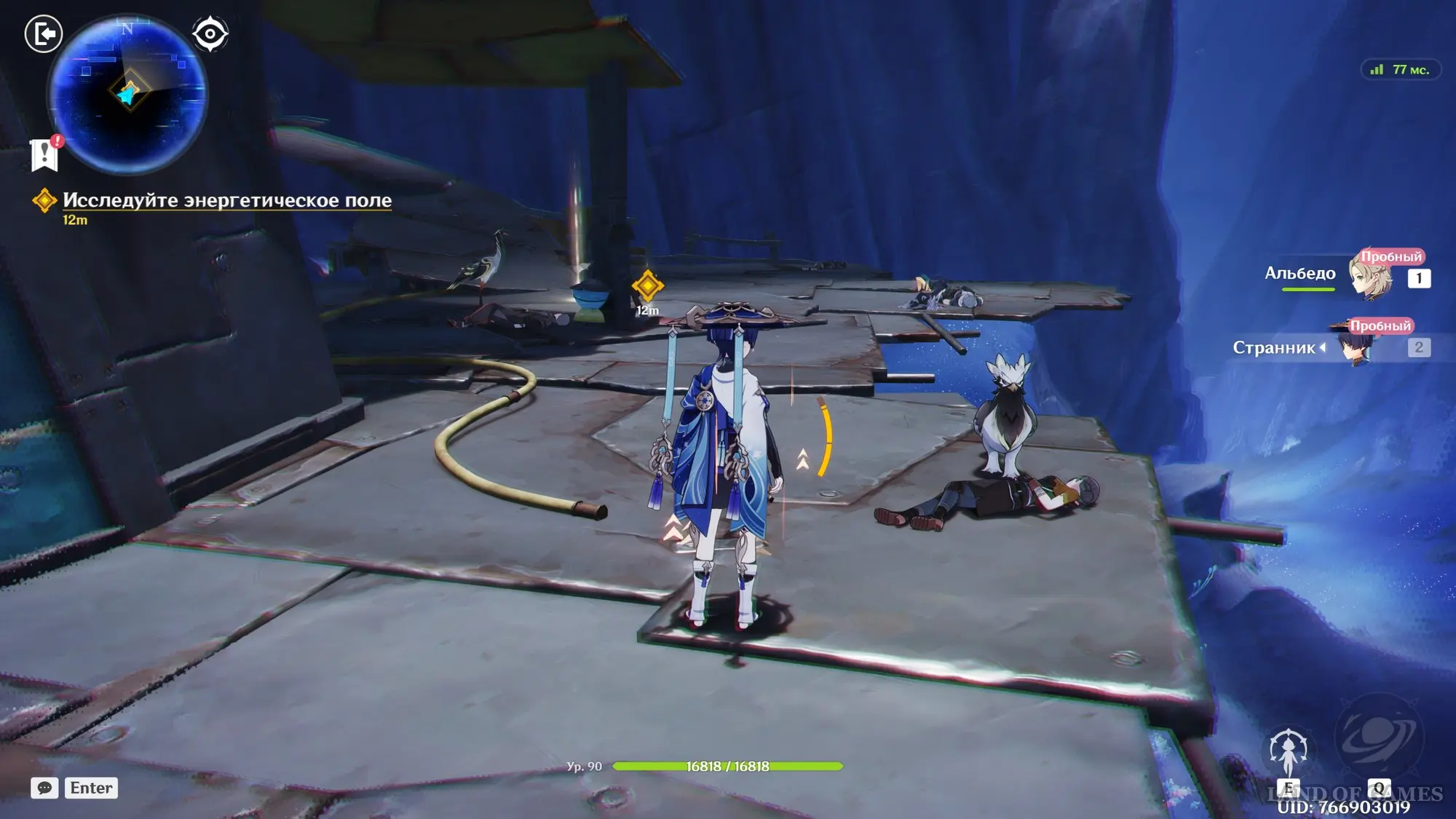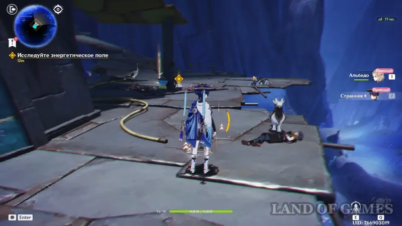 Потом посмотрите кат-сцены с Арлекино и Чайльдом, и разберитесь с противниками. Далее вы возьмете под управление Альбедо и Странника – войдите с ними в энергетическое поле, созданное Дотторе. Пройдите к квестовом маркерам, поднимаясь все выше (не забывайте использовать полет Странника, активируя его Е-шку), а после разговора с птицей выйдите из энергетического поля.