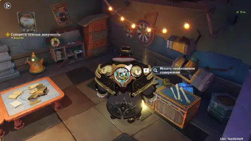 Посмотрев кат-сцену с прибытием Коломбины в комнату Путешественника во «Флагмане», начните писать на стене послание, сыграв в мини-игру. Вам нужно будет удерживать и отпускать кнопку атаки (ЛКМ), чтобы удерживать указатель в пределах линии. Гляньте еще один ролик, после чего задание подойдет к концу.