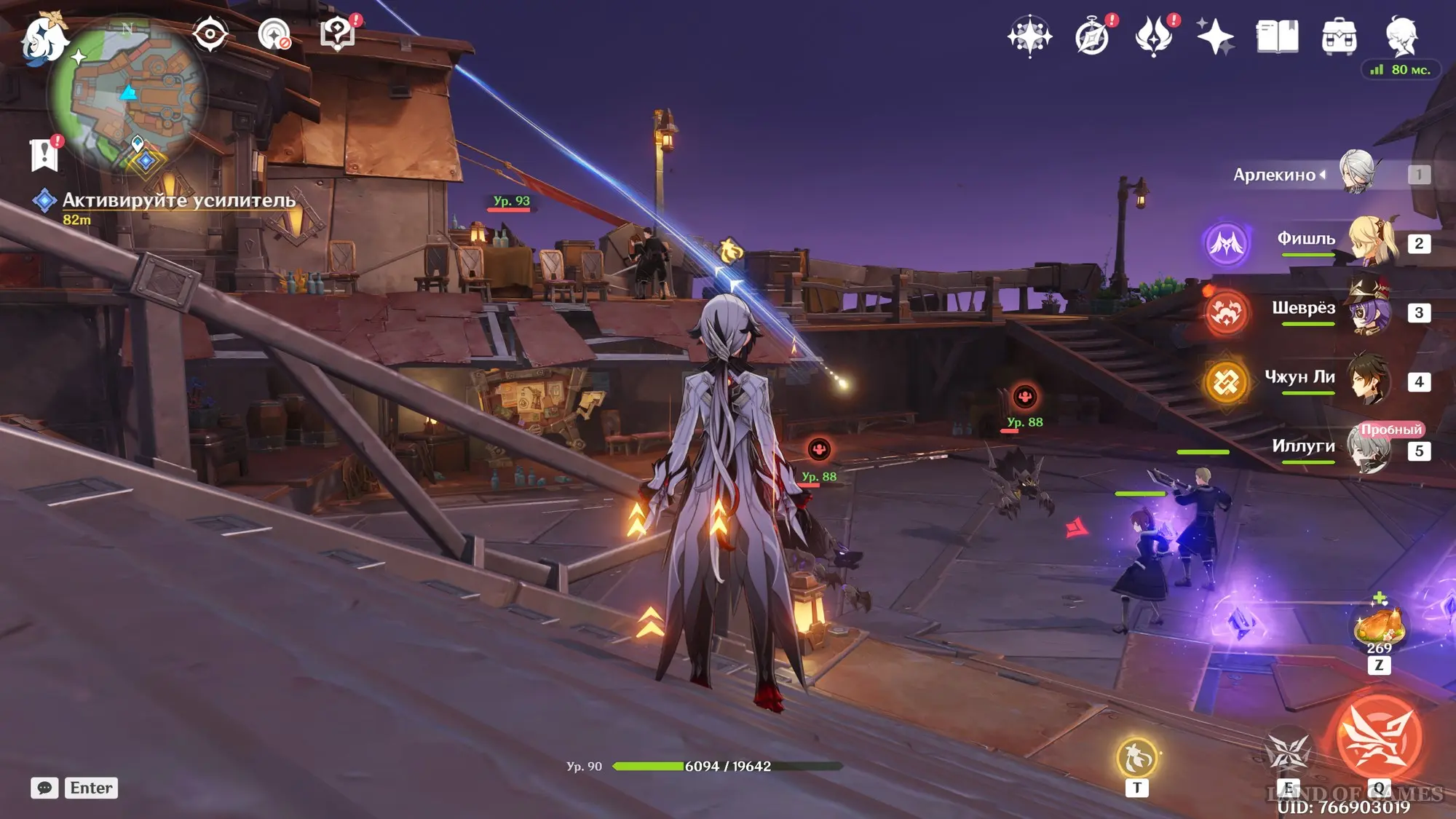 После первого этапа битвы монстр улетит вниз – двигайтесь за ним с помощью лунной дорожки. Отметим, что если у вас вдруг снова вернуться обычные способности персонажей, то для возвращения к световым клинкам нужно просто нажать клавишу «Т». Продолжайте отбивать снаряды противника, как показано на видео ниже.