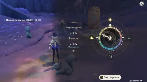 Разобравшись с противником, возвратитесь в пещеру к Николь и передайте ей снимки, а затем прокрутите время на два дня вперед, выбрав отрезок между 08:00 и 18:00. Далее снова пообщайтесь с ведьмой, которая будет стоять рядом с каким-то странным белым кубом.