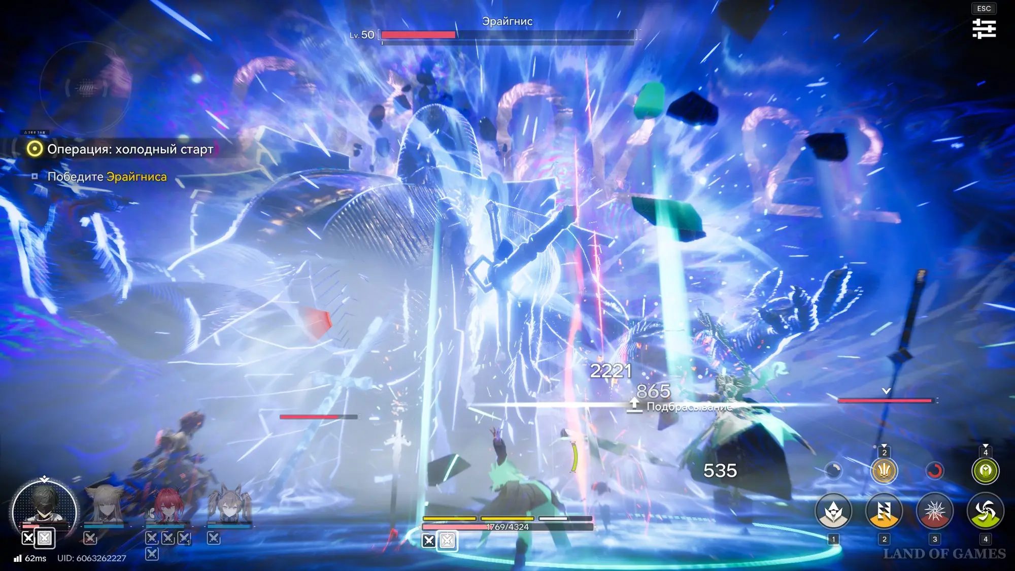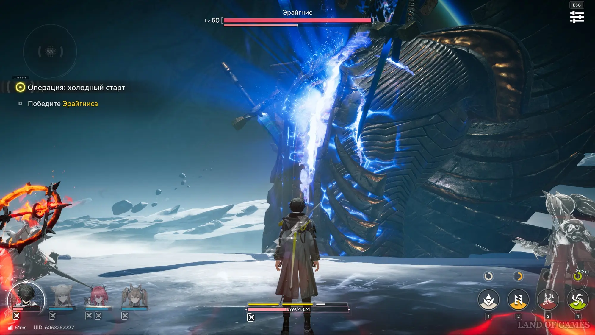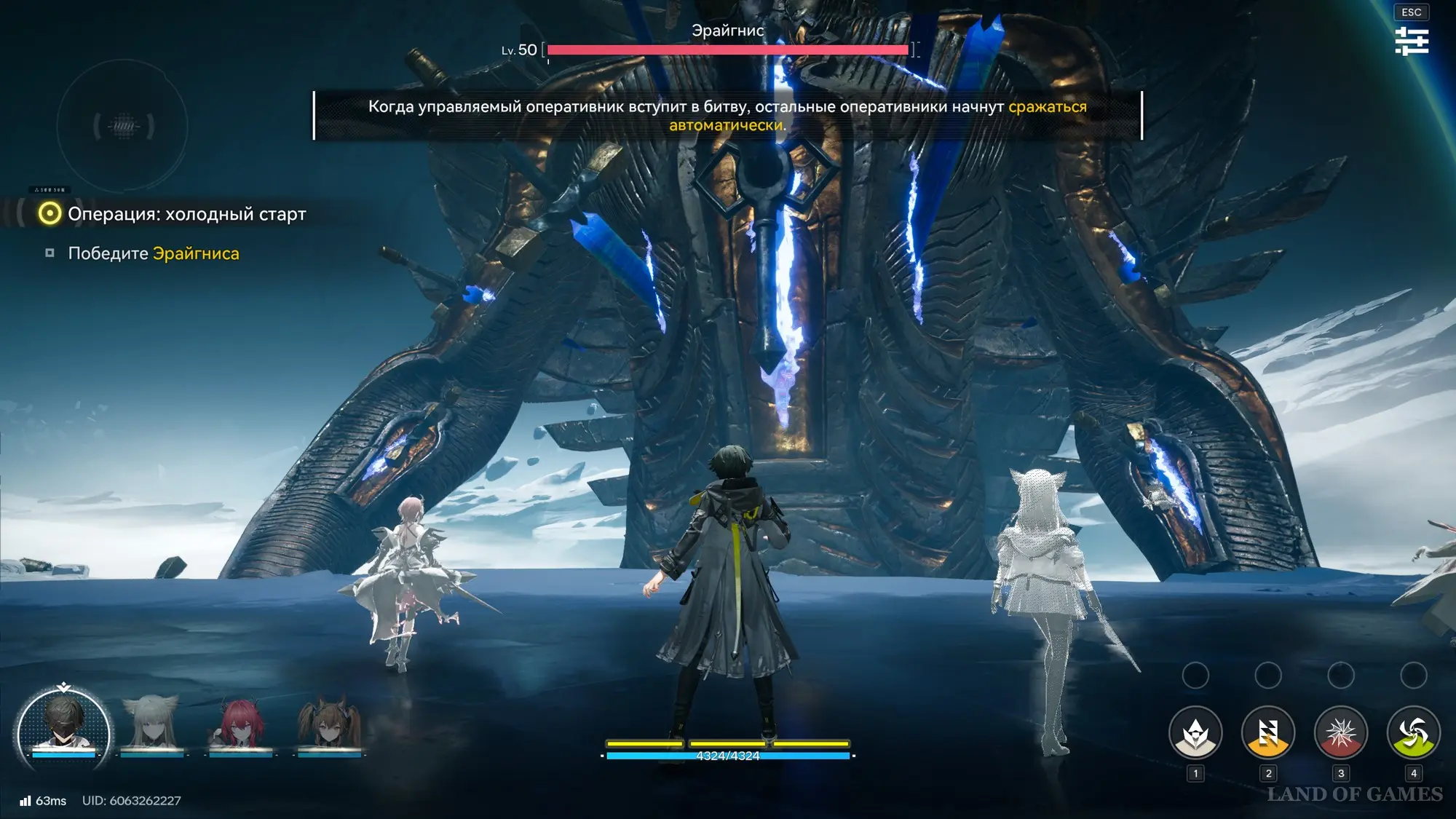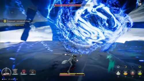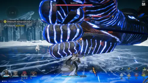 На самом деле здесь все довольно просто – уклоняйтесь от атак противника и ждите, когда он будет ударять рукой по арене. В этот момент тут же атакуйте ее всеми своими силами, постоянно прожимая навыки своих спутников (1, 2, 3 и 4) и выполняя совместные удары (клавиша «Е»).