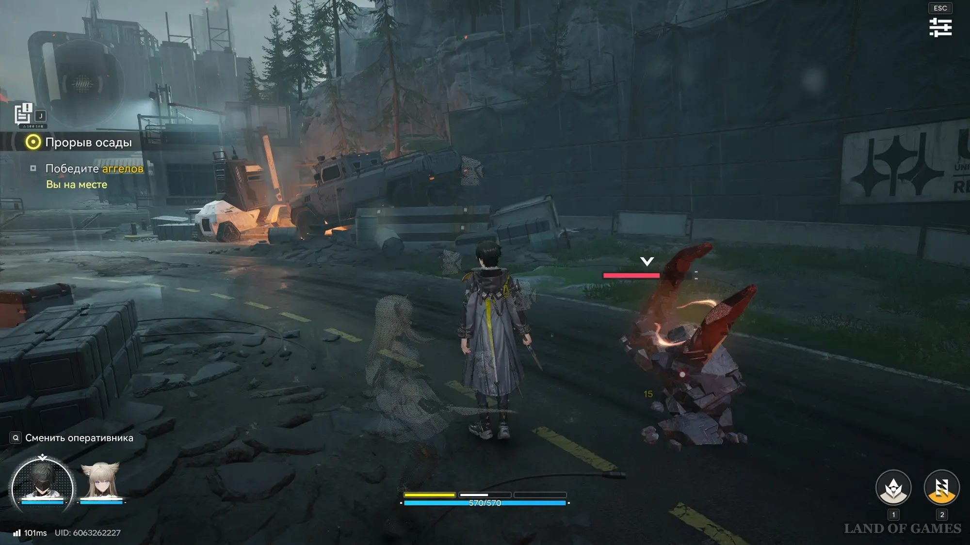 Гляньте ролик, а потом спуститесь по лесенке вниз и разберитесь с землекрушителями. Войдя в лабораторию, бегите к ядру анкера, а потом уничтожьте его любыми атаками. После этого на вас нападет мини-босс, использующий заряженные атаки, которые можно прерывать навыками оперативников (клавиши 1, 2, 3 и 4).