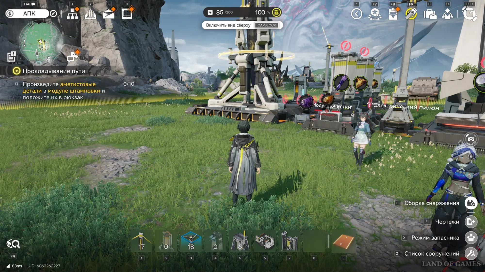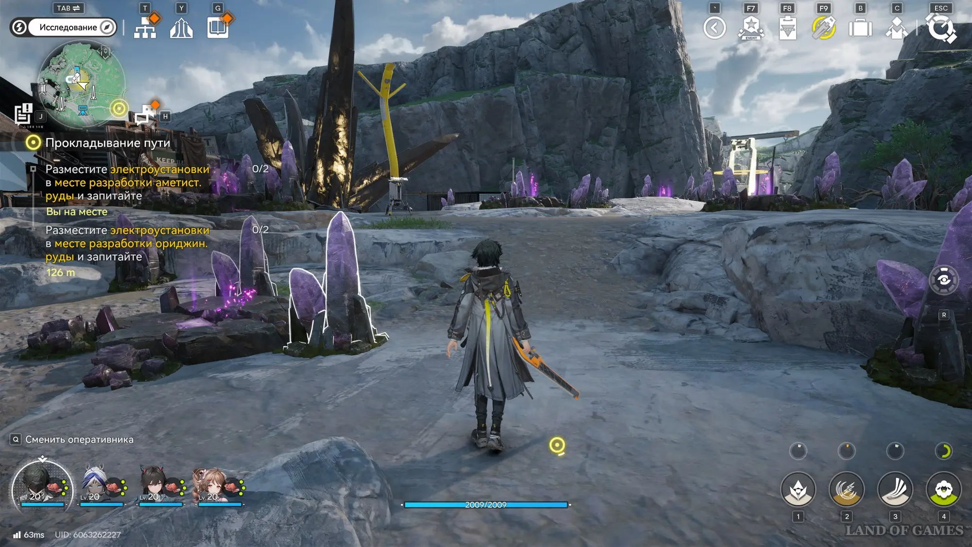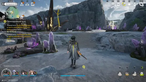 Нажмите «Esc» для выхода из симуляции, а теперь примитесь за создание добывающих установок в реальном мире. Начнет с аметистовой руды. Бегите на северо-запад, поднявшись на каменистый выступ, и вы обнаружите здесь ряд месторождений.