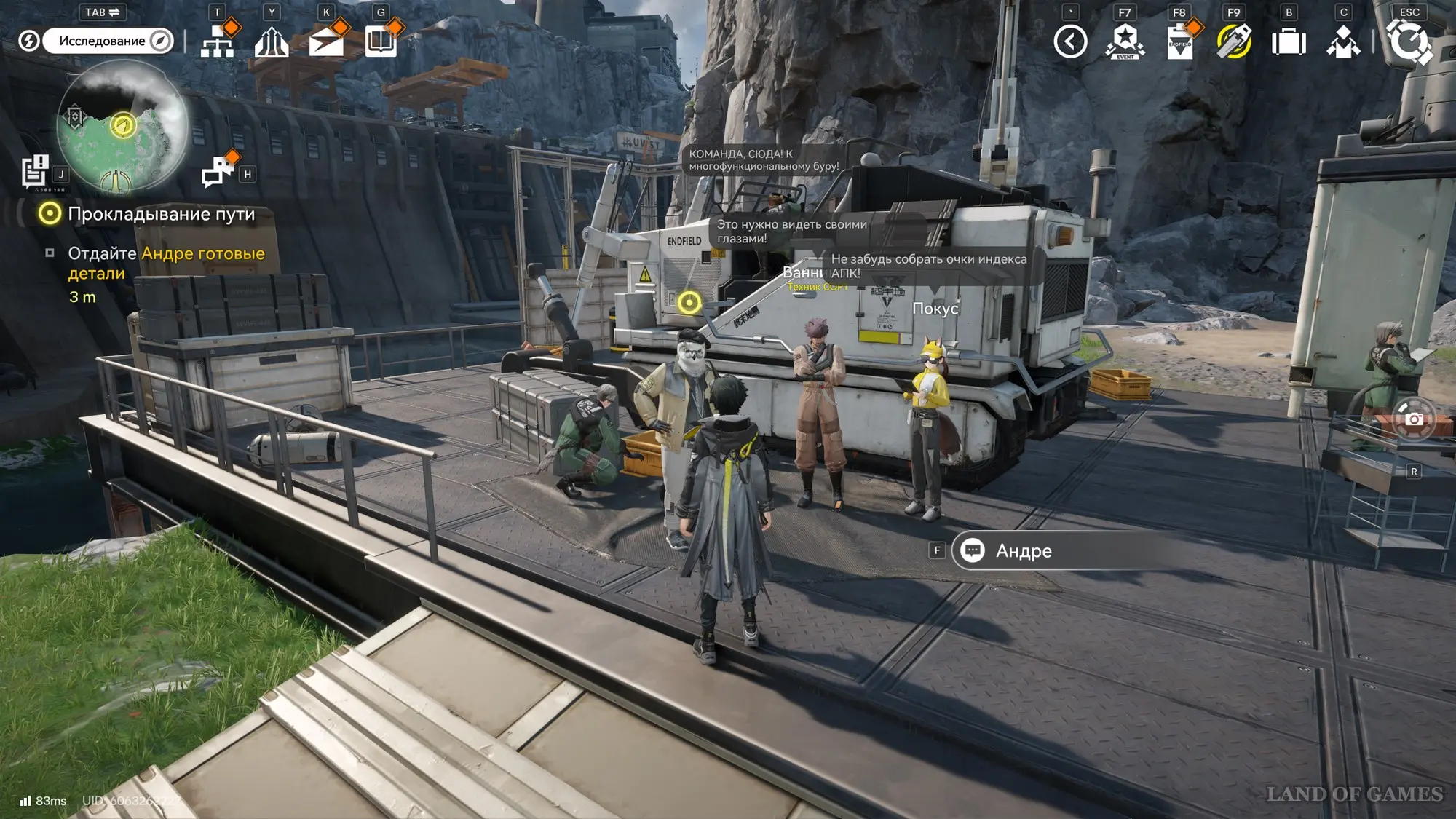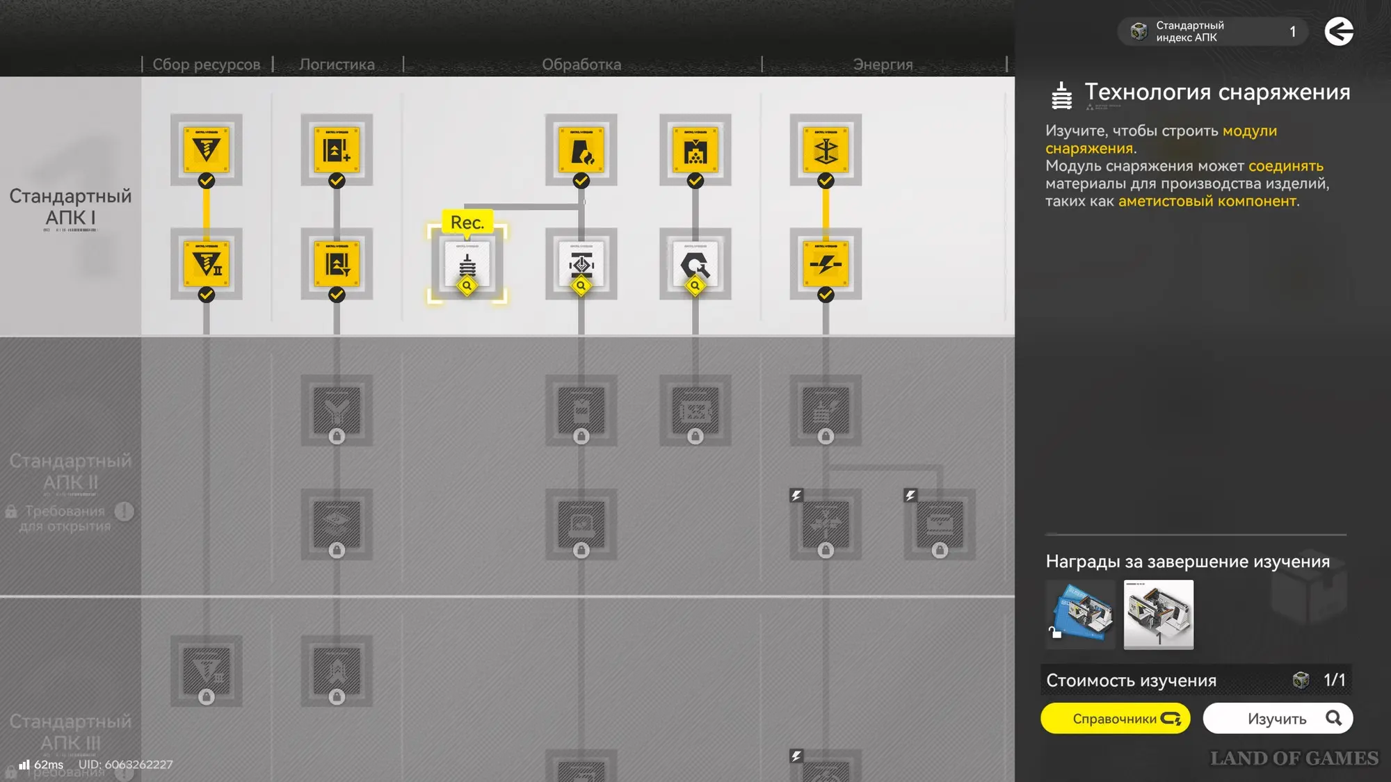 Телепортируйтесь в ключевую область АПК, а затем пообщайтесь с находящимся на севере Андре, который расскажет вам о необходимости изучения улучшений из производственного плана АПК, который открывается клавишей «Т» и содержит в себе подробное древо технологий. Он состоит из трех фаз и следующая разблокируется только после прохождения основной миссии и получении ядра расширения.