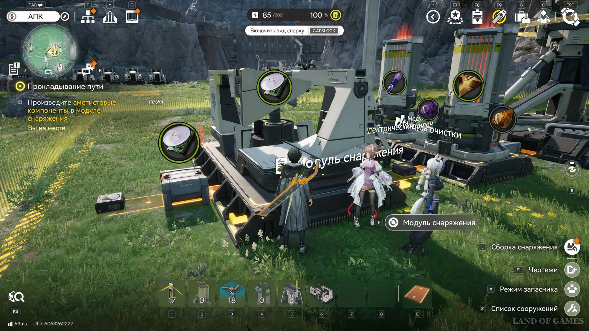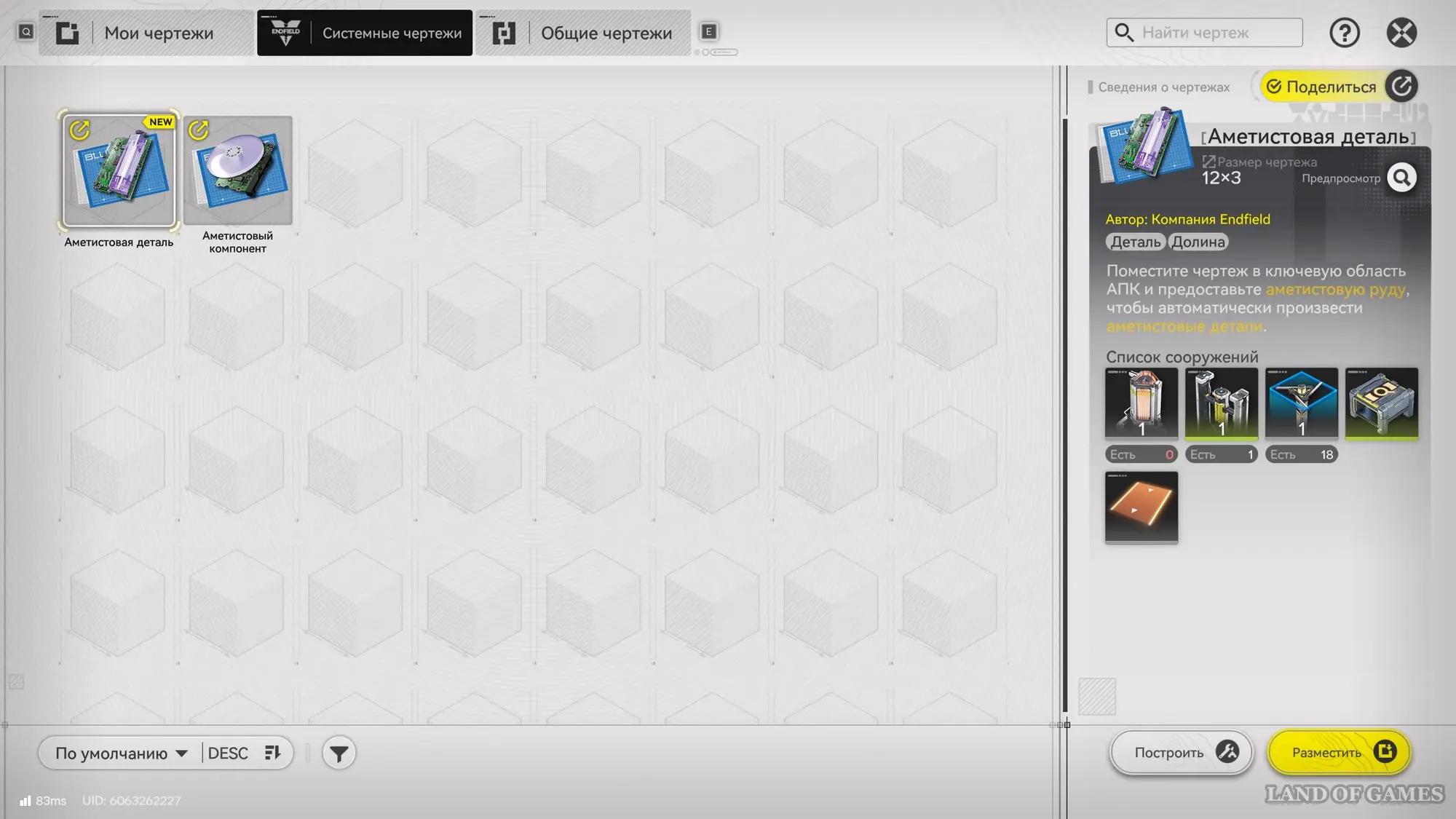 Далее откройте меню чертежей, выберите выделенную схему и разместите ее в указанной области, чтобы дублировать производство аметистовых компонентов. Потом взаимодействуйте с портами ПБА, дабы загрузить в них нужную руду. В результате с другой стороны тоже стартует производство аметистовых компонентов.