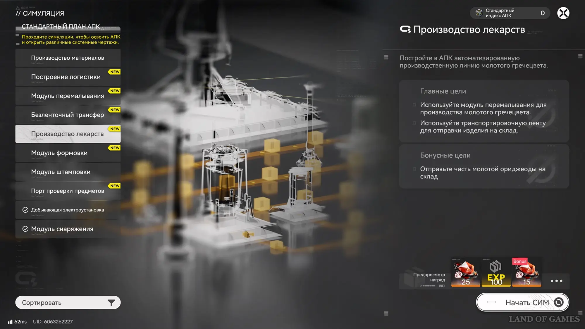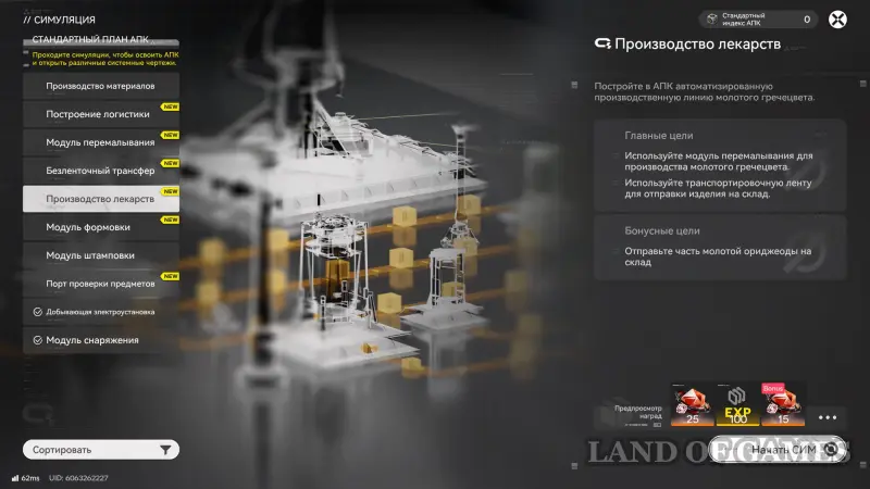 Вновь откройте производственный план и перейдите в раздел «Симуляции», а затем выберите «Модуль штамповки», однако, скорее всего, игра предупредит вас о том, что не завершена предыдущая симуляция – «Производство лекарств», поэтому мы рекомендуем первым делом начать с нее, чтобы лучше вникнуть в процесс.