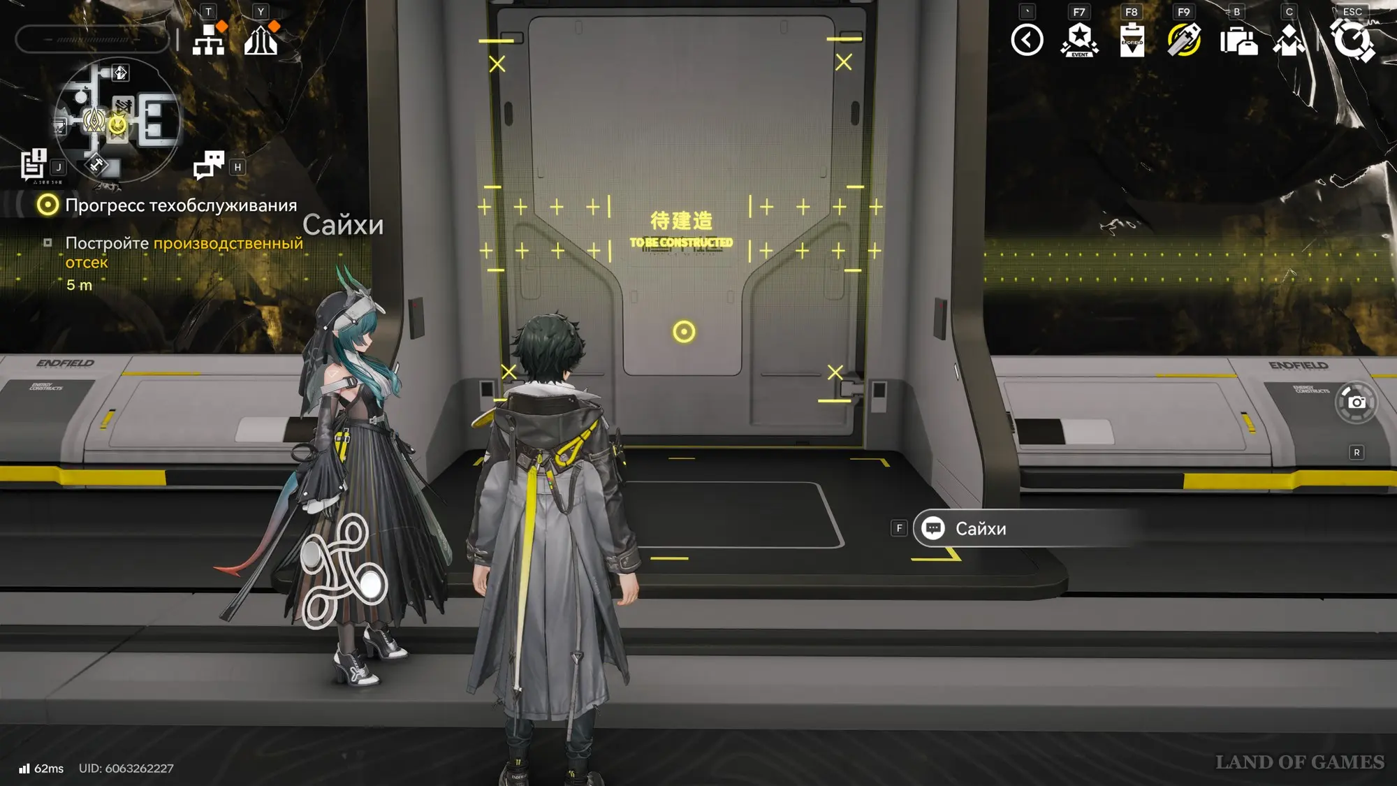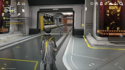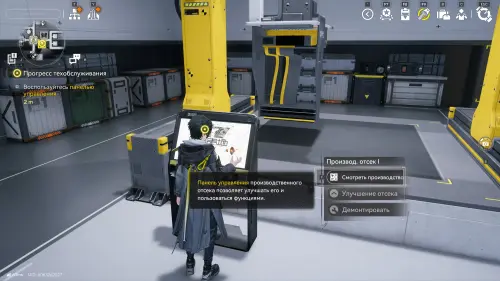 Поболтайте с Сайхи, а потом начните следовать за ней к производственному отсеку и постройте его, потратив имеющиеся аэрокосмические материалы. Затем взаимодействуйте с панелью управления и изучите систему изготовления материалов. Закройте меню и снова следуйте за Сайхи, чтобы попасть в приемную.