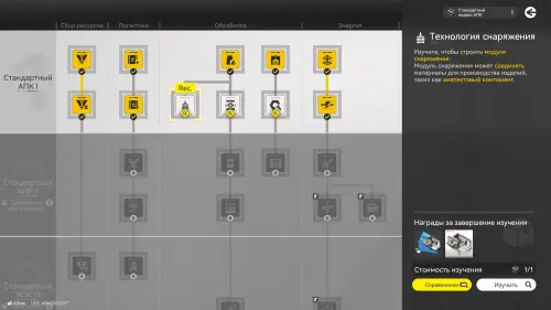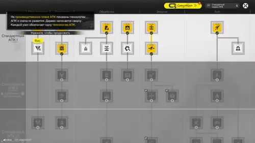 Потом пообщайтесь с Ванниковым, стоящим рядом с Покус. Советуем вам заранее добыть очки индекса АПК, взаимодействовав с другим протокольным регистратором, расположенным неподалеку. Вновь откройте производственный план и изучите «Технология снаряжения». Затем запустите ее симуляцию.