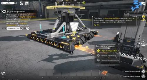 Далее вам необходимо будет проделать те же действия, что и в симуляции, то есть подойти к двум портам и выбрать необходимые руды, а затем наблюдать за тем, как они перемещаются по конвейерной ленте к нужным модулям и превращаются в аметистовые компоненты.