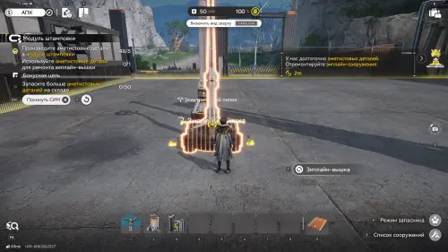 Снова перейдите в режим АПК, а потом перейдите в состояние запасника (клавиша «Х») и удалите портативную установку, поставив вместо нее полноценный добывающий механизм. Второй поставьте слева. Затем разместите между ними электрический пилон и запитайте его от вышки.