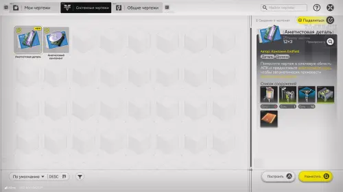 Возвратитесь в зону АПК и переключитесь на вид сверху, и откройте чертежи. Выберите аметистовый компонент, а потом разместите схему рядом с ПБА – можете в том же место, что и мы.