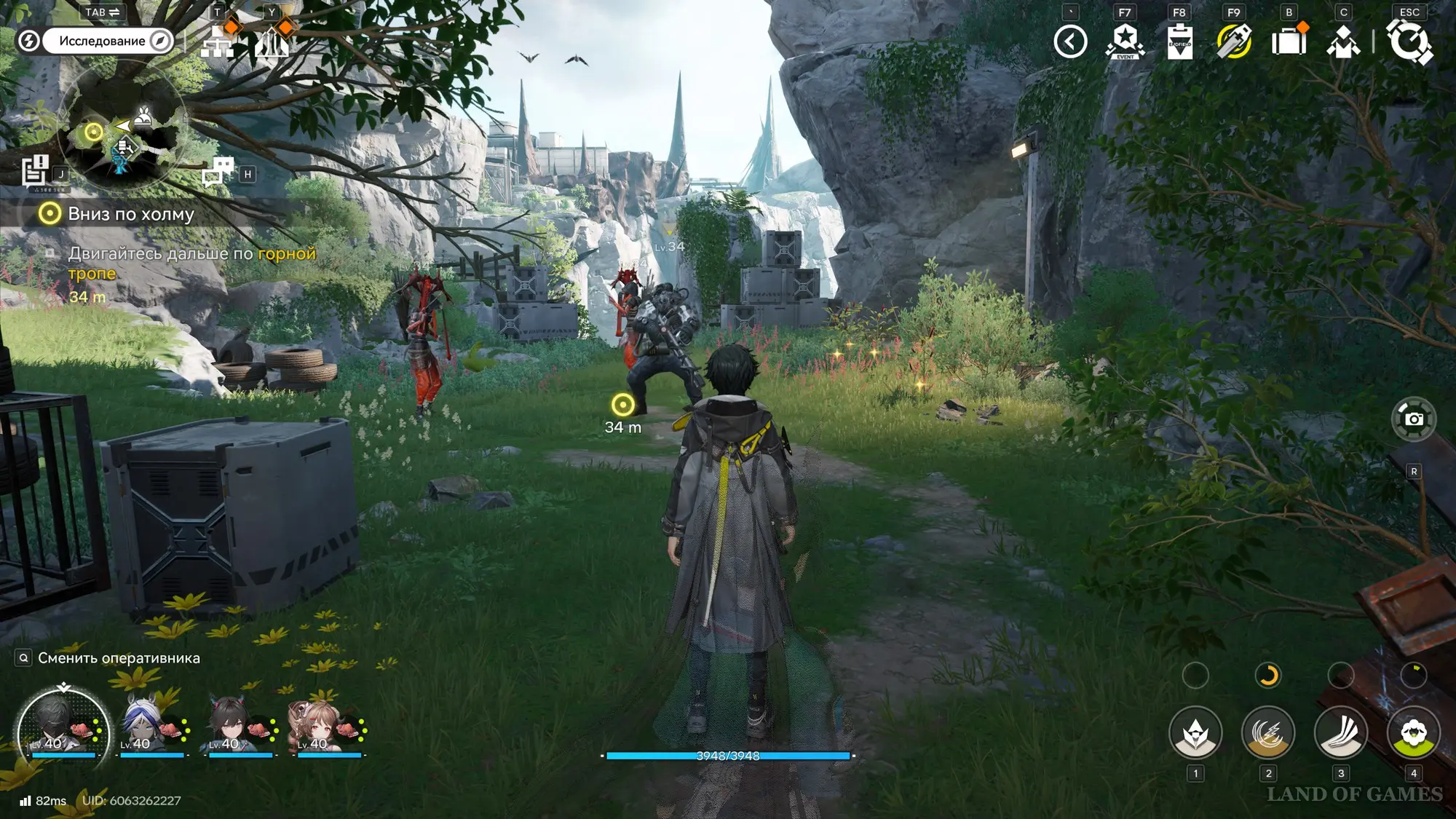 Пройдите чуть вперед и вновь пообщайтесь с Ивонной. Двигайтесь дальше, следуя за маркером, и рядом с ТП поболтайте с Тэта. Поднимитесь повыше и расправьтесь с группой землекрушителей 34-го уровня. Поверните налево и проберитесь через каньон, выйдя на площадку. Посмотрите новый ролик.