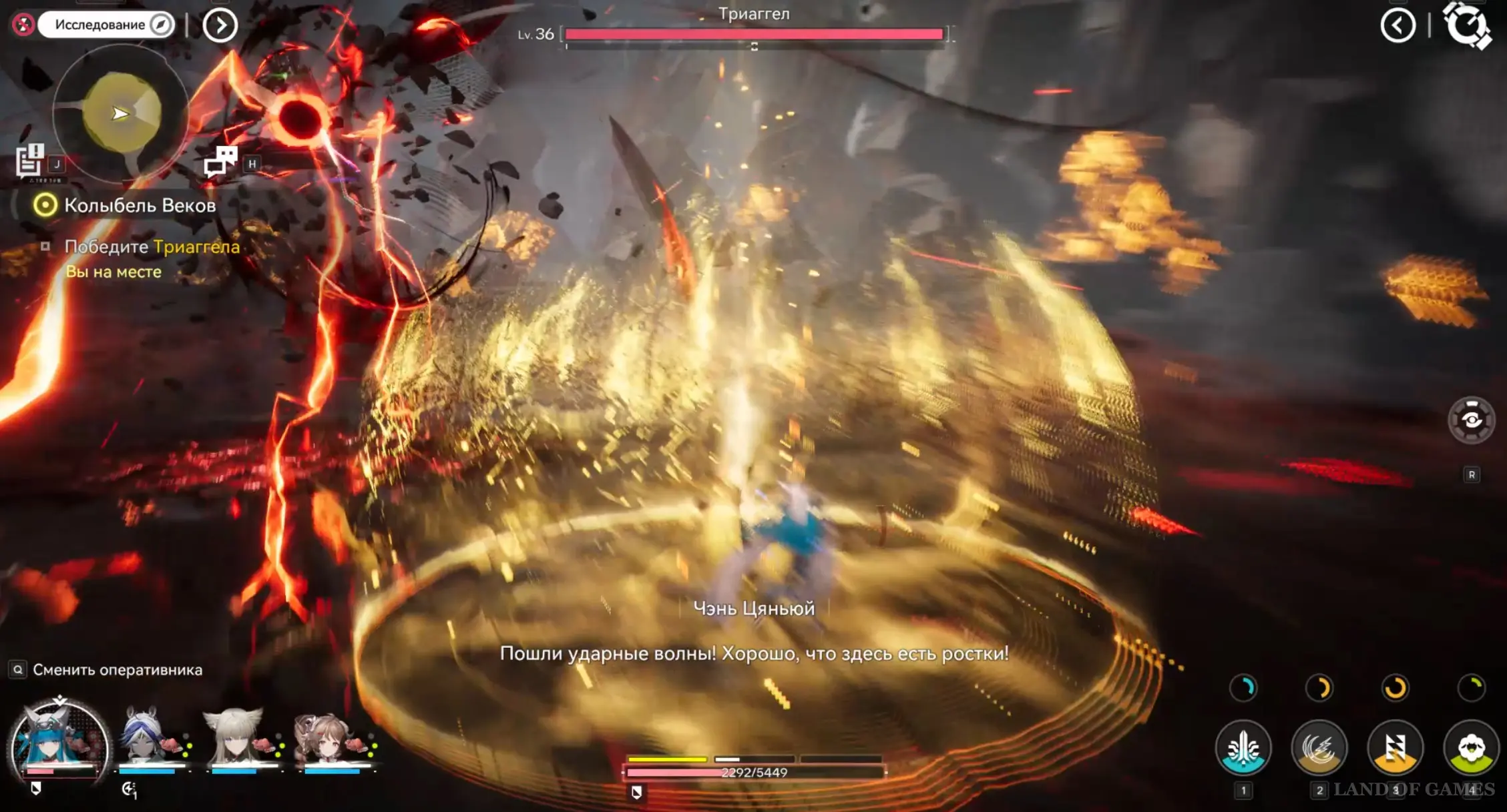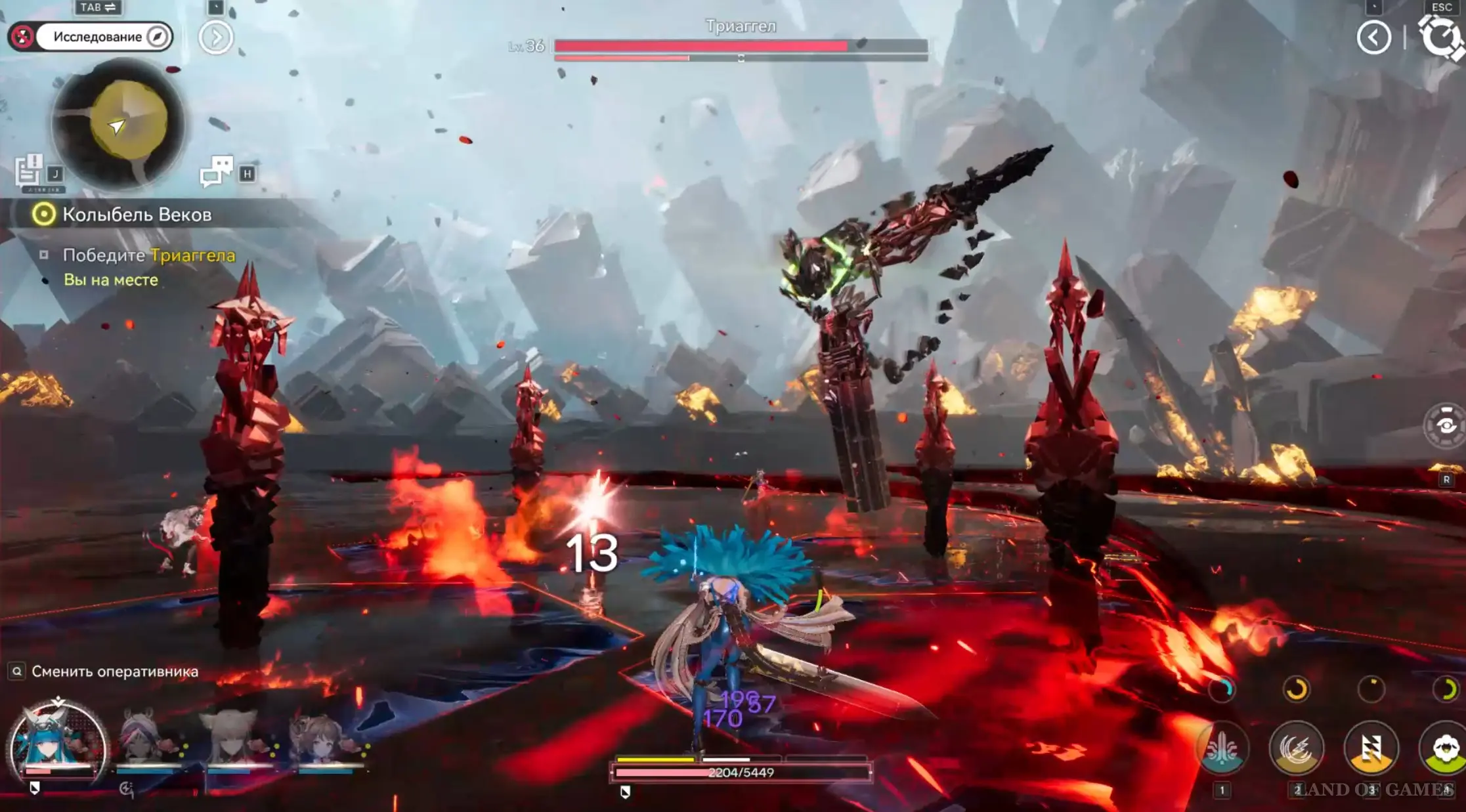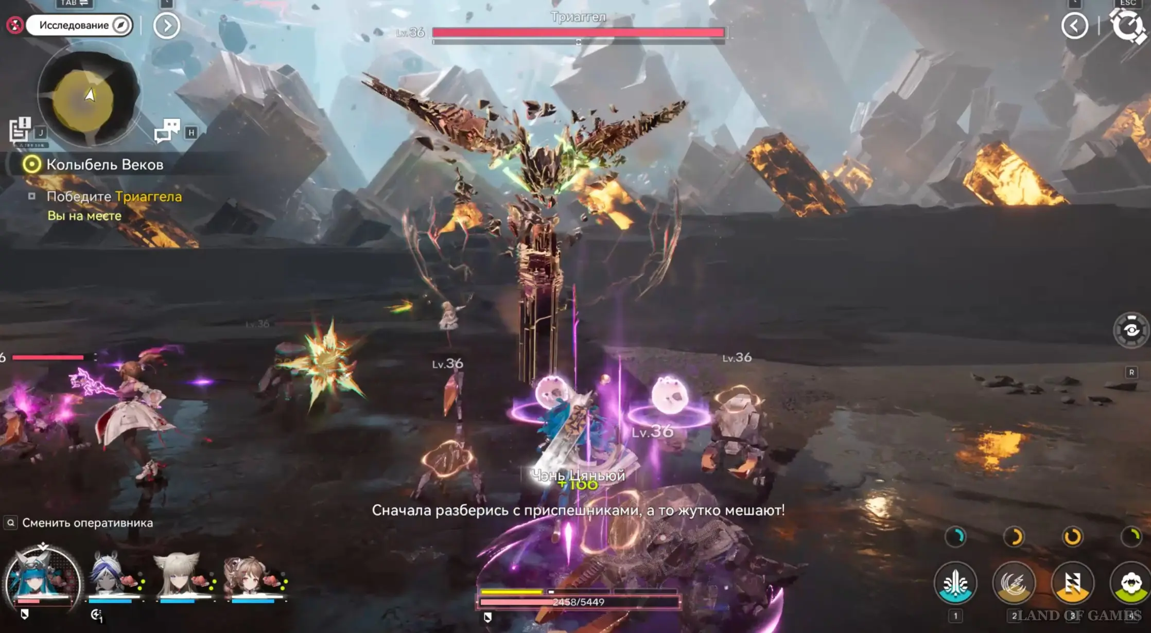 В оглушенном состоянии Триаггел будет просто стоять на земле, и вы сможете нанести ему огромный урон. Именно в этот момент примените супернавыки своих персонажей. Рано или поздно, вы сможете победить босса. На видео ниже мы показали всю битву с ним.