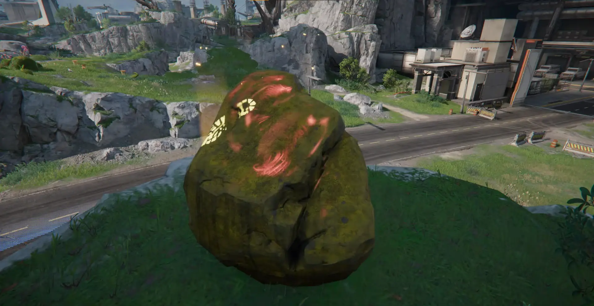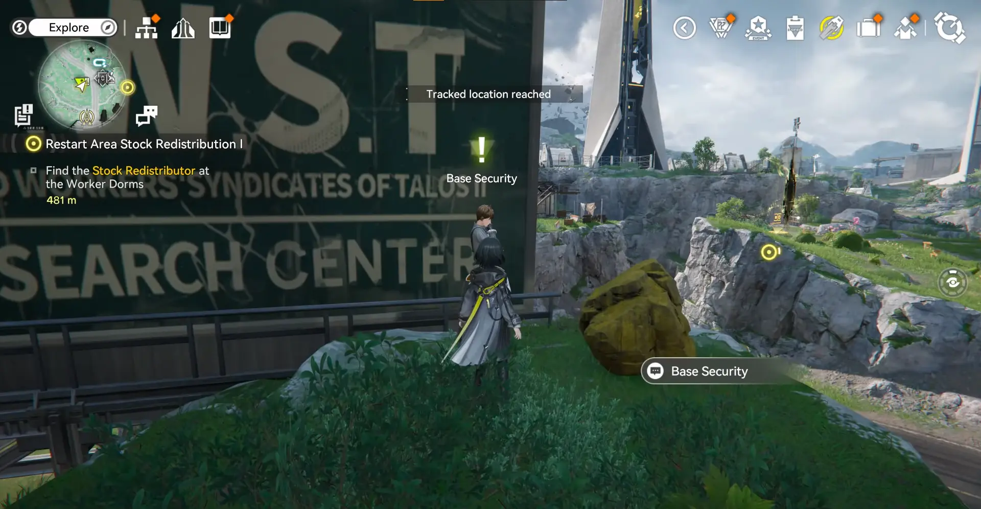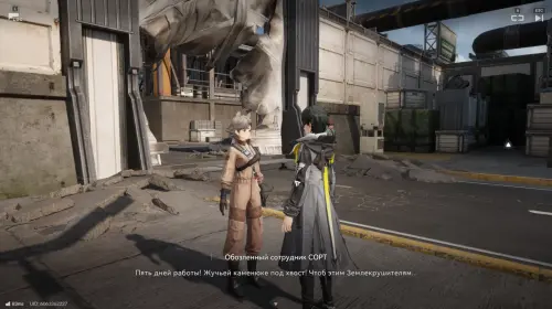 После начала квеста первым делом нужно пообщаться с сотрудником службы безопасности базы, который стоит рядом с билбордом UWST. Он расскажет о странных рисунках, оставленных Землекрушителями на камне. По его словам, эти изображения выглядят необычно и вызывают подозрения.