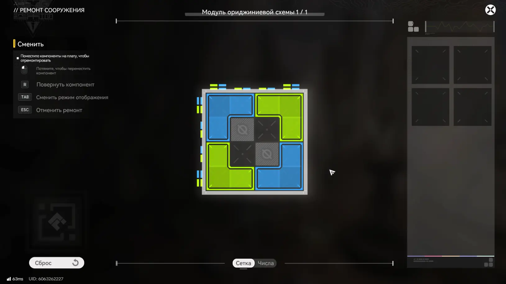 В модуле необходимо правильно восстановить цепь, разместив элементы схемы в нужном положении.