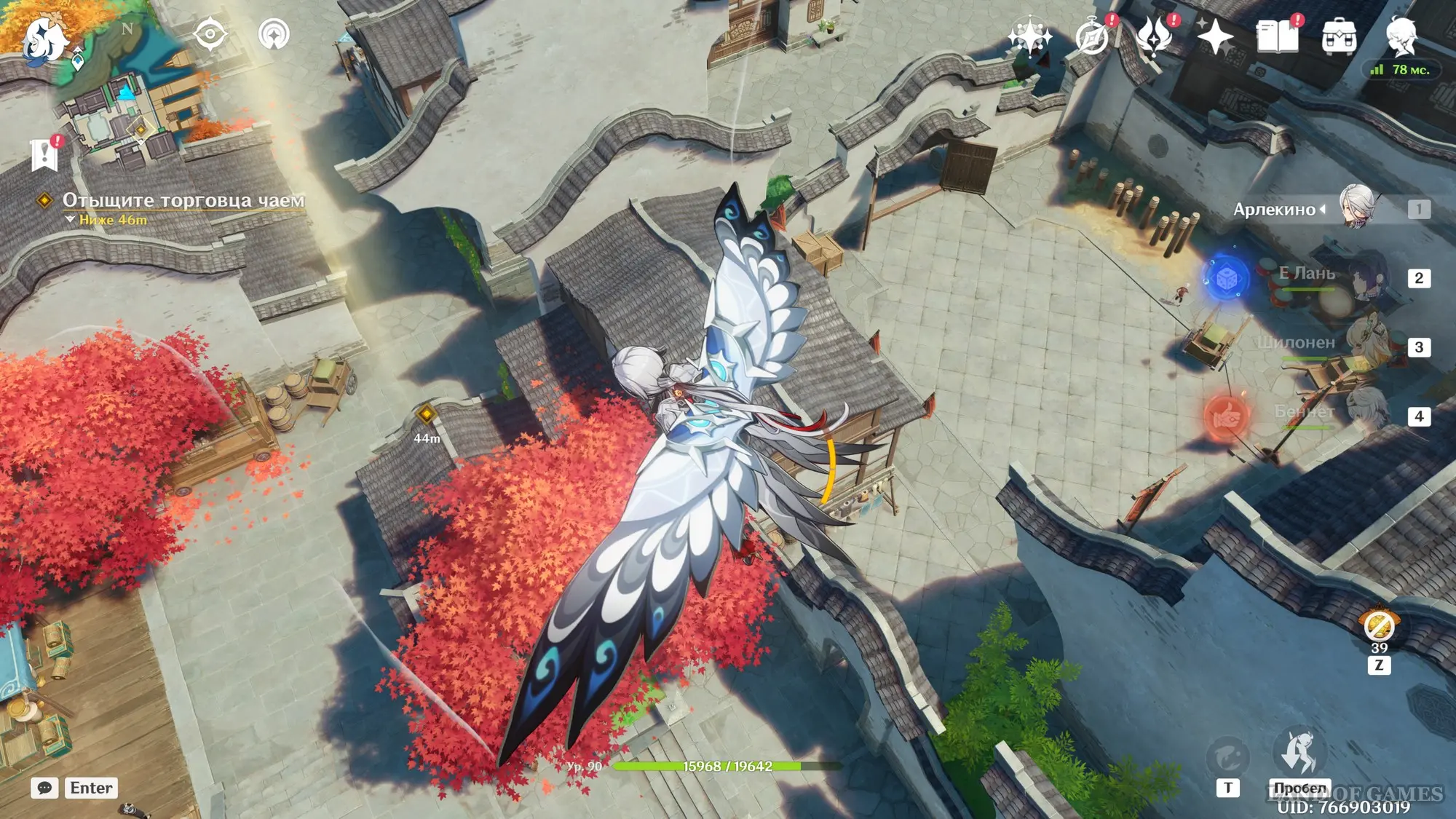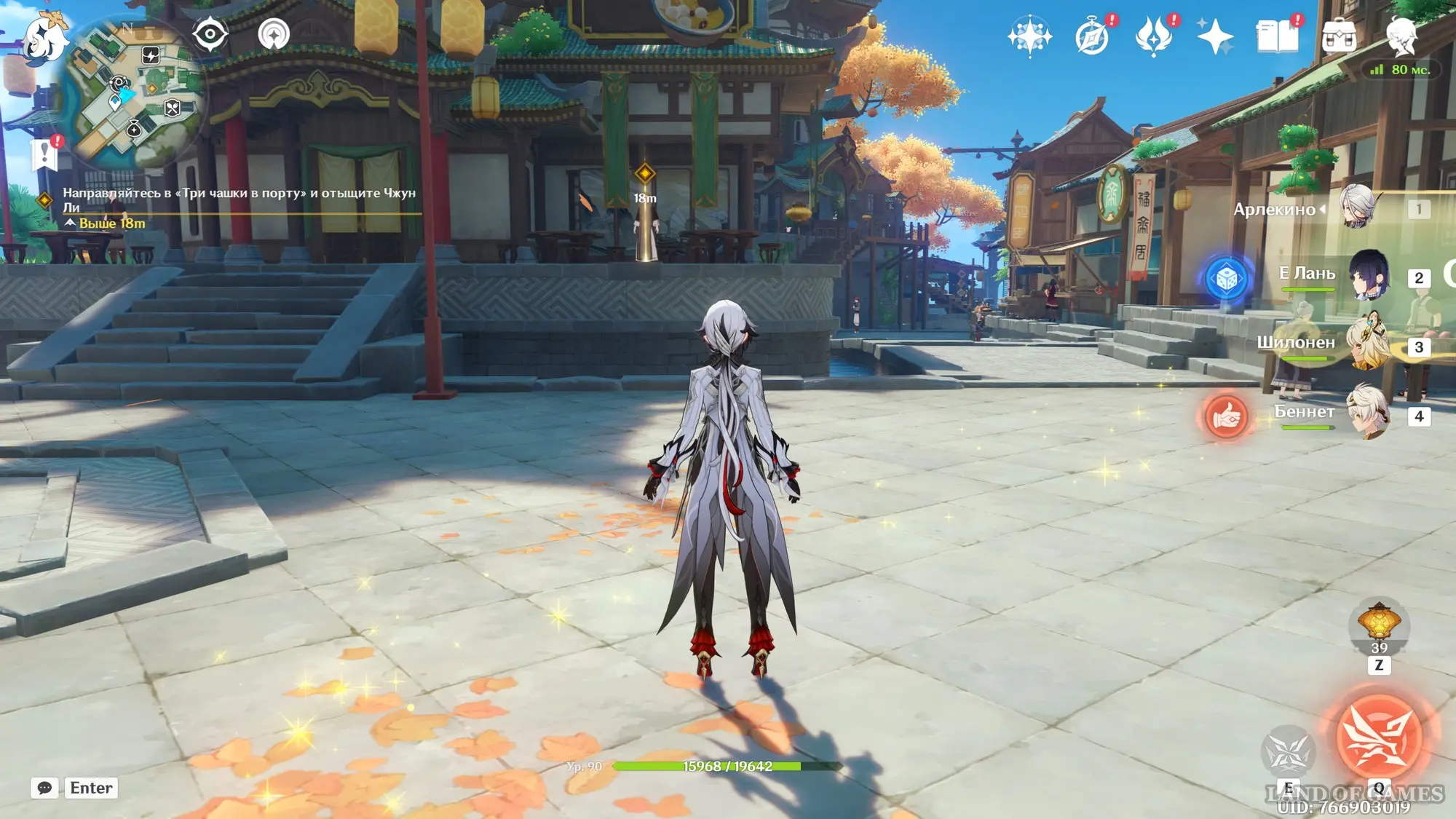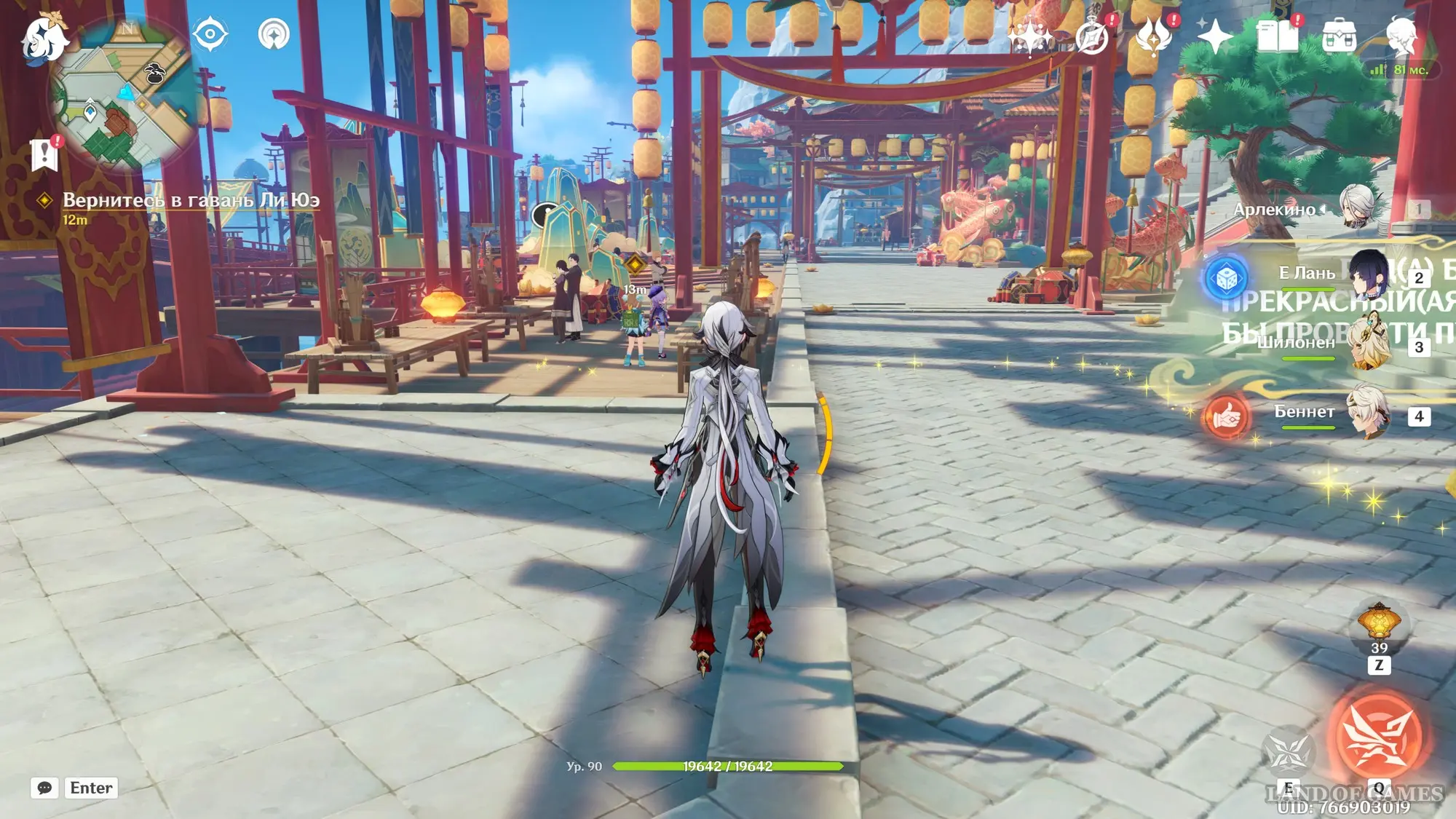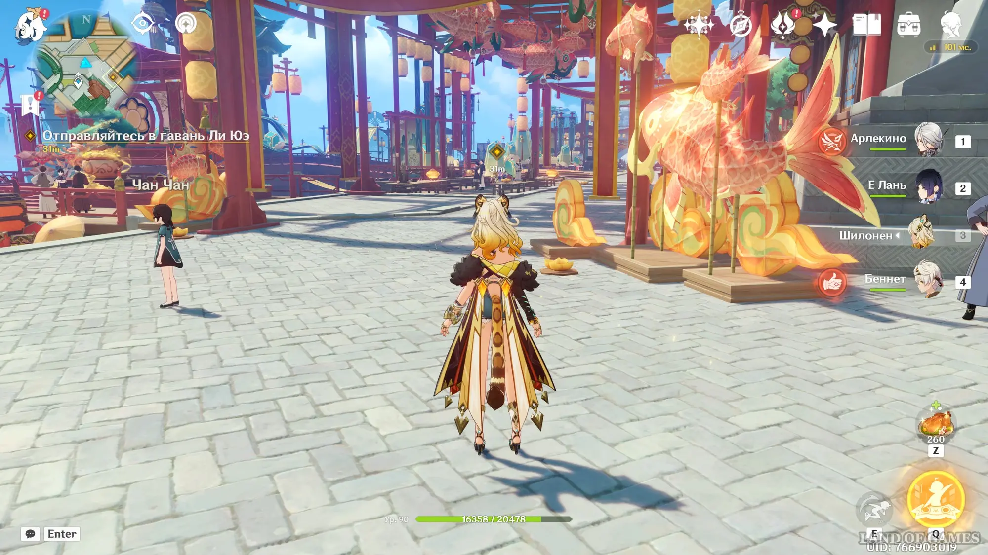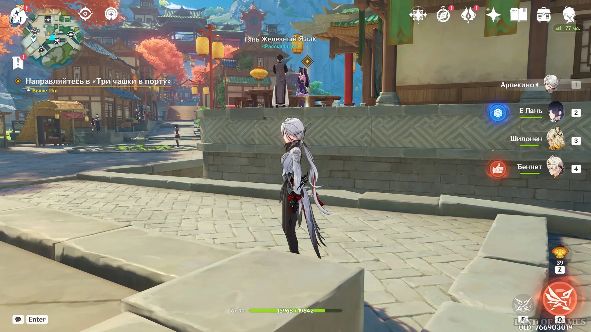 Подождите два игровых дня, прокрутив время на 08:00 с помощью меню Паймон, а затем возвратитесь в хижину «Бубу» в гавани Ли Юэ и поболтайте здесь с Е Лань и Бай Чжу. Затем переместитесь на пристань и осмотрите область рядом с местом изготовления небесных фонарей. Вы встретите Ка Мина, в которого вселится вторая смертная сущность Цзы Бай. Отправляйтесь за ним в погоню.