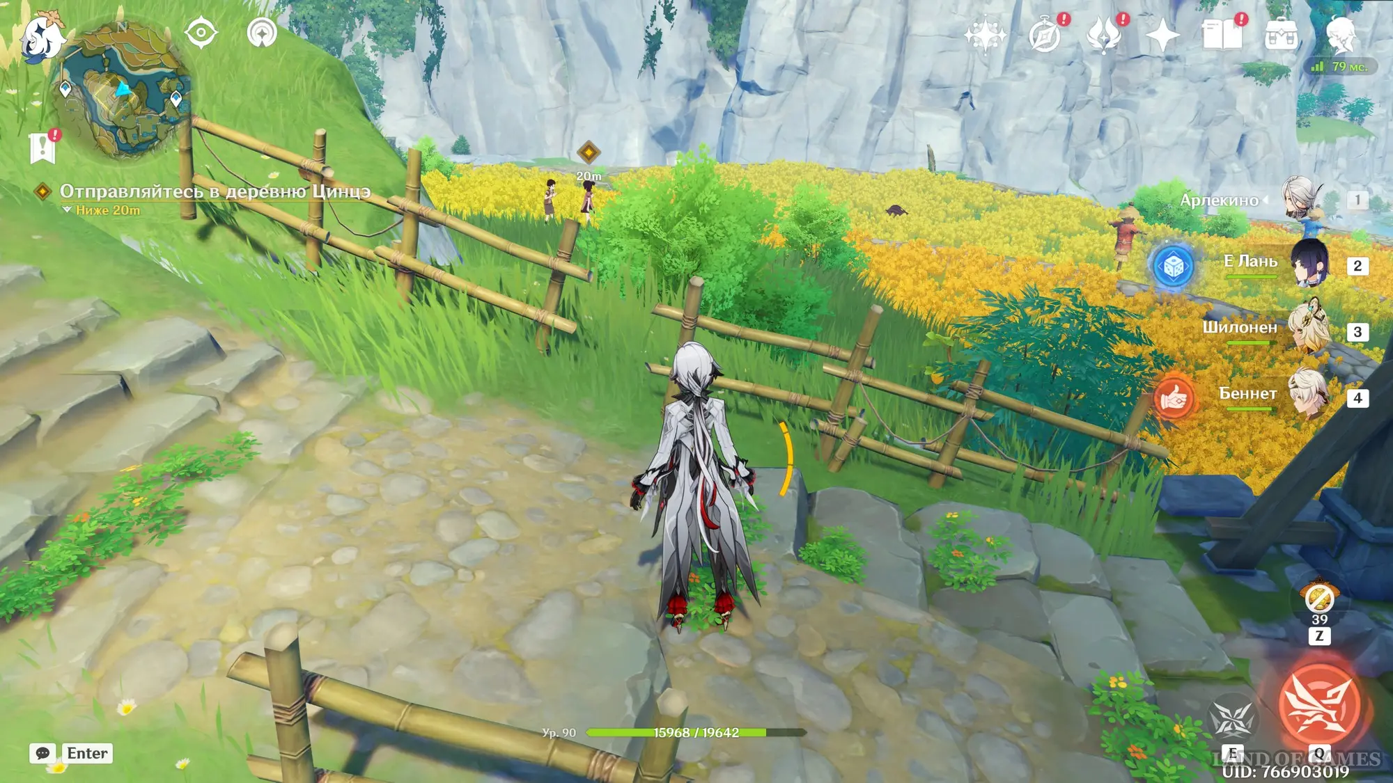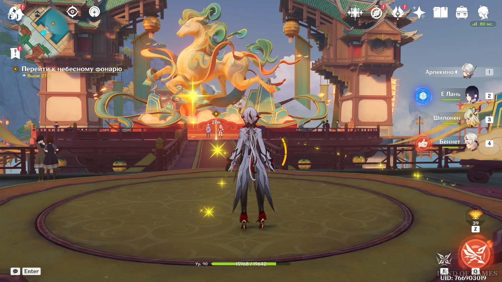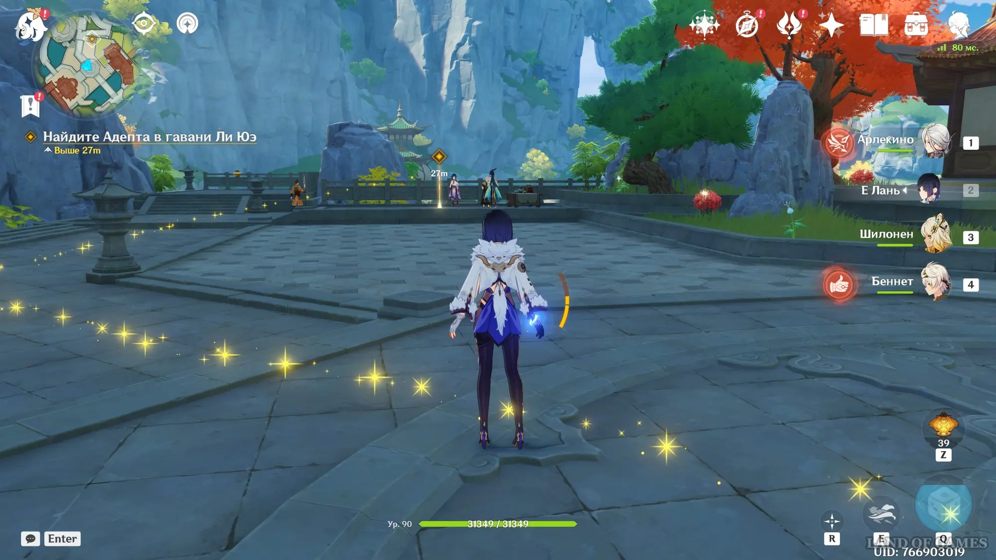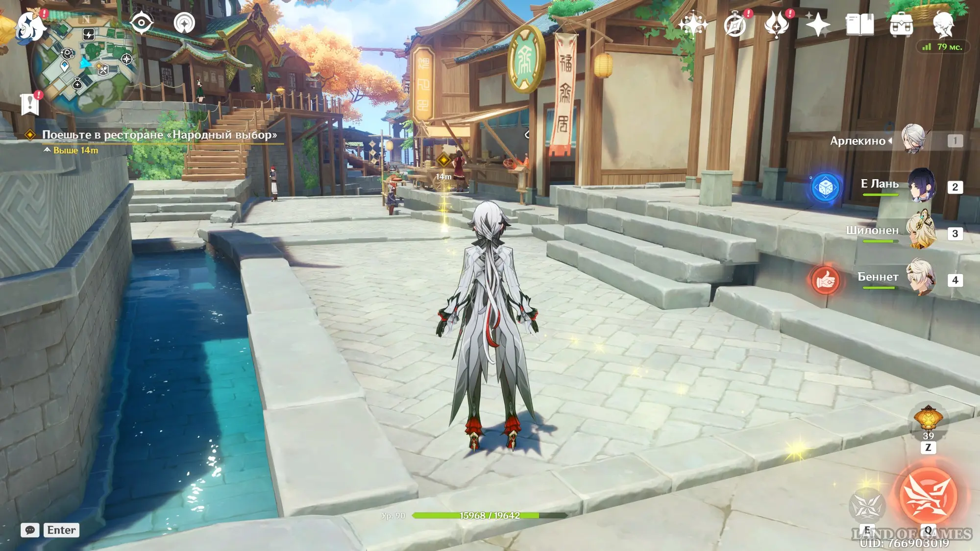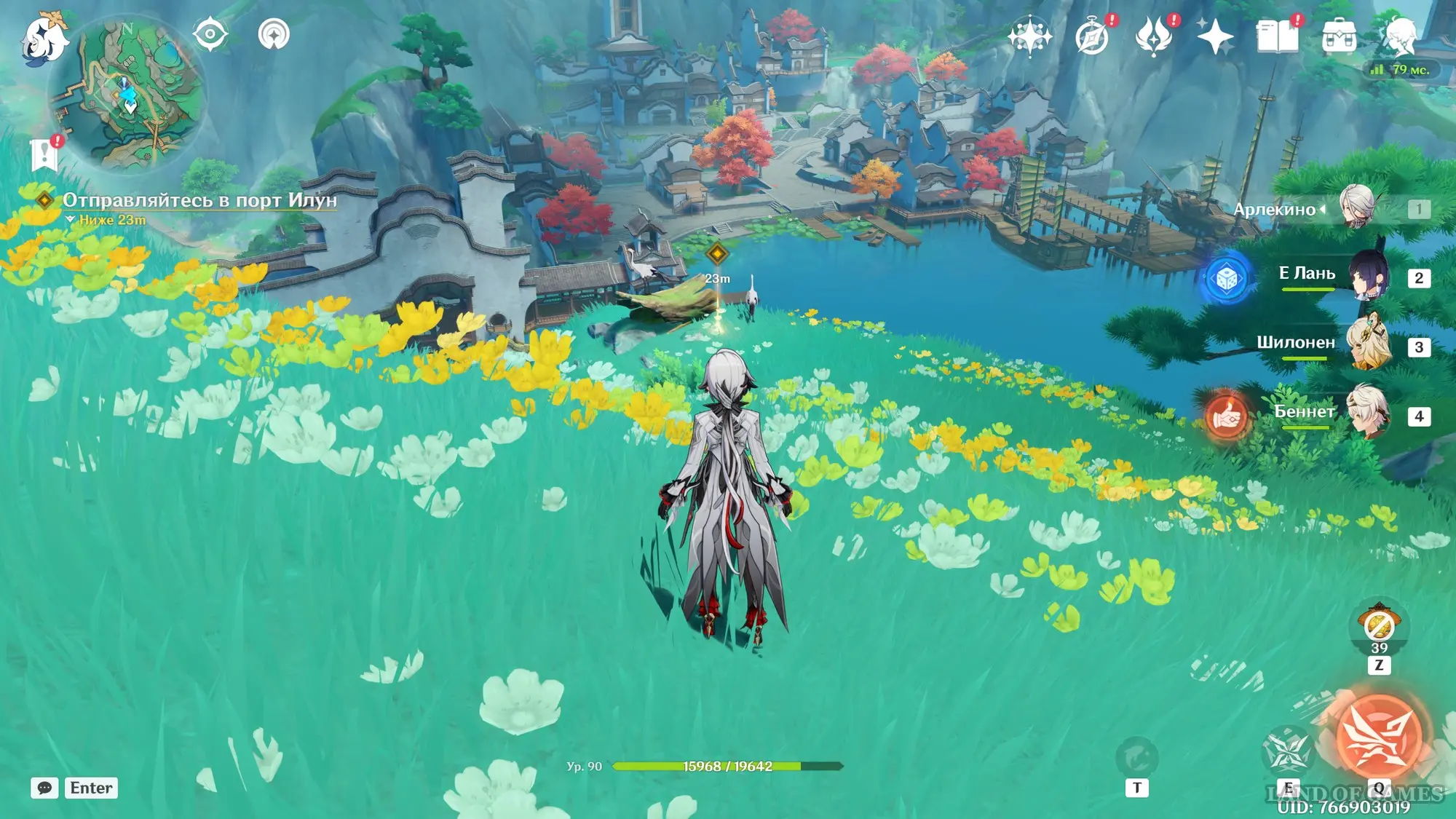 Подождите два игровых дня, прокрутив время на 08:00 с помощью меню Паймон, а затем возвратитесь в хижину «Бубу» в гавани Ли Юэ и поболтайте здесь с Е Лань и Бай Чжу. Затем переместитесь на пристань и осмотрите область рядом с местом изготовления небесных фонарей. Вы встретите Ка Мина, в которого вселится вторая смертная сущность Цзы Бай. Отправляйтесь за ним в погоню.