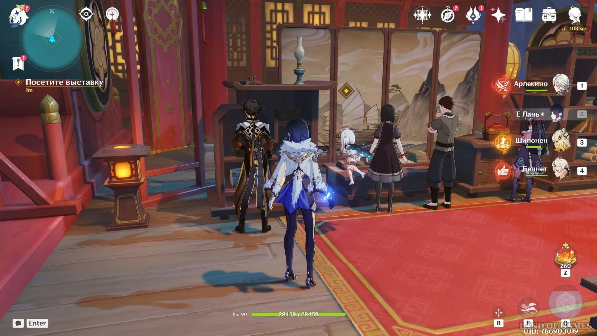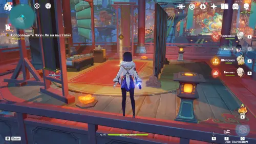 Просмотрев кат-сцену, начните просто следовать за Паймон, которая будет летать от одной полки к другой. Затем гляньте ролик с осмотром свитка и колесницы. Чжун Ли пригласит вас в закрытую выставочную зону. Поднимитесь чуть выше и снова поболтайте с Гео Архонтом. Из-за артефакта вы окажетесь в другом пространстве – бегите на свет и поболтайте с Цзы Бай.